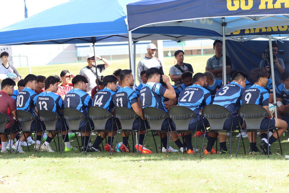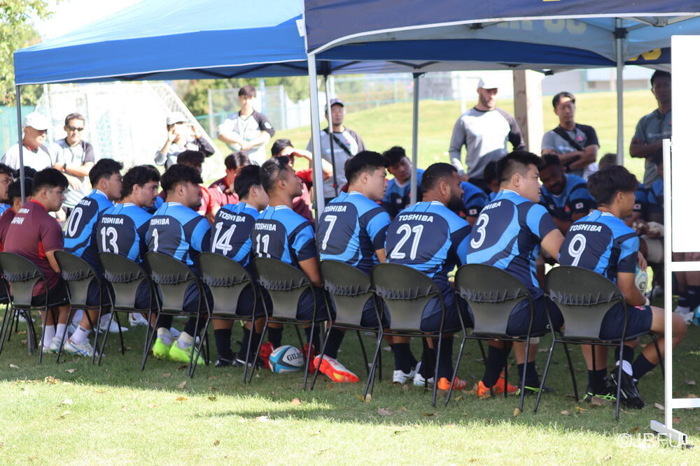 まずは、バックスとフォワードに別れてミーティング。やるべきことを確認します。