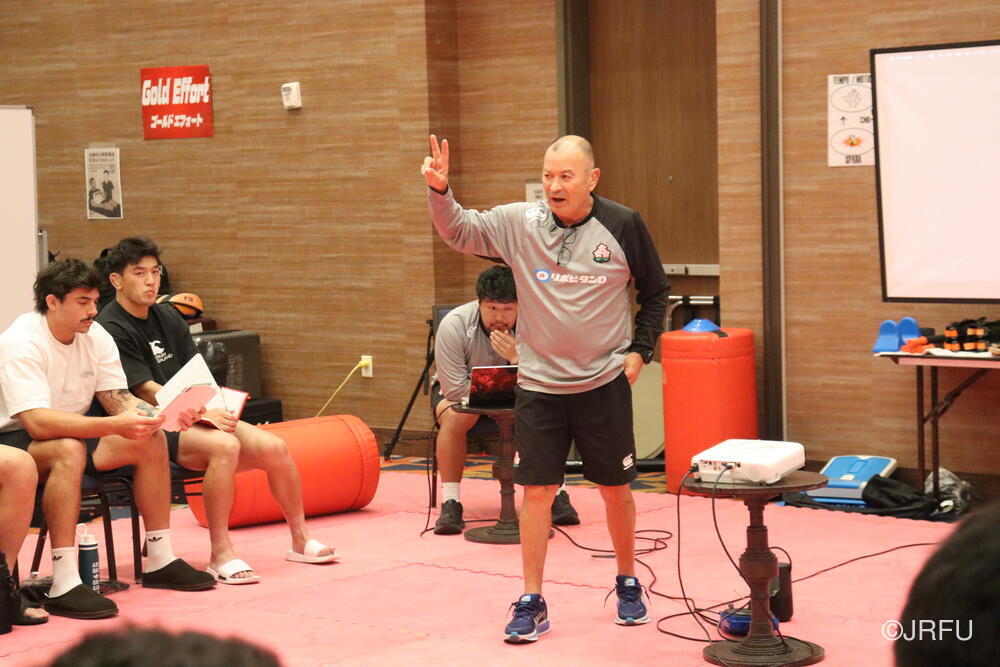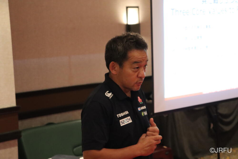 「昨シーズンは日本代表のヘッドコーチとしても初年度だったのですが、誰が日本代表としてプレーしたいか、意欲を持っているか、熱意を持っているかということを探る期間でした。ジャパンラグビーが成功する時代をまた作る作業に、参加したいと思う人材はどこにいるのか、それを探っていました。なぜなら、日本のラグビーが成功するためには、通常通りの事をやっていてはダメで、ずば抜けた何かをしなければいけないというふうに思っていたからです。そして今年に関してはそれが誰なのかっていうところがはっきりしてきました。今回のパシフィックネーションズカップ大会は、昨年よりもかなりチャレンジングなトーナメントとなってると思います。なぜなら、今年はW杯の出場権を賭けて対戦国が通常よりも長い時間を費やして準備していで、ジャパンはそれに比べると、短かい準備期間で望まなければなりませんでした。