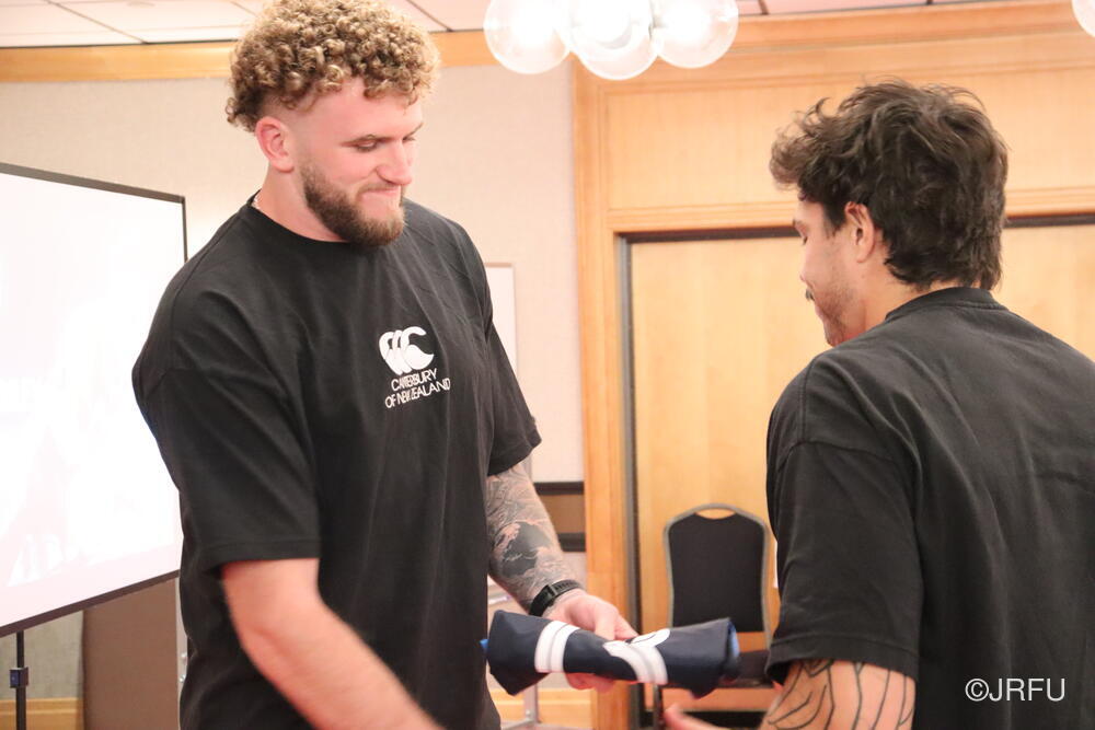 この日のジャージを手渡すプレゼンターは、ワーナー・ディアンズゲームキャプテン。選手一人一人にジャージを手渡していきます。