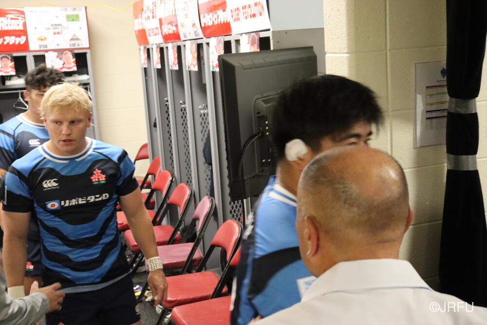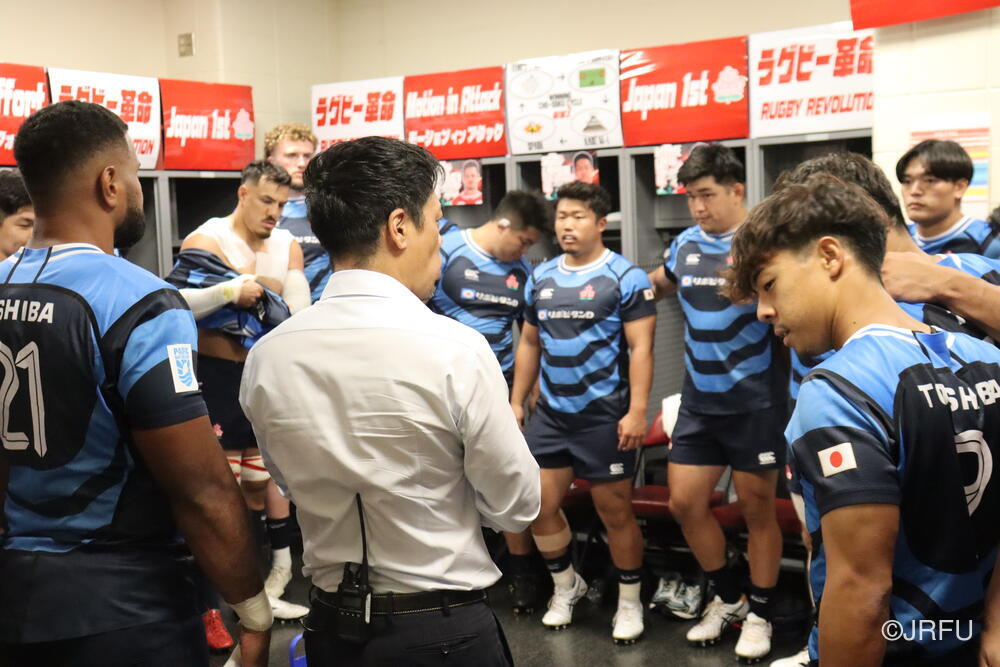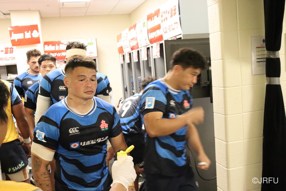 「応援ありがとうございました。試合に関しては勝利が目の前に迫っていただけに残念です。与えたトライが自分たちのミスからのものが多かったので、またここから秋に向けて成長できるよう修正して頑張ります。」