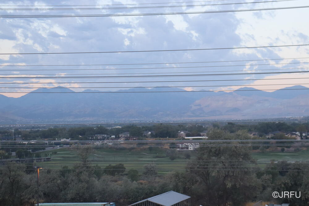 ホテルから見えるソルトレイクシティの景色。遠くに見えるのがロッキー山脈です。米国の中でもスケールの大きさを