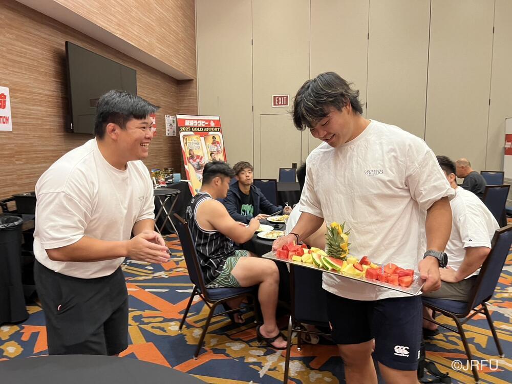 「ちょっと落ち着いてきたというか、みんな若いので。試合を通して何回かタフな時間帯がありましたが、それを乗り越えて3勝しました。フィジー戦でも、辛い時間帯が来ると思うので、それに対してどれだけ自分たちのラグビーをできるのか、すごく楽しみにしてます。」