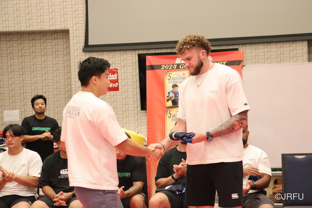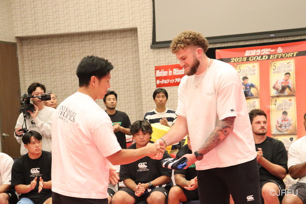 そして、先週に続いてジャージを手渡すのはワーナー・ディアンズゲームキャプテン。