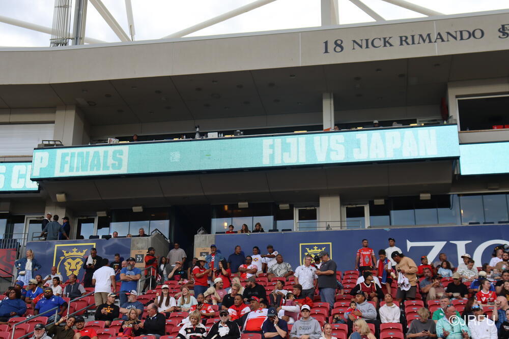 - エディーHC「ファイナルに向けての準備ができています。今回、非常に強いチームを力強く、層の厚いスコッドから選べたことが非常に嬉しく思います。日々の練習を通して、ジャパンの層の厚さを非常に感じていて、ポジション争いもありました。怪我人が試合やトレーニングから出ていますけれども、非常に自信に満ち溢れたチーム作りができていますし、みんなが連携してコネクトして戦術的にもしっかりと戦えるチームが形成できてるというふうに思います。目的は優勝することなので、しっかりと勝ちに行きたいです。(対戦相手の)フィジーに対してしっかりとプレッシャーをかけたいと思います。土曜日(現地時間)はソルトレイクシティでの試合で、非常に良い経験ができております。20年前を考えると米国のソルトレイクシティでフィジー対日本が決勝で対戦するなんて、誰も信じることができなかったと思います。それが実現できているということで、ラグビー界の発展を感じます。若手主体のチームでこの大きなステージで戦えるということは非常に素晴らしい事でありますし、何人かの選手はアメフトの契約をもらえるかもしれませんね(笑)。」