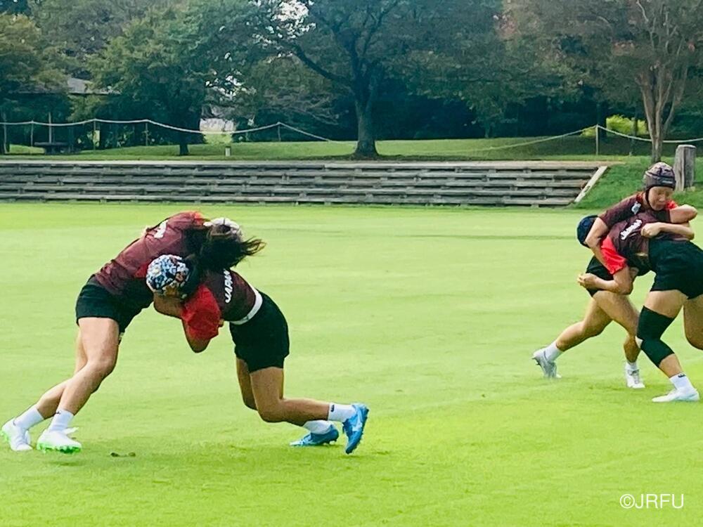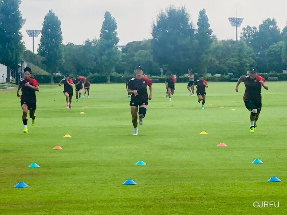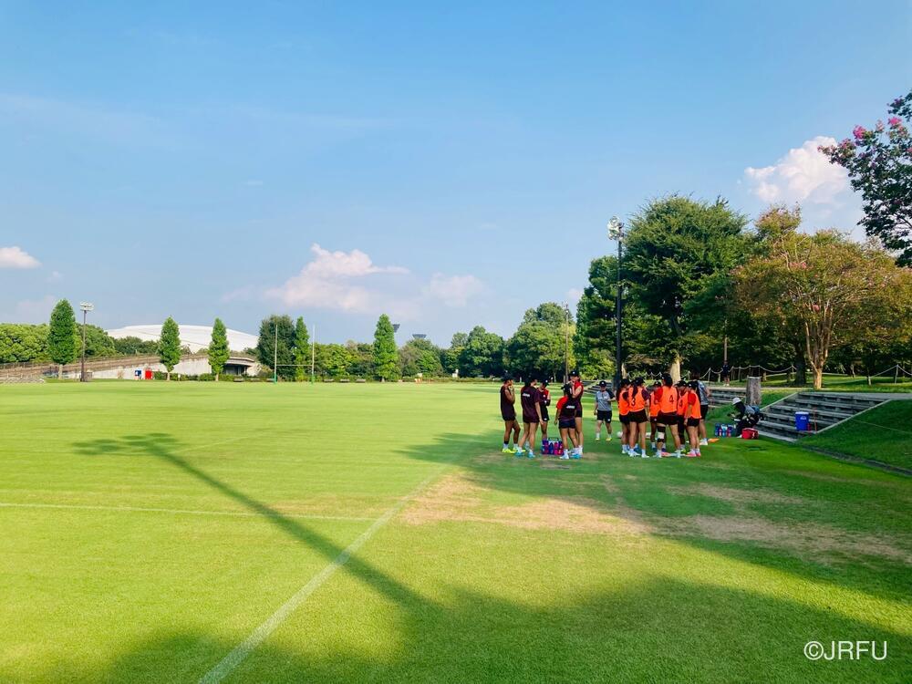午後はチームミーティングで練習の目的を全員で確認した後、練習グラウンドへ向かいました。キックやハンドリングでは得点に繋げることを意識した練習を重ね、体得した選手は充実した表情がうかがえます。最後はディフェンスとアタックそれぞれの練習で、コミュニケーションの取り方やモメンタムの作り方をチームトークで確認しあい大会に向けたよい準備ができました。