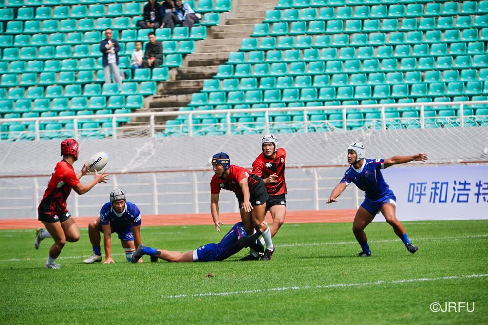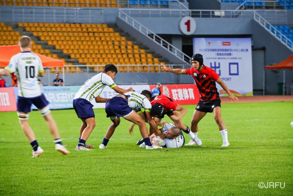 本日より、「アジアラグビーエミレーツU18男子セブンズ2025」が中国・内モンゴル自治区 フフホト市で開幕しました。U18男子セブンズ・デベロップメント・スコッド(SDS)は、プールBに入り、決勝トーナメントをかけてチャイニーズ・タイペイ代表、マレーシア代表、カザフスタン代表と戦いました。