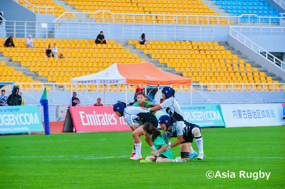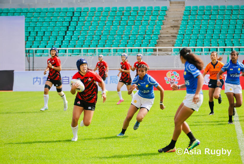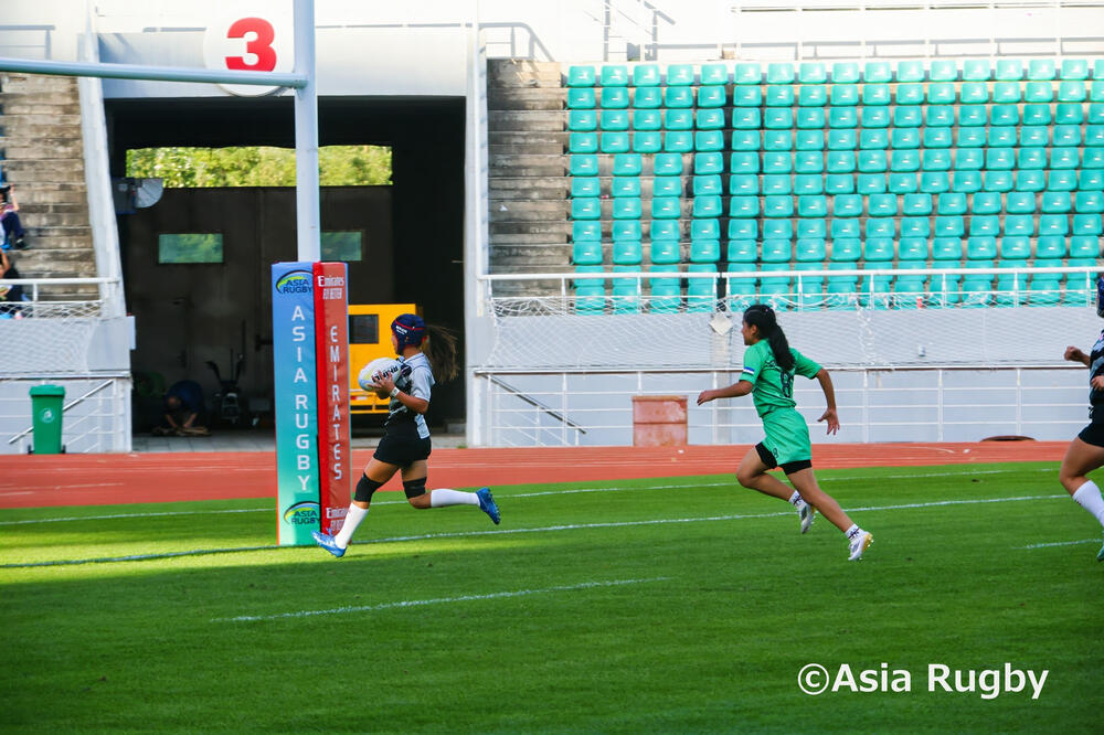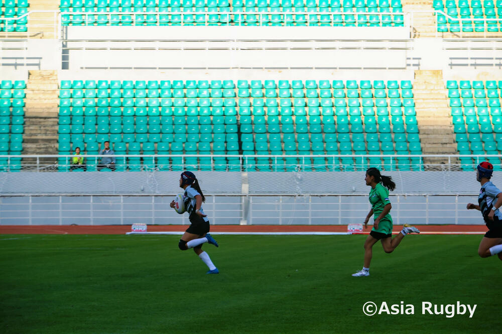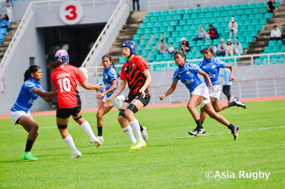 試合開始直後、相手にボールを奪われ先制トライを許してしまいましたが、その後はひとりひとりが強みを活かしたプレーで連続トライを重ね、日本が連続トライを決めて、流れを作り、終始日本リードで試合が展開し、勝利で終えることができました。