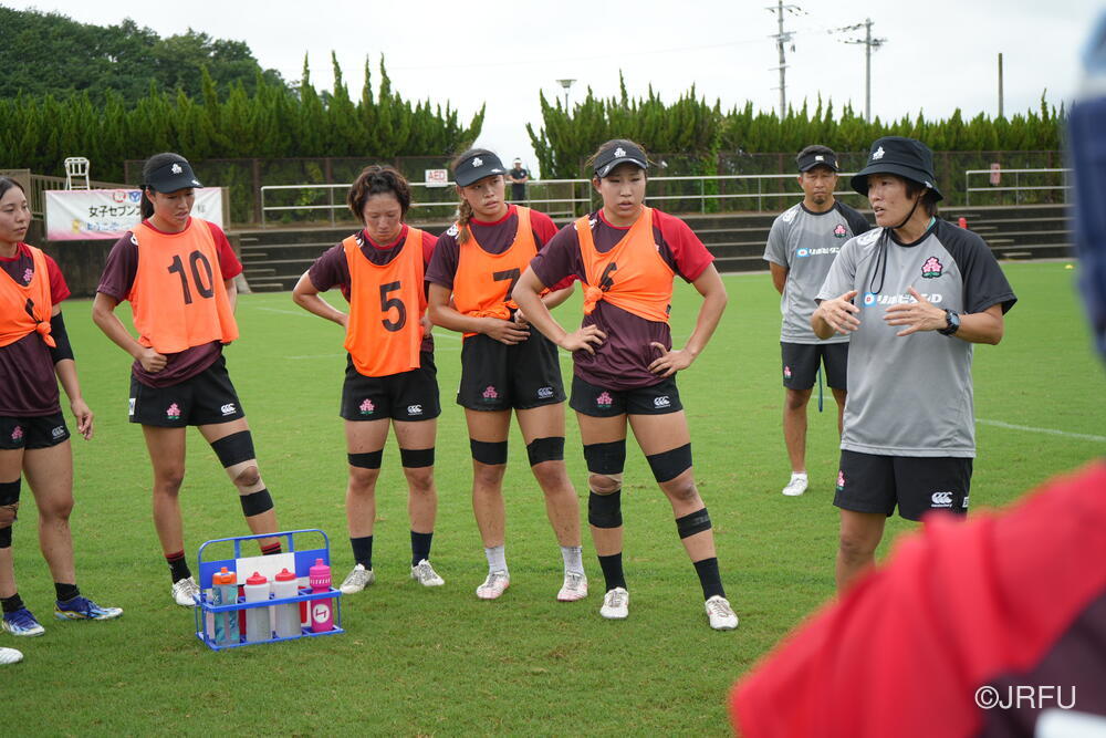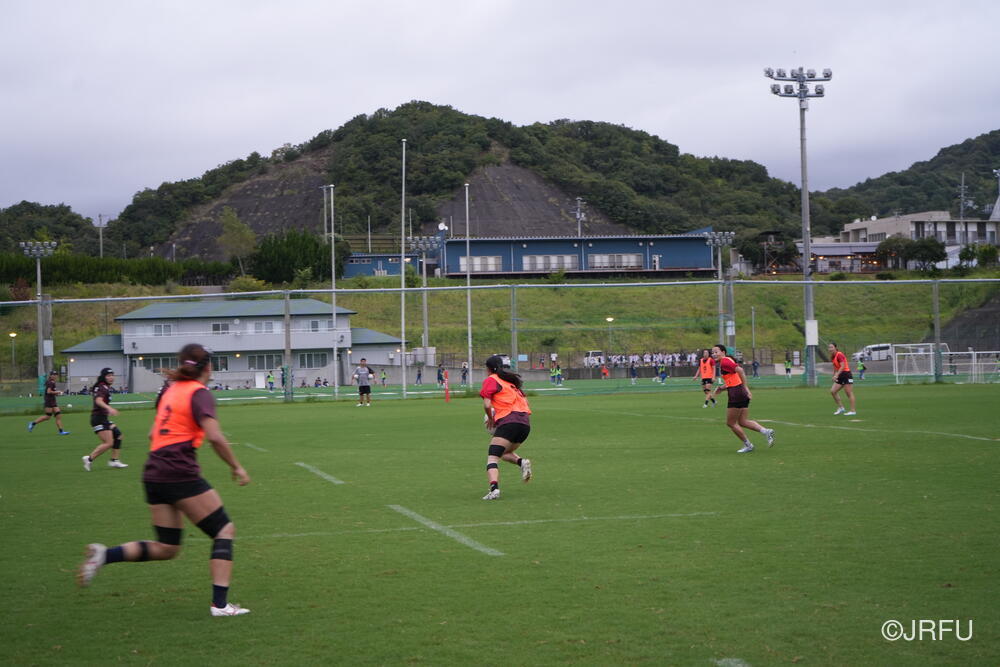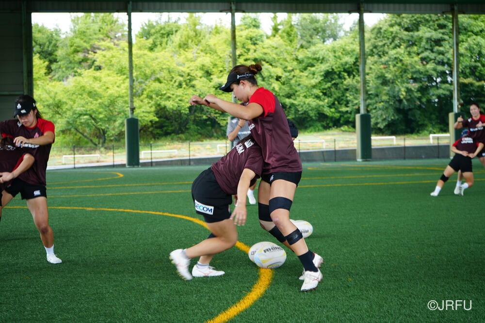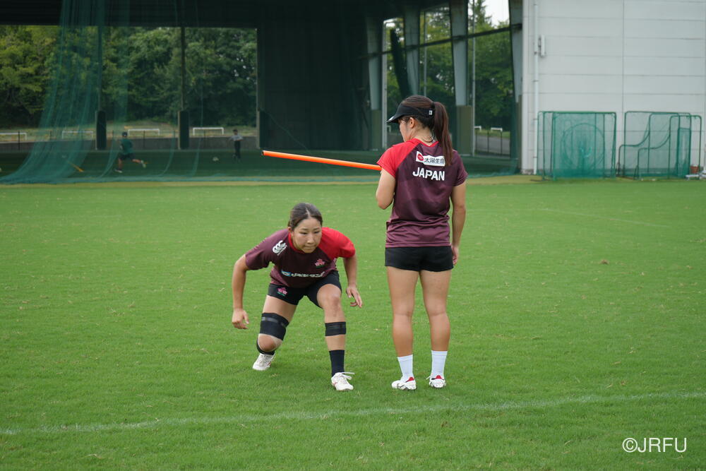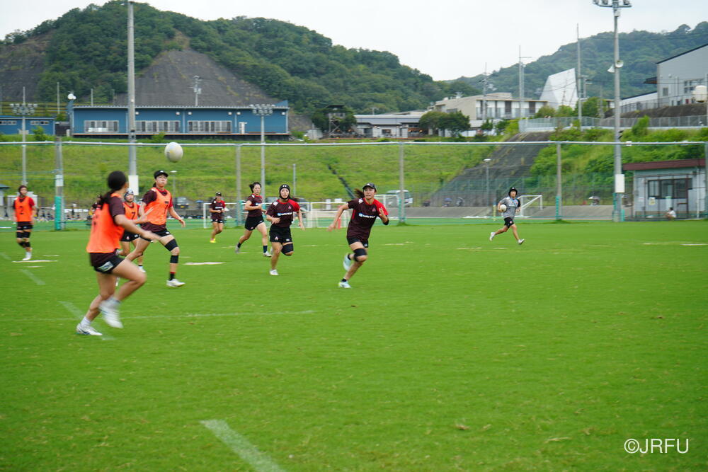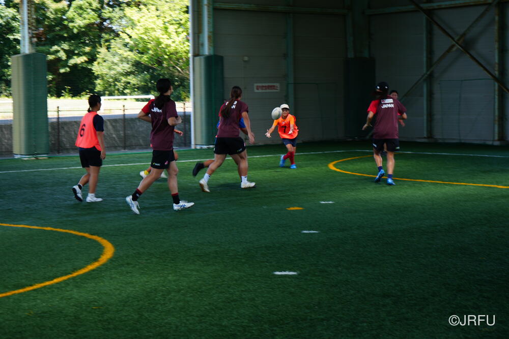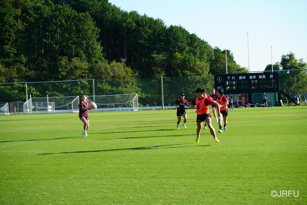 午前は昨夜のミーティングで共有したキックオフレシーブの動きを一つ一つ確認しながら行いました。その後、サクラセブンズのアタックの精度を上げるために、ランコースやタイミングを考えながら取り組み、最後にそれらを7対7の中でチャレンジしました。