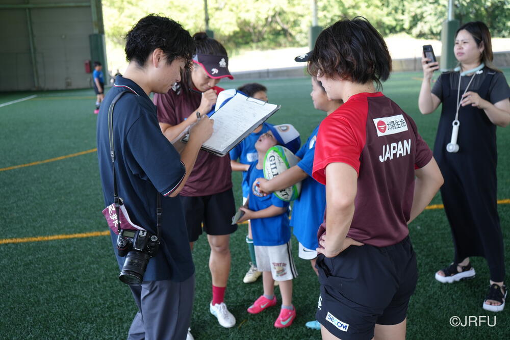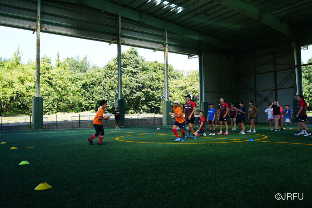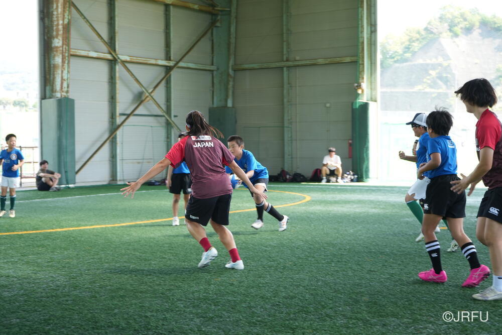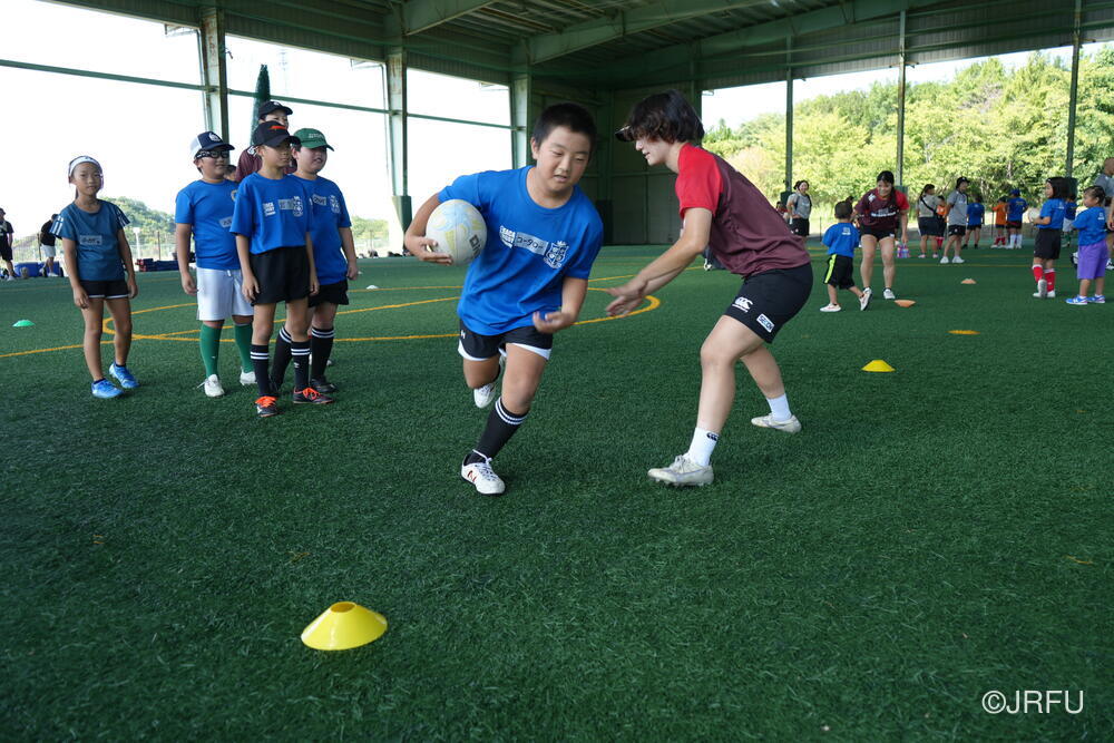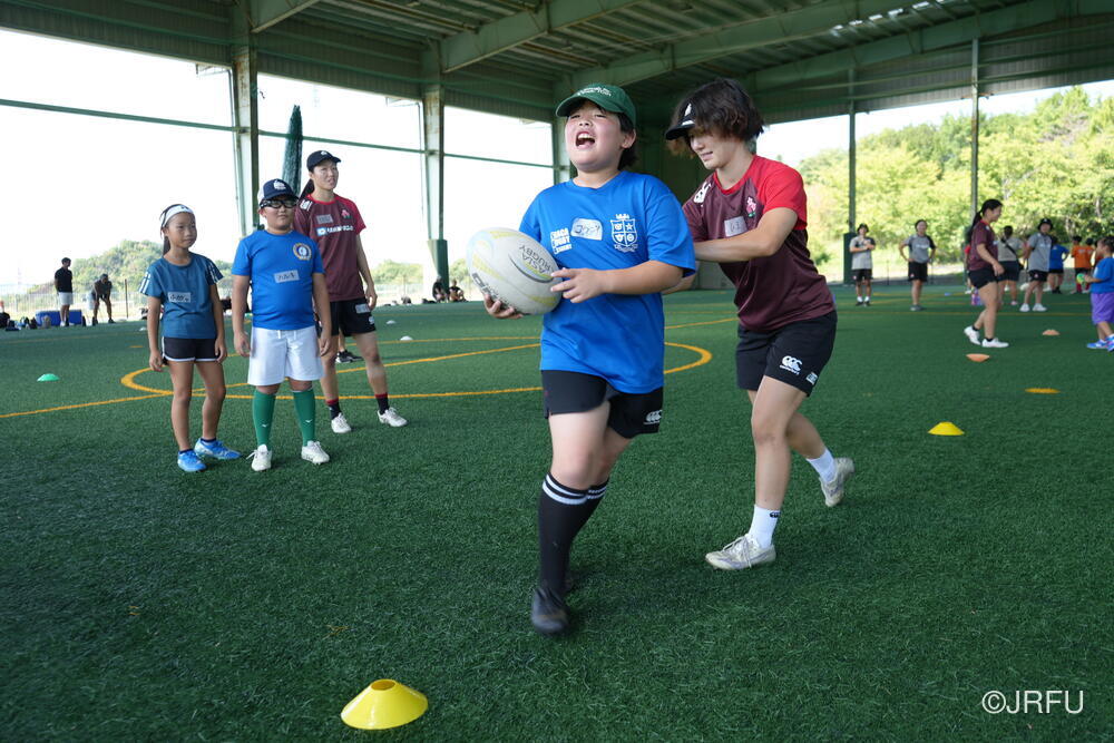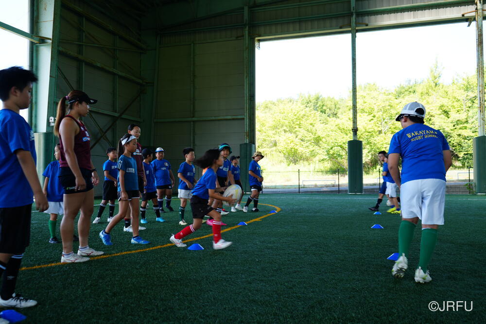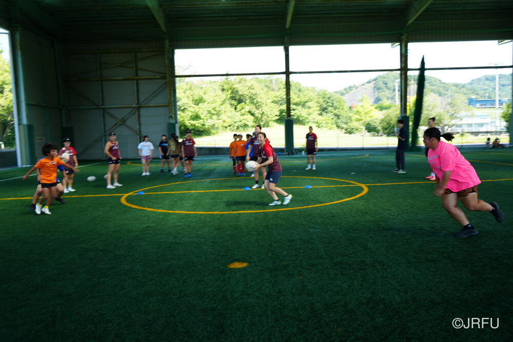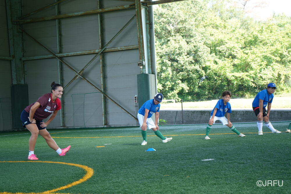 午前は和歌山県のラグビースクールの子どもたちや女子チームの選手たちと交流しました。