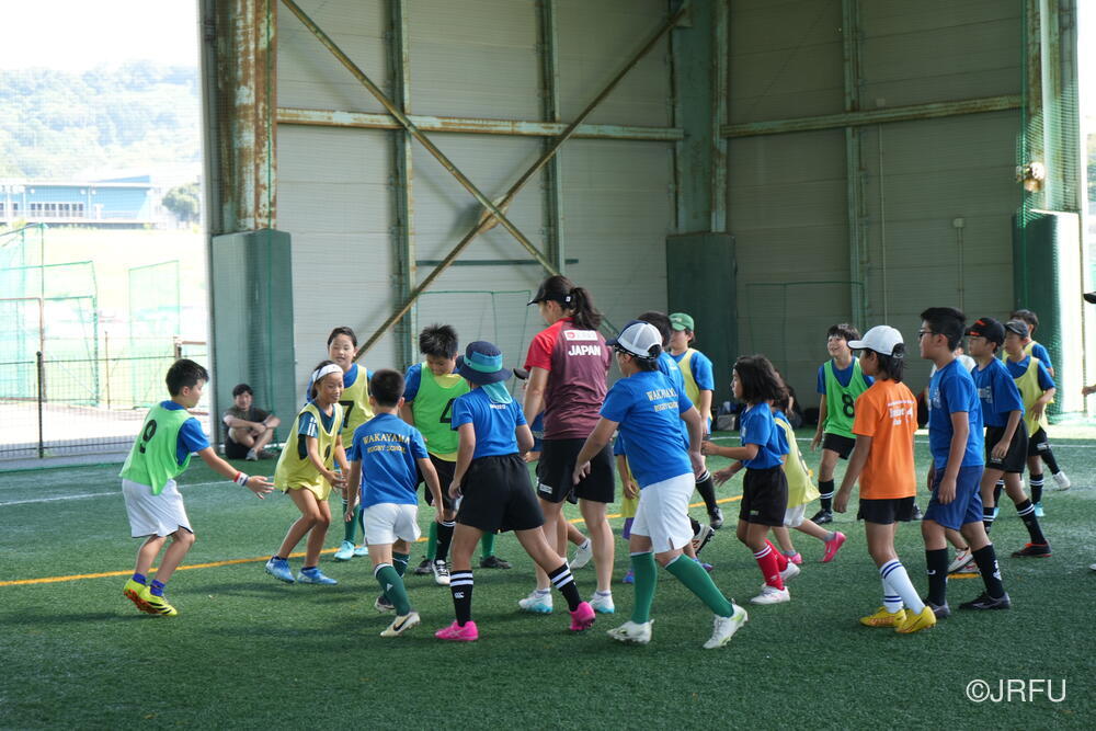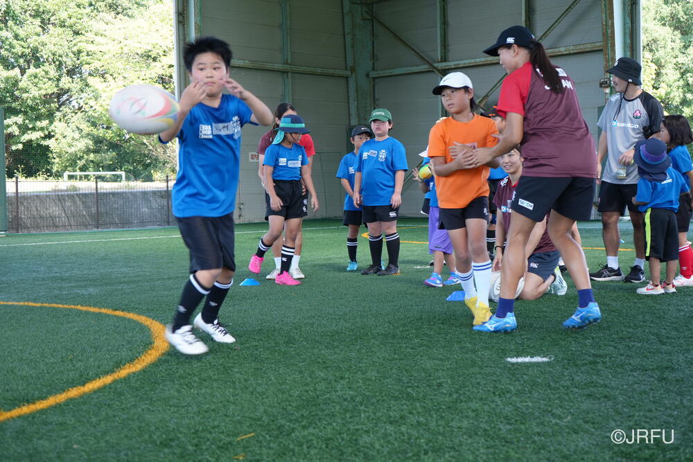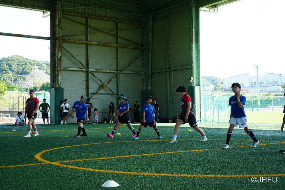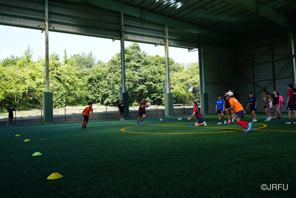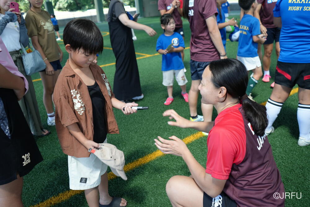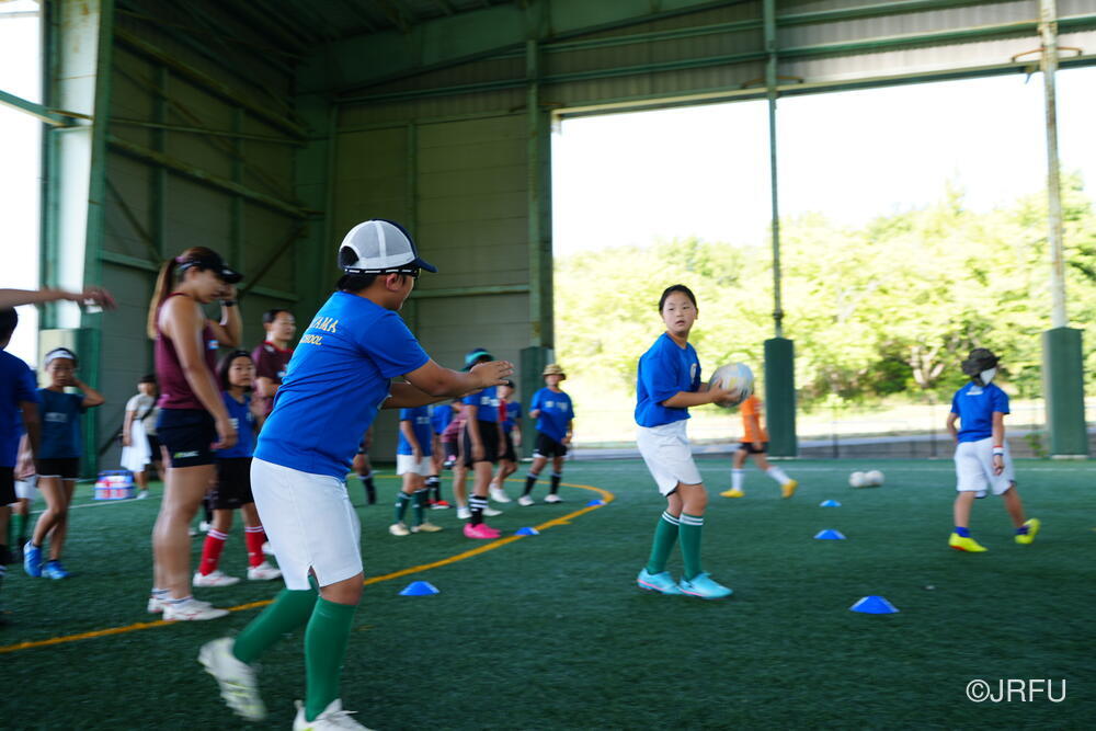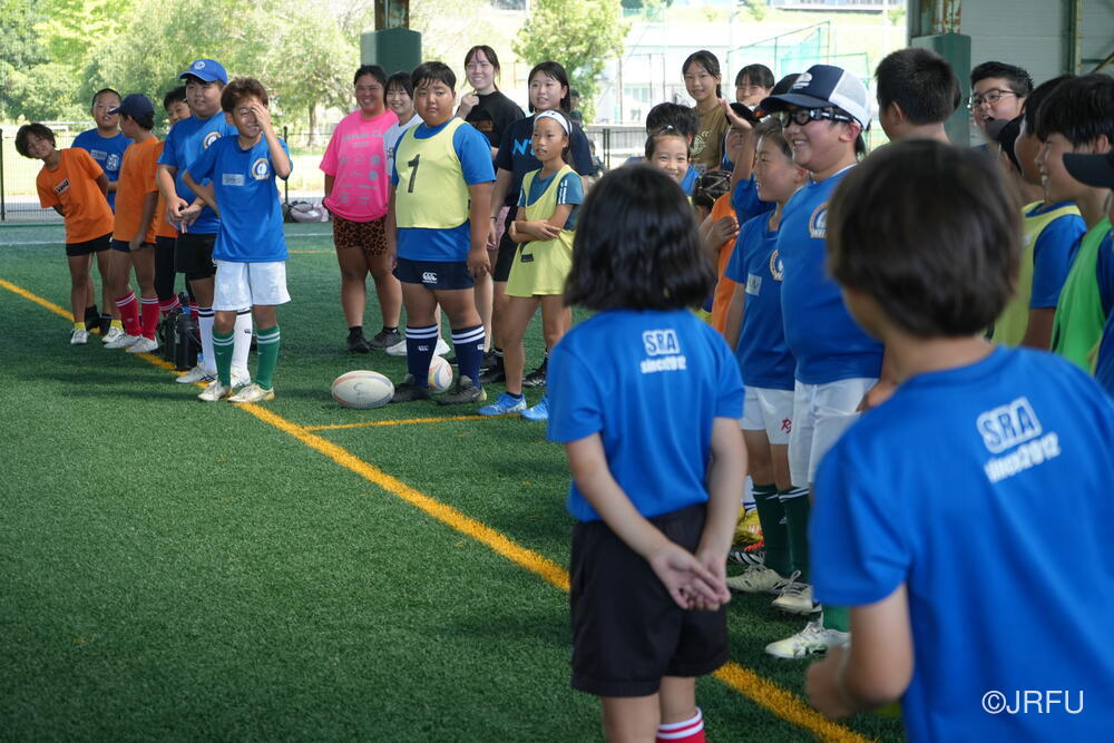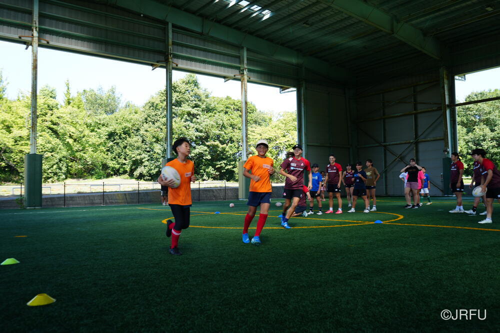 午前は和歌山県のラグビースクールの子どもたちや女子チームの選手たちと交流しました。