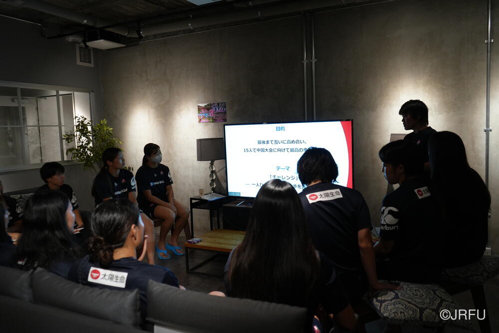 夕食前には合宿のクロージングミーティングを行いました。定山渓合宿から今シーズンが始まり、互いに高め合いながら和歌山合宿を終えることができました。サクラセブンズの仲間のため、未来のためにまずは中国大会で優勝目指して戦ってきます。