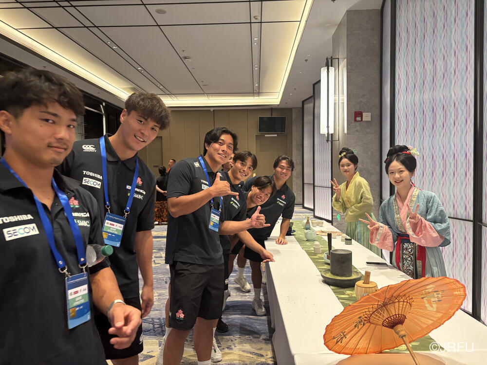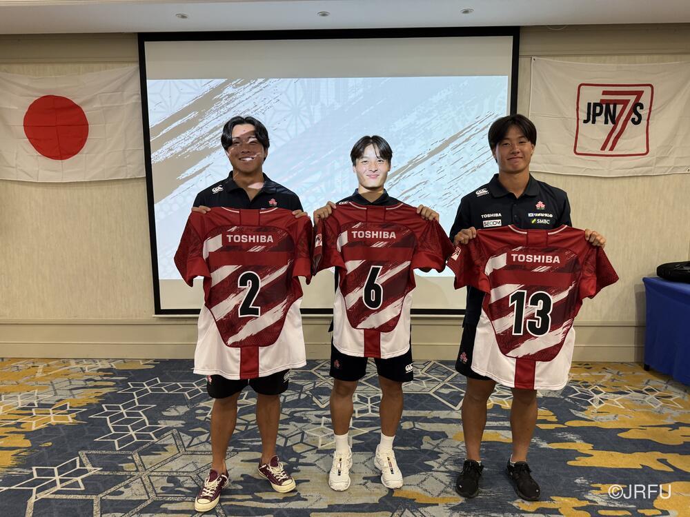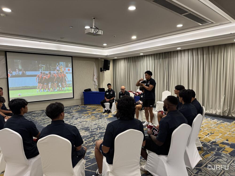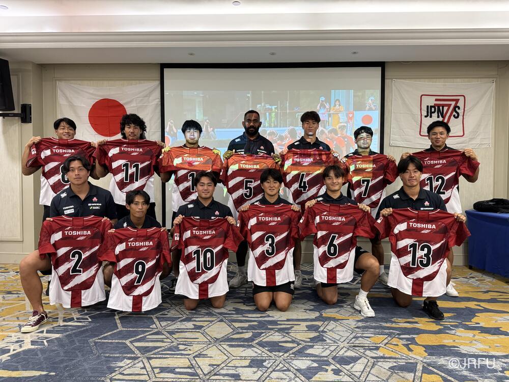 その後、ジャージプレゼンテーションを行いました。初キャップとなる3名を含め選手全員が、男子セブンズの掲げる戦い方と全力を尽くすことを改めて誓い、合に向けて気持ちをひとつにしました。