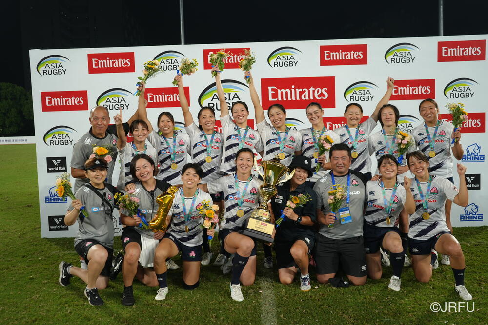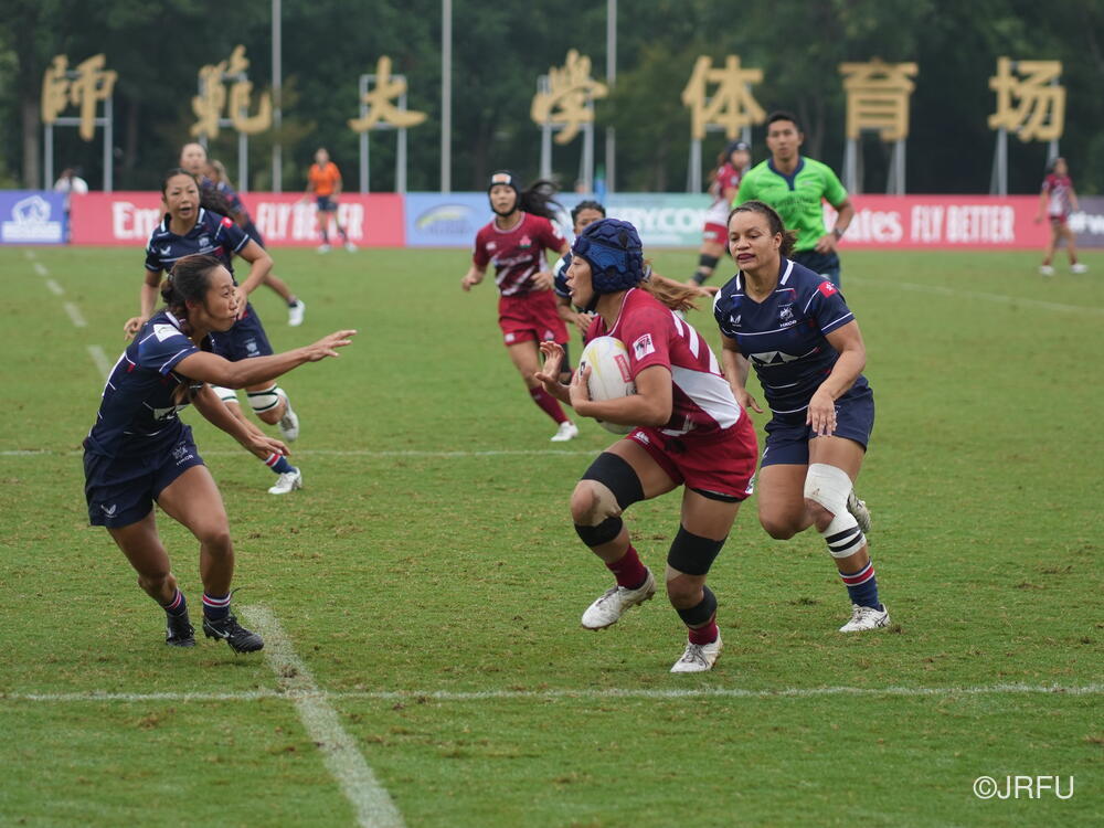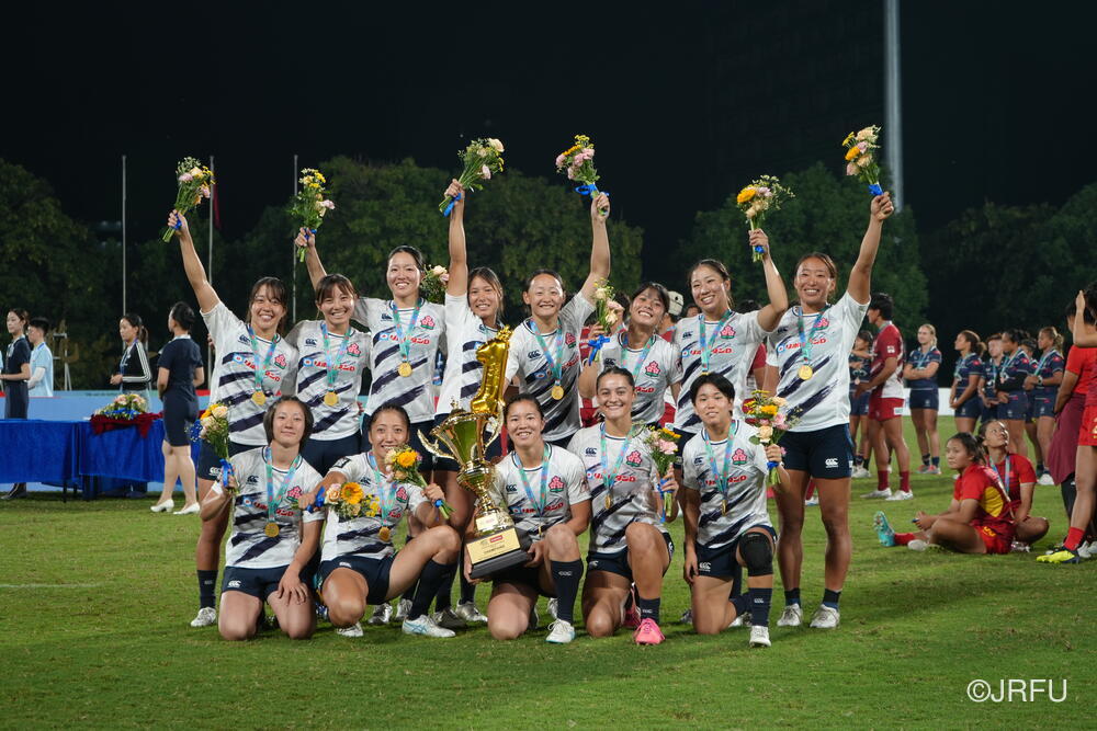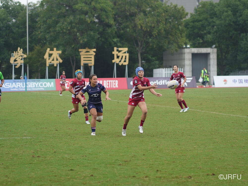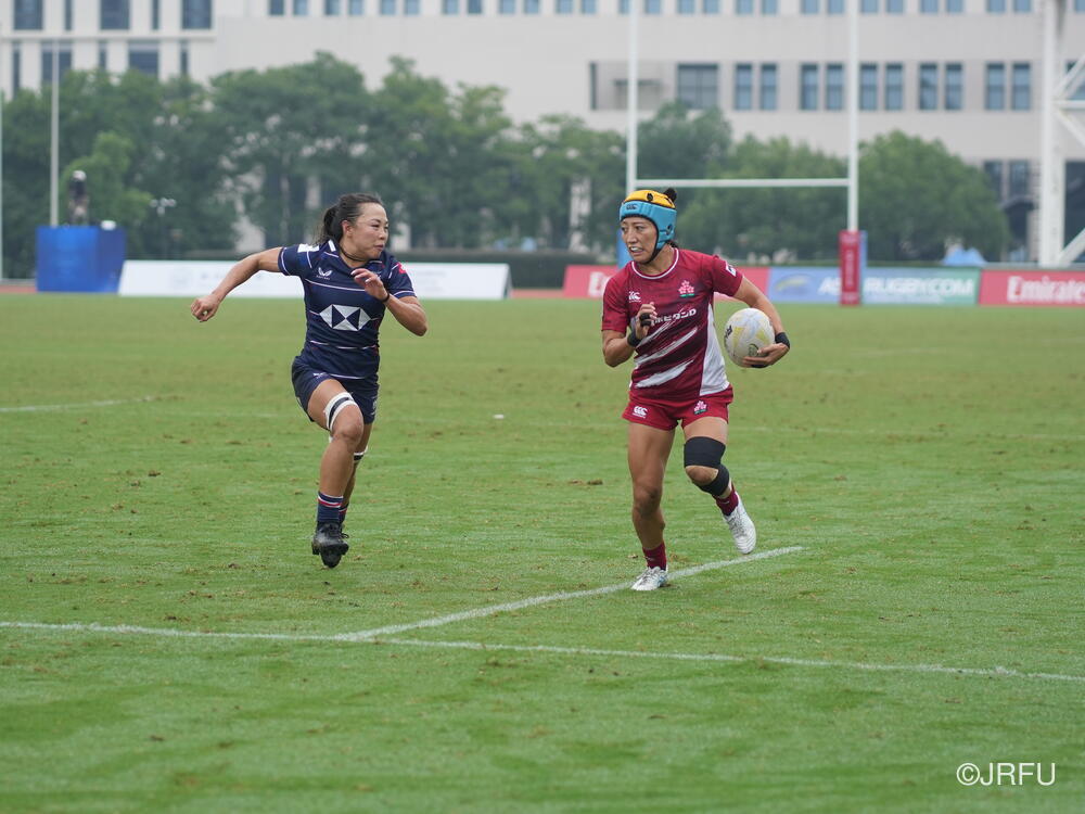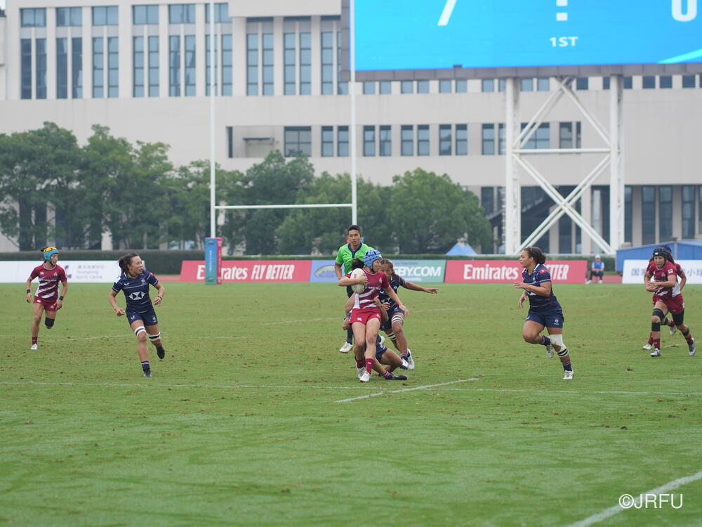 準決勝まで完封勝利が続くも、決勝では前半に3トライを奪われ、苦しい展開となりました。しかし、そこで諦めないのがサクラセブンズ。粘り強くアタックを継続し同点へ。後半ラストワンプレーでも集中して攻め続けるサクラセブンズ。そして、最後はボッドマン選手が抜け出しトライ!逆転優勝です!