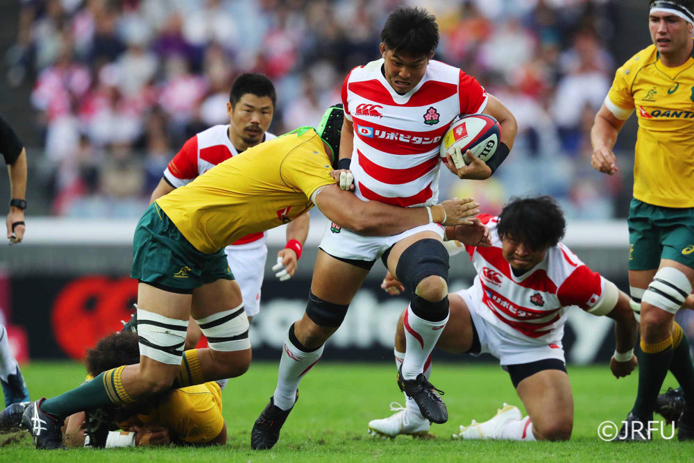 田中: オーストラリアは能力の高い選手が本当に多いですよね。僕は9番の選手をよく見るので、ジェイク・ゴードン選手(キャップ32)はサイド攻撃もすごく強いし、ディフェンスも強くて、チームを前に押し上げる能力が高いです。ゴードン選手がスペースにボールを運ばせて前に出れるかというのが試合展開の大きなキーポイントになると思います。 今の日本代表にはスクラムハーフに良い選手が多いです。福田健太選手(キャップ5)と北村瞬太郎選手(キャップ1)。北村選手もリーグワンではすごくトライも取っていますし、チームを前に上げる能力が高いので、藤原忍選手(キャップ5)と福田選手とこの3人のポジション争いも注目になっていると思います。