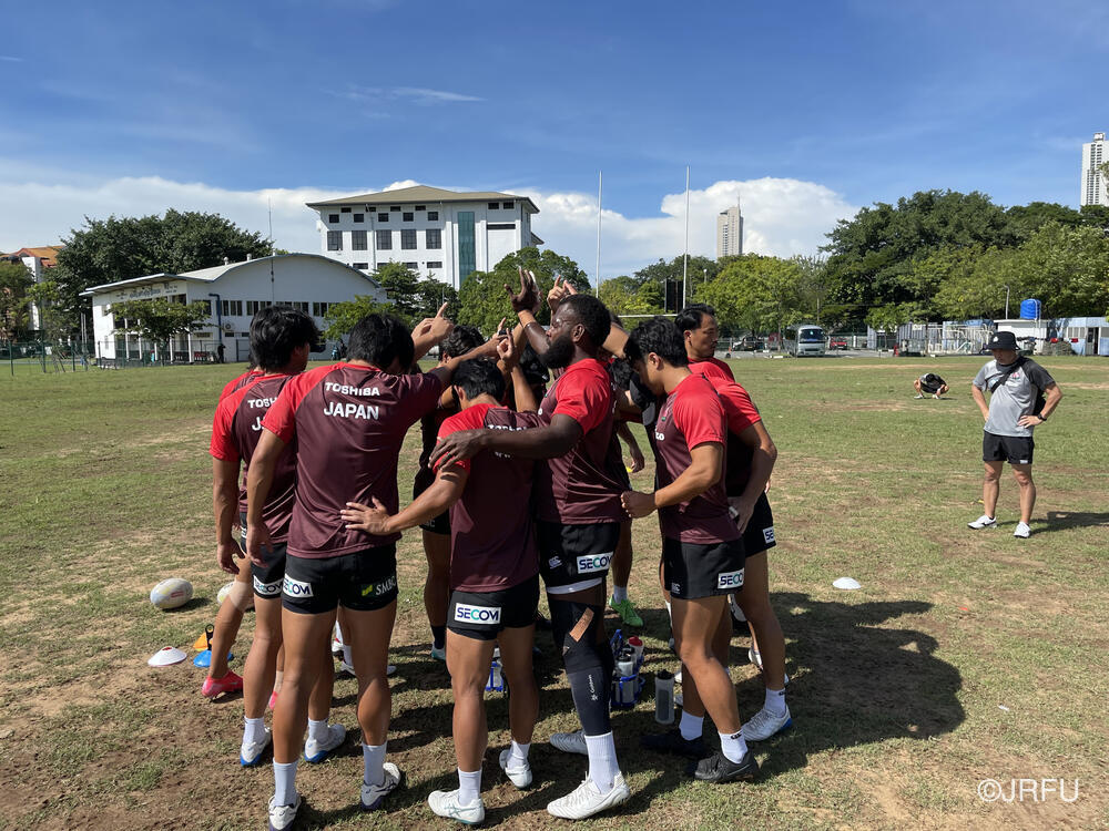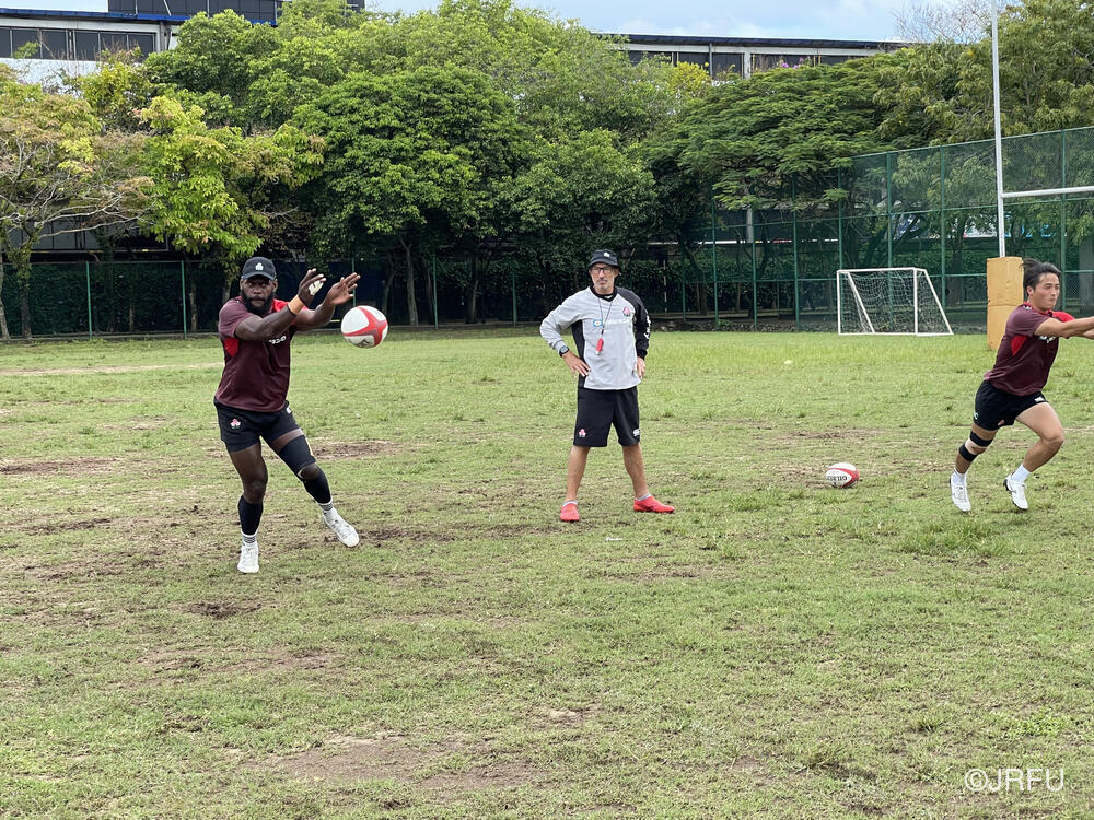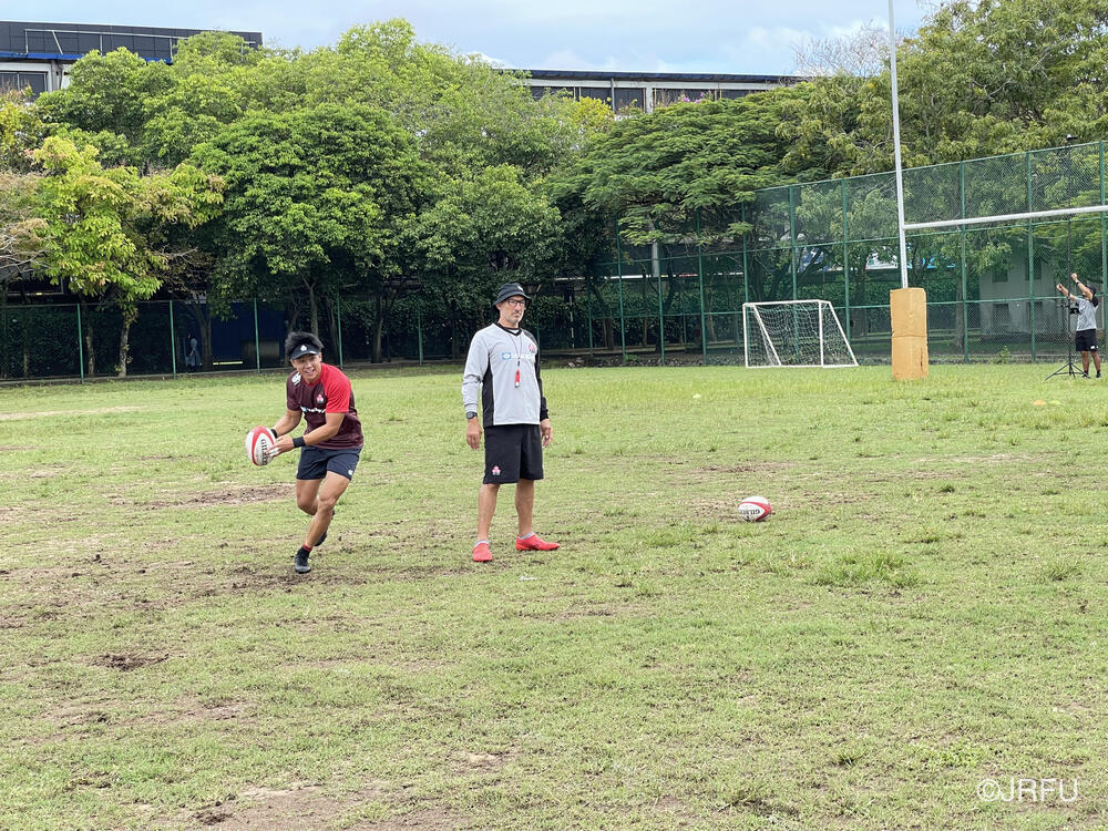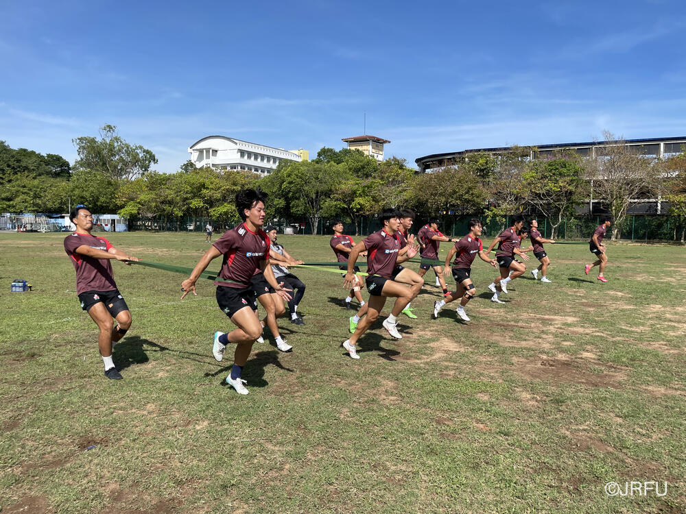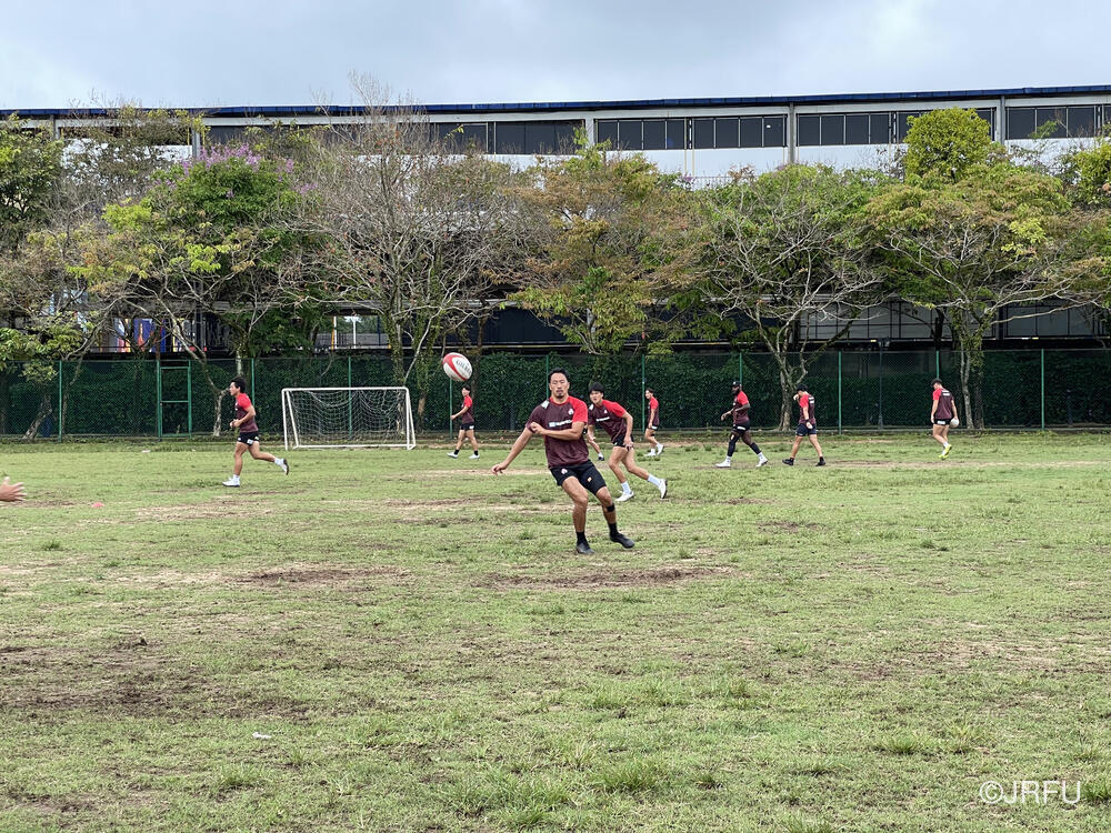 本日は午前中にキャプテンズランを実施しました。共同キャプテンの古賀由教選手と中野剛通選手のリードのもと、セットプレーからのアタックやキックオフの確認など、今大会の相手を想定した最終調整を行いました。