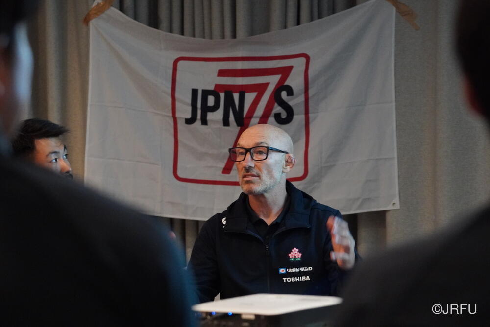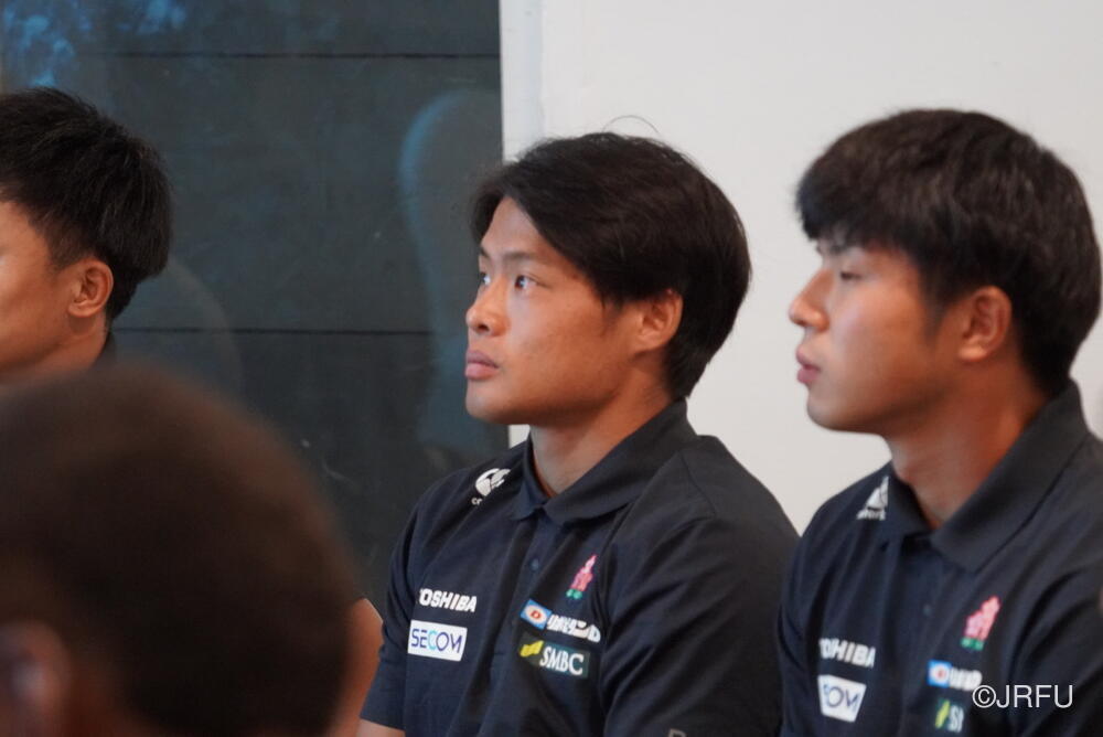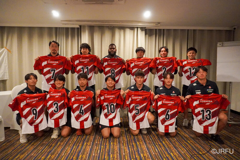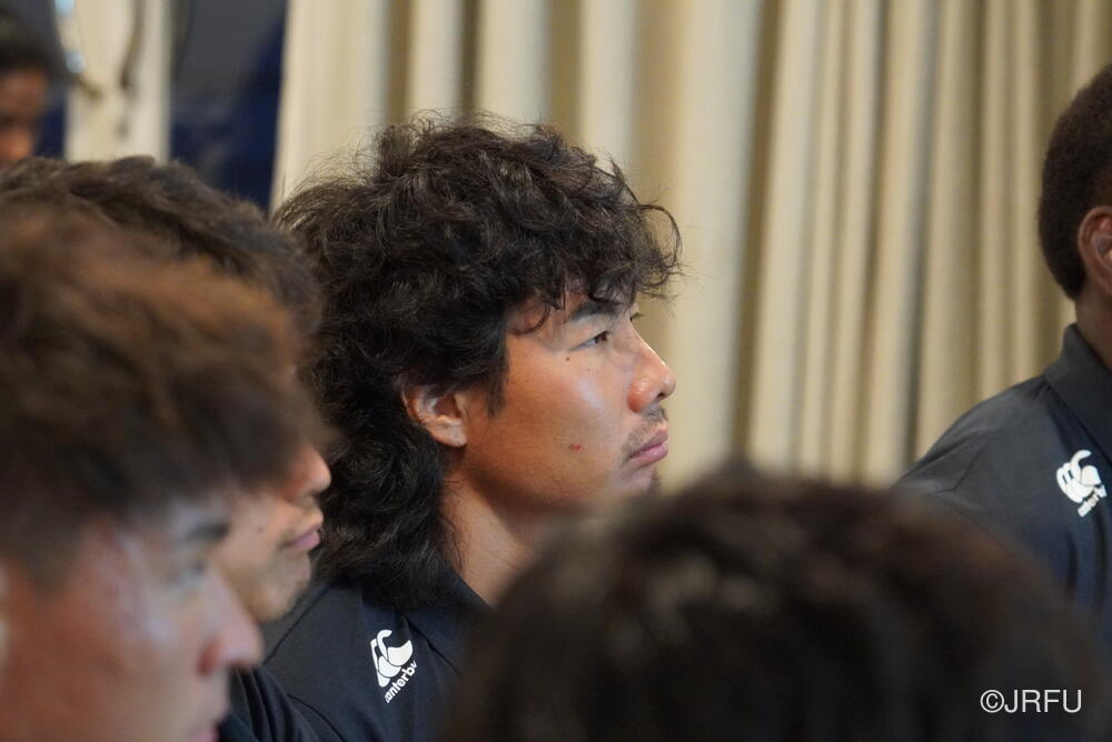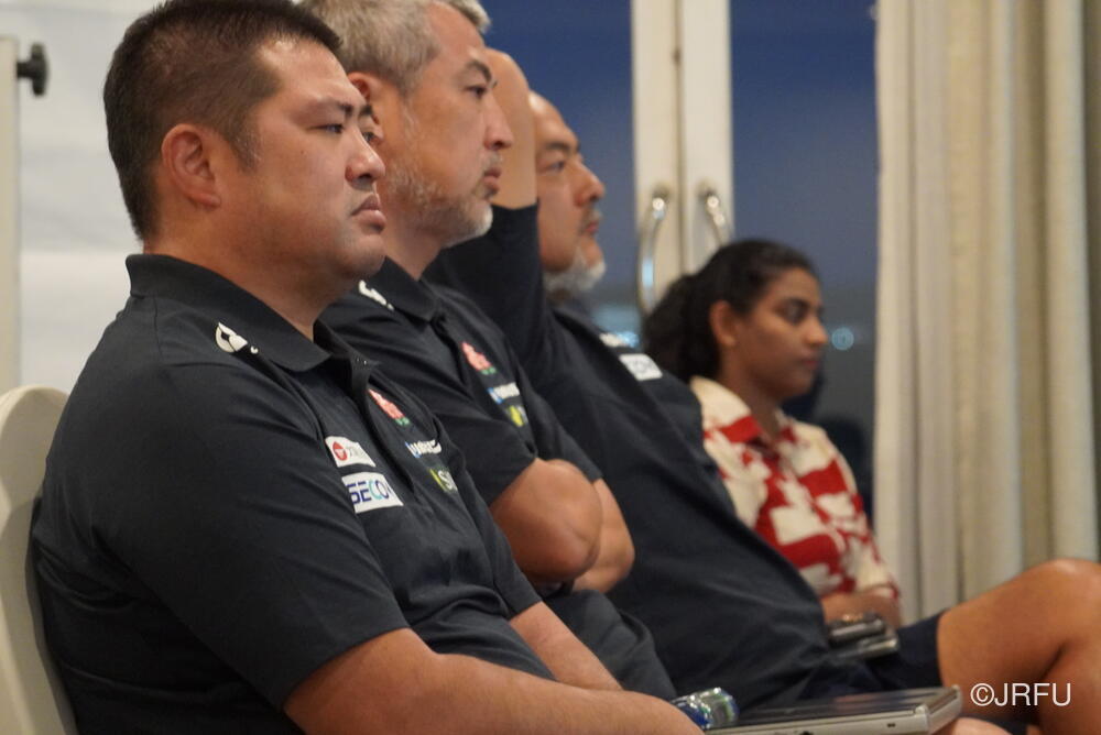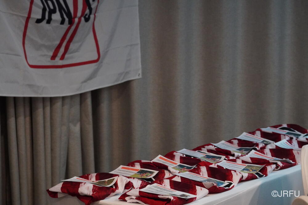 夜にはジャージプレゼンテーションを実施。改めて自分たちがこの大会で果たすべき役割を確認し合いました。フィルHCからは、初キャップ1名を含む13名の選手へジャージが手渡されました。