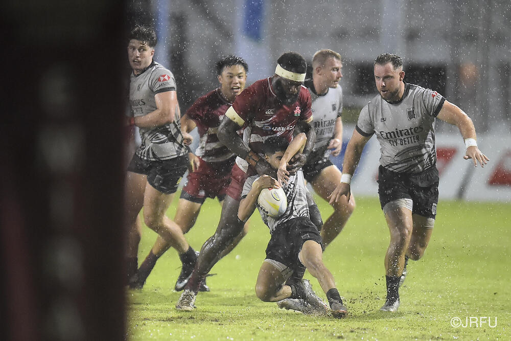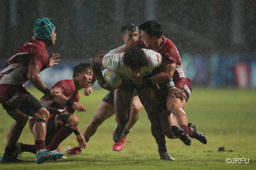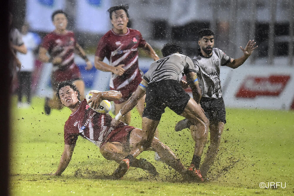 決勝の相手はホンコン・チャイナ代表。連日の雨によりグラウンドはぬかるみ、非常に厳しいコンディションの中での戦いとなりました。お互いになかなかトライできない緊迫した展開が続き、結果はいずれも1トライずつ。試合は延長戦にもつれ込みましたが、トライを許し惜しくも敗戦となりました。悔しい結果ではありますが、チームとして成長を感じられる大会となりました。