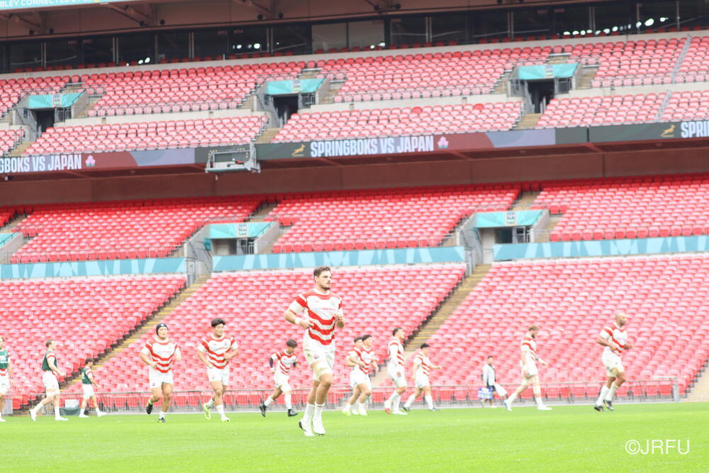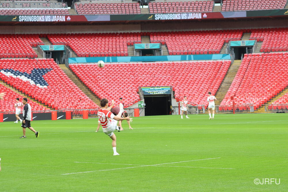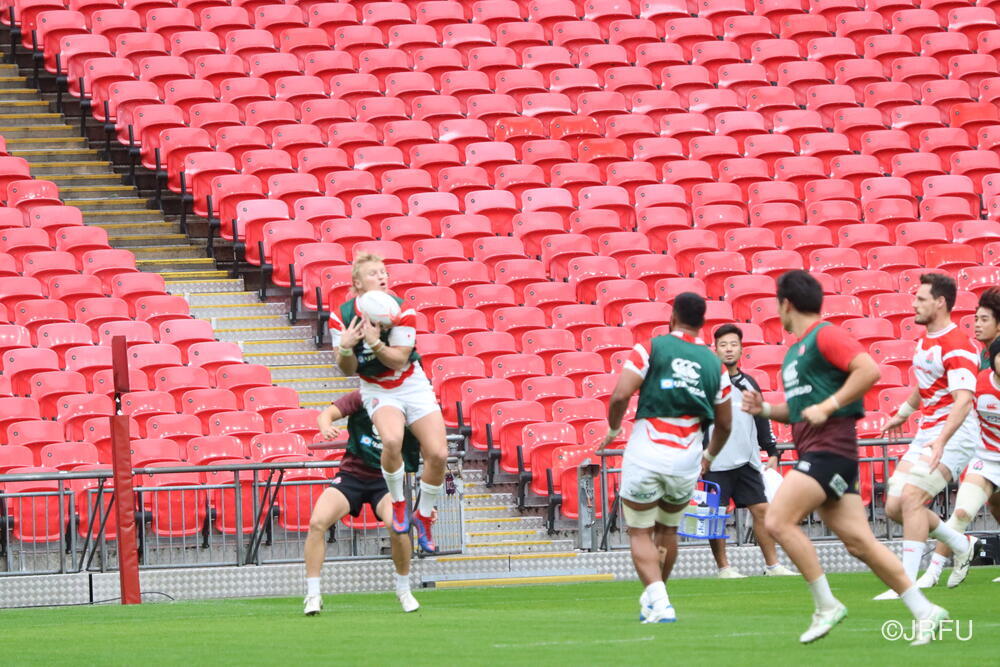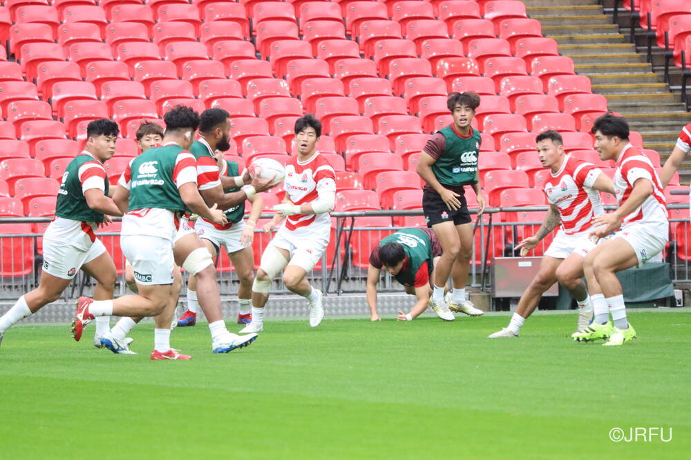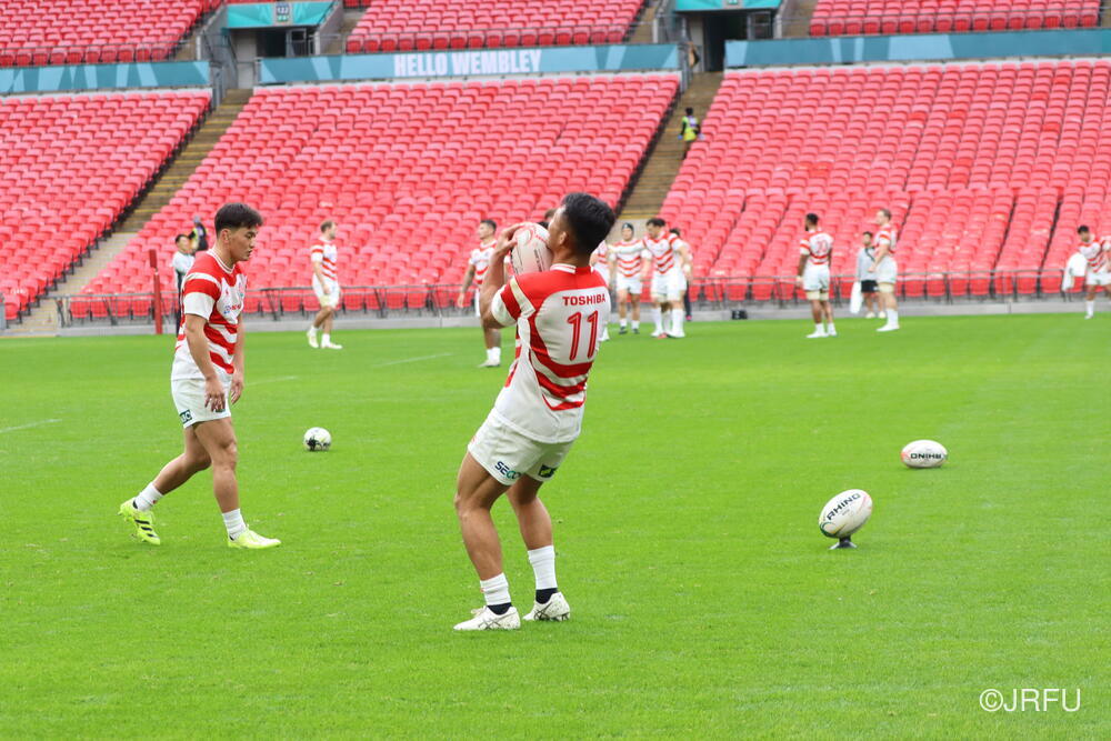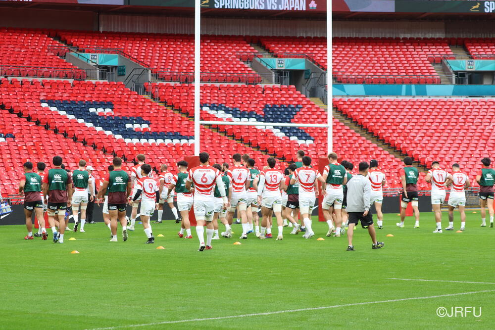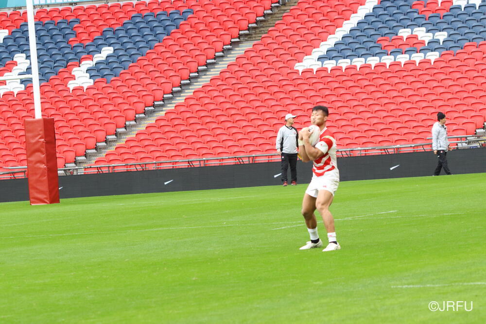 到着翌日ということで、トレーニング自体は、短い調整でしたが、疲れも見せず集中した良い練習ができていたと思います。明日は試合前最後の練習となるキャプテンズランを試合会場のウェンブリースタジアムで行います。