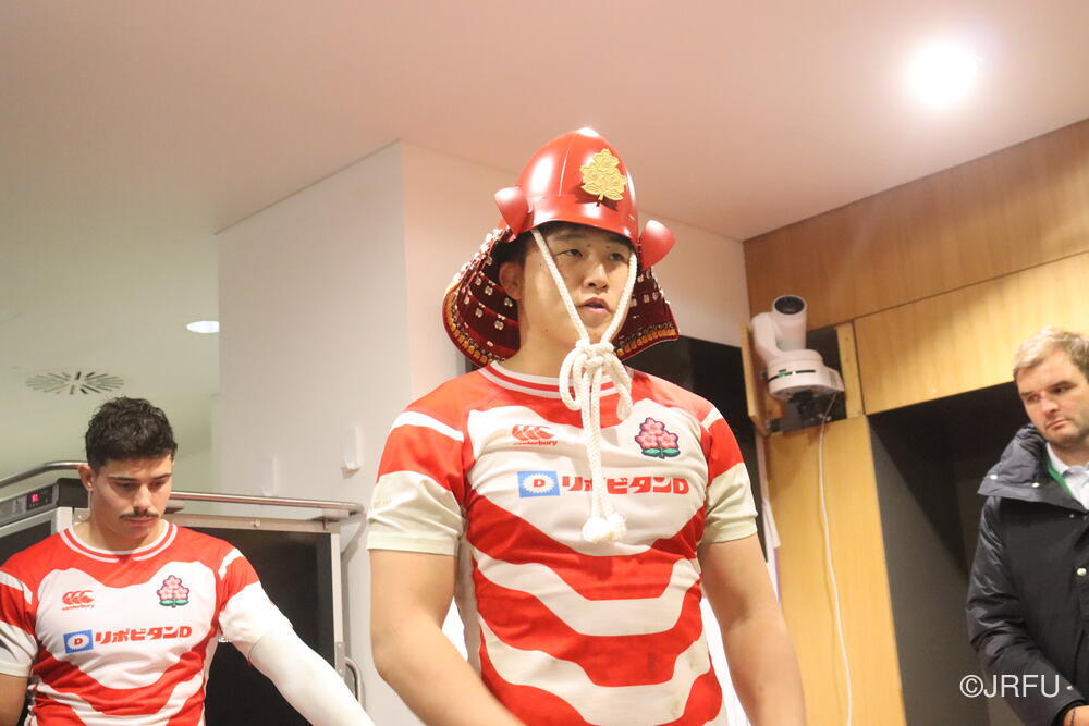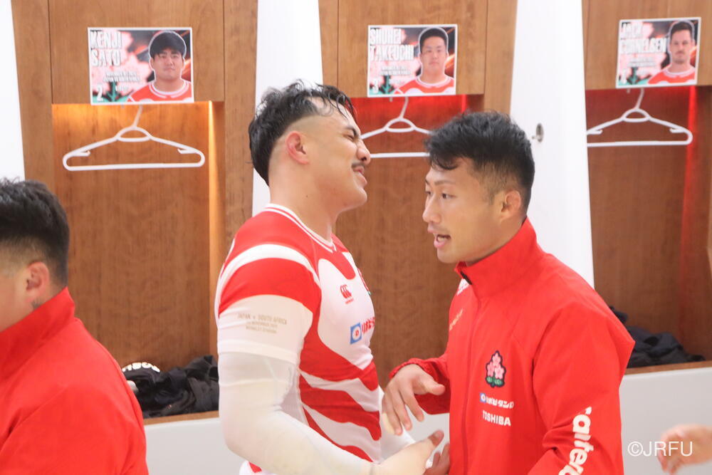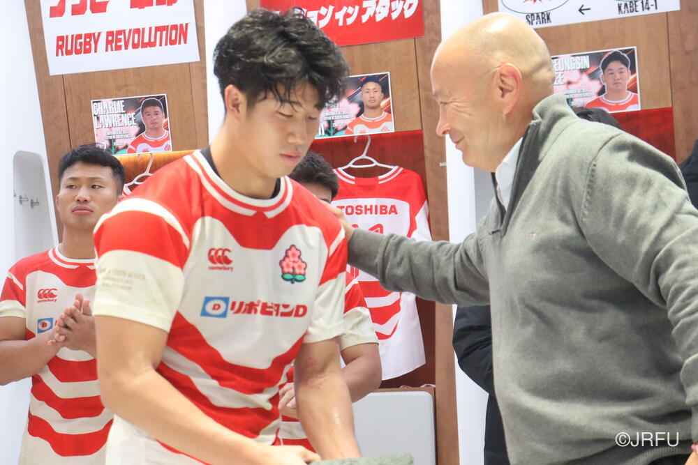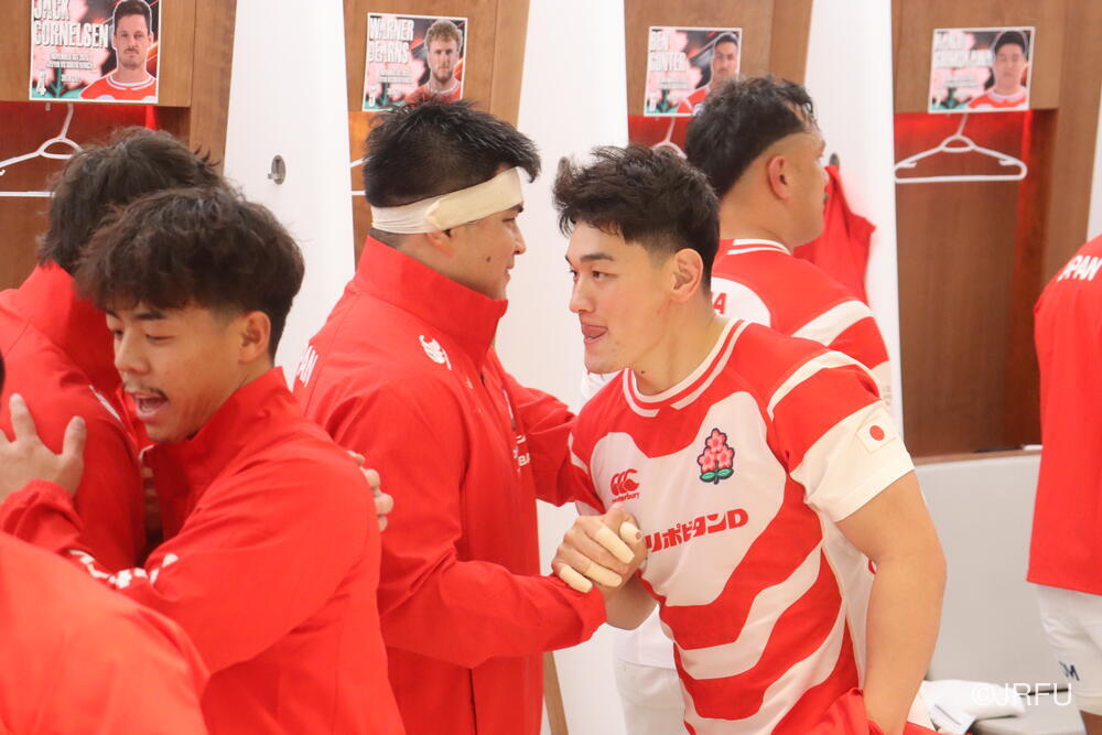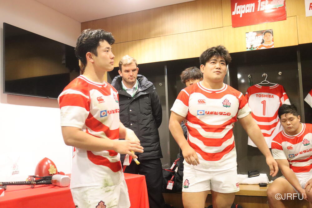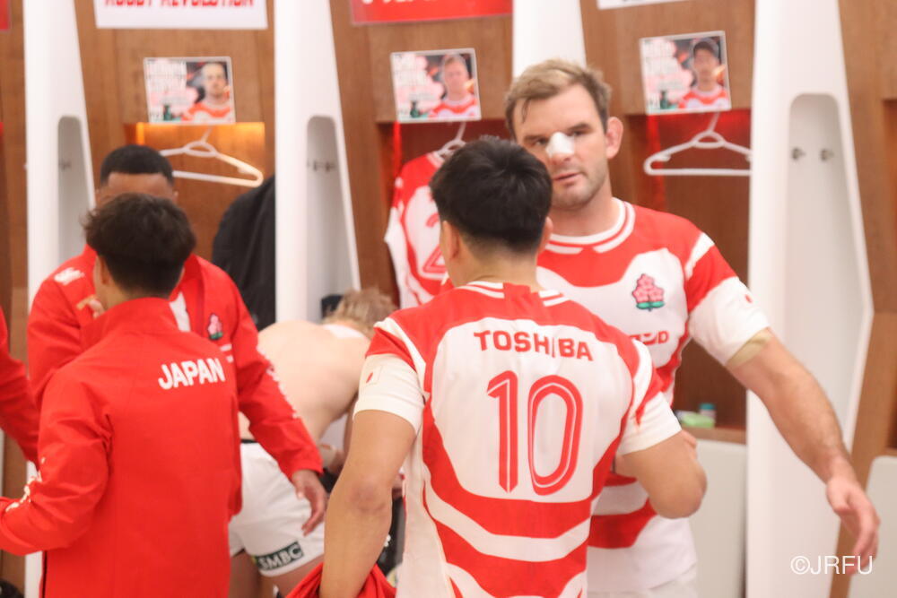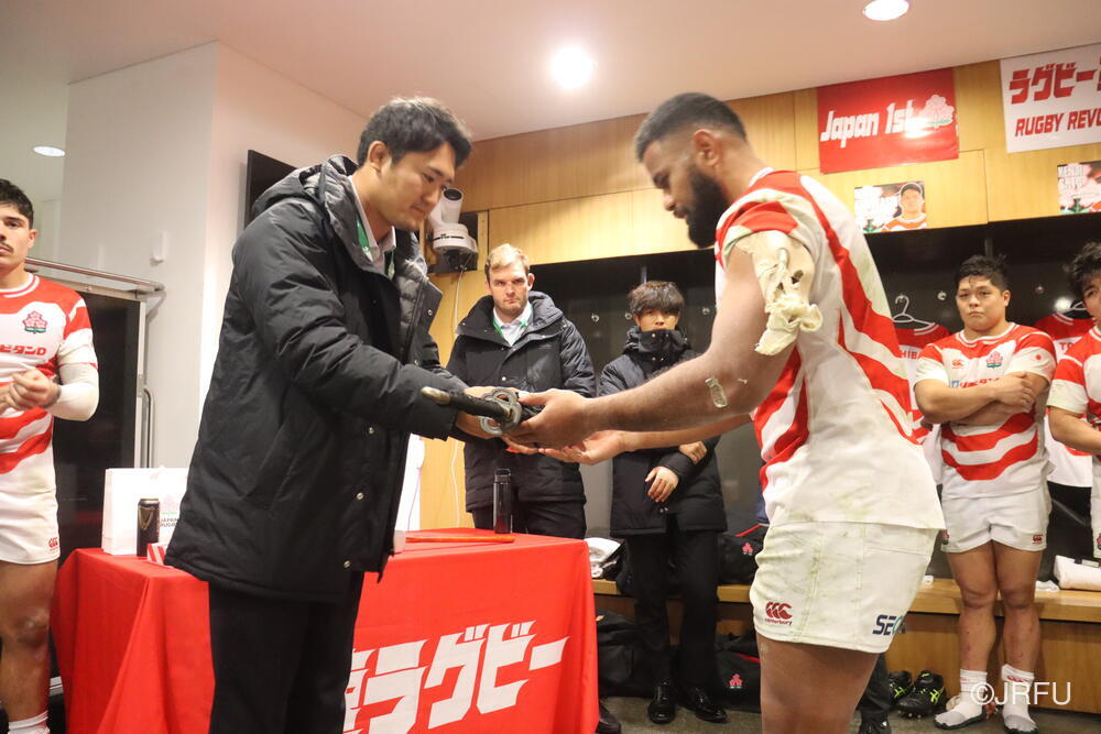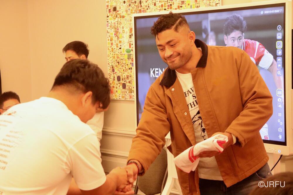 「今ここにいられて光栄です。10年前は、みんなと同じようにこのジャージを受け取って、同じような緊張感を持っていました。世界の強豪と対決するということで、南アフリカと対戦するときに、チームの外では無理じゃないかと思われていましたが、チーム内では自分たちのやってきた準備を信じていたし、JAPANは勝てると信じていました。明日は同じようなチャンスがあります。世間はそう思っていないかもしれないけれど、自分たちはできる。誰がどう思おうが、大事なのは自分自身がどう思っているか。明日出たら、自分自身を代表するだけではなく、このジャージを着てきた人たちの思いや責任も果たさないといけない。信じてくれているファン、そして日本でラグビー選手になりたいと夢を持っている子供達のために。頑張ってください!」