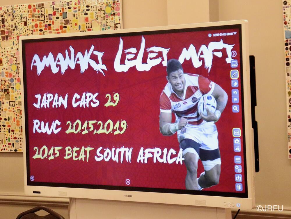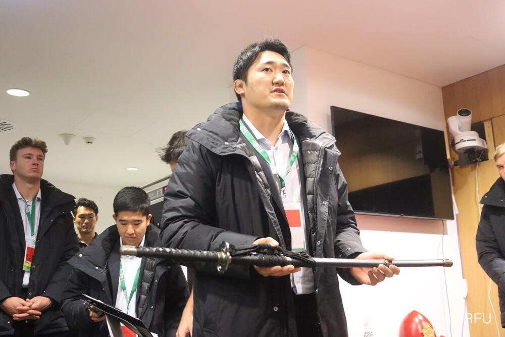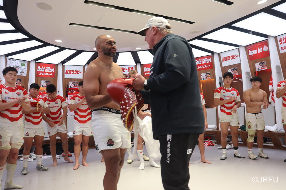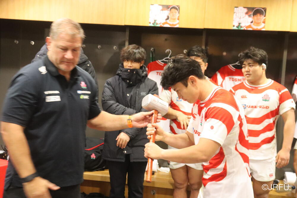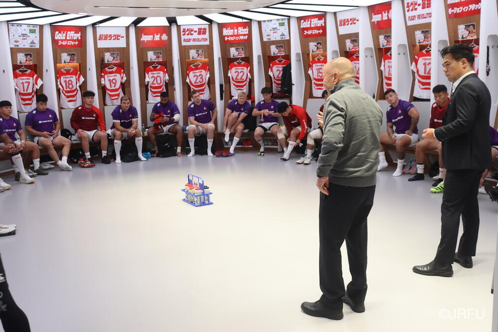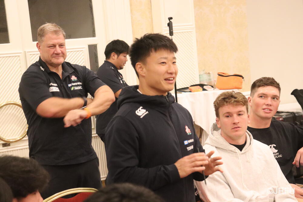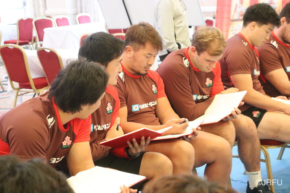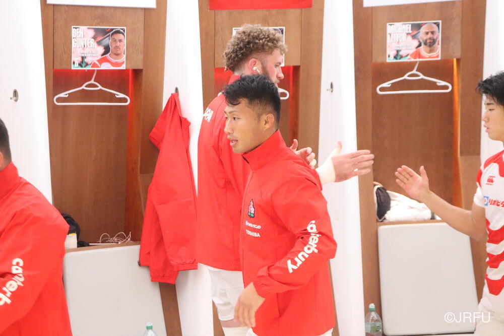 「今ここにいられて光栄です。10年前は、みんなと同じようにこのジャージを受け取って、同じような緊張感を持っていました。世界の強豪と対決するということで、南アフリカと対戦するときに、チームの外では無理じゃないかと思われていましたが、チーム内では自分たちのやってきた準備を信じていたし、JAPANは勝てると信じていました。明日は同じようなチャンスがあります。世間はそう思っていないかもしれないけれど、自分たちはできる。誰がどう思おうが、大事なのは自分自身がどう思っているか。明日出たら、自分自身を代表するだけではなく、このジャージを着てきた人たちの思いや責任も果たさないといけない。信じてくれているファン、そして日本でラグビー選手になりたいと夢を持っている子供達のために。頑張ってください!」