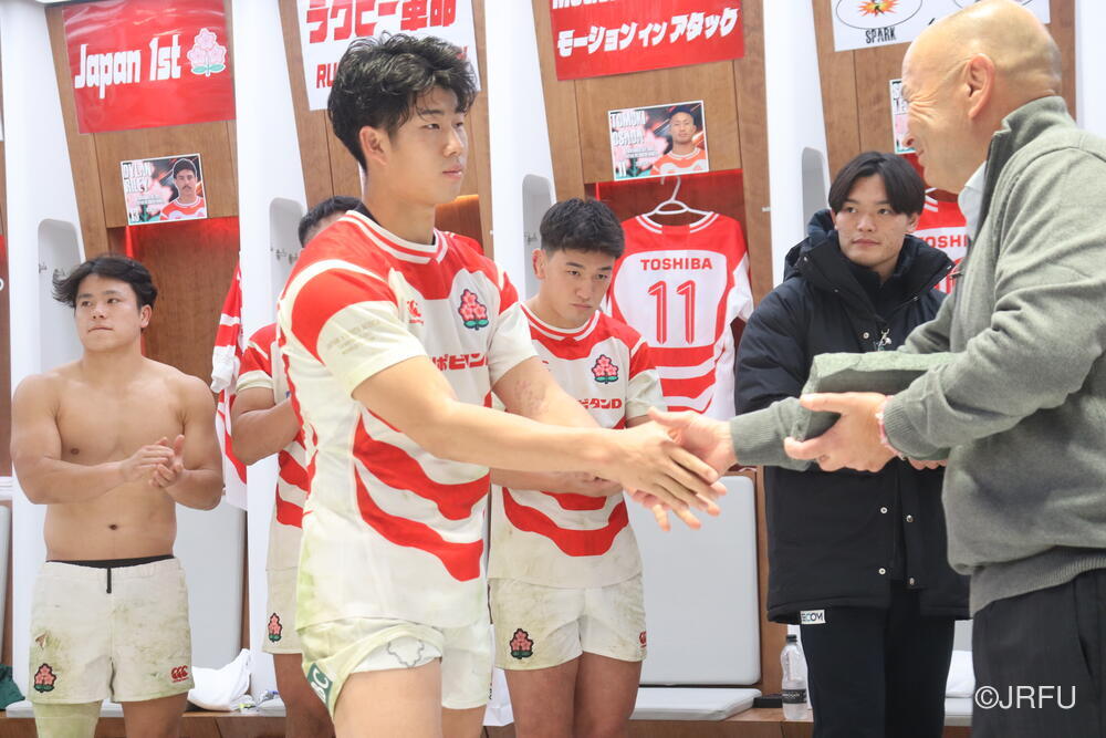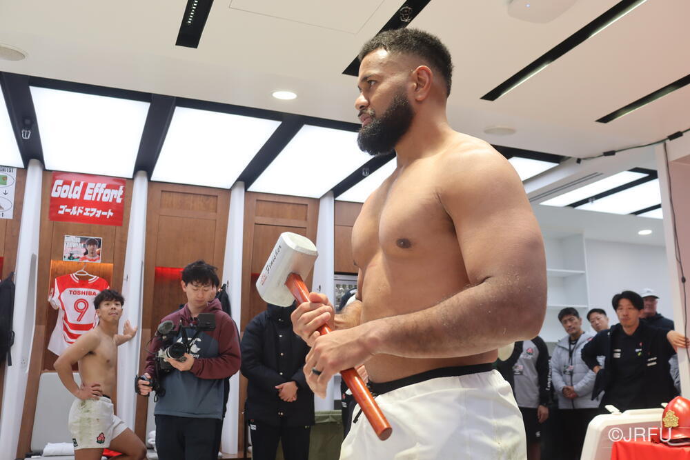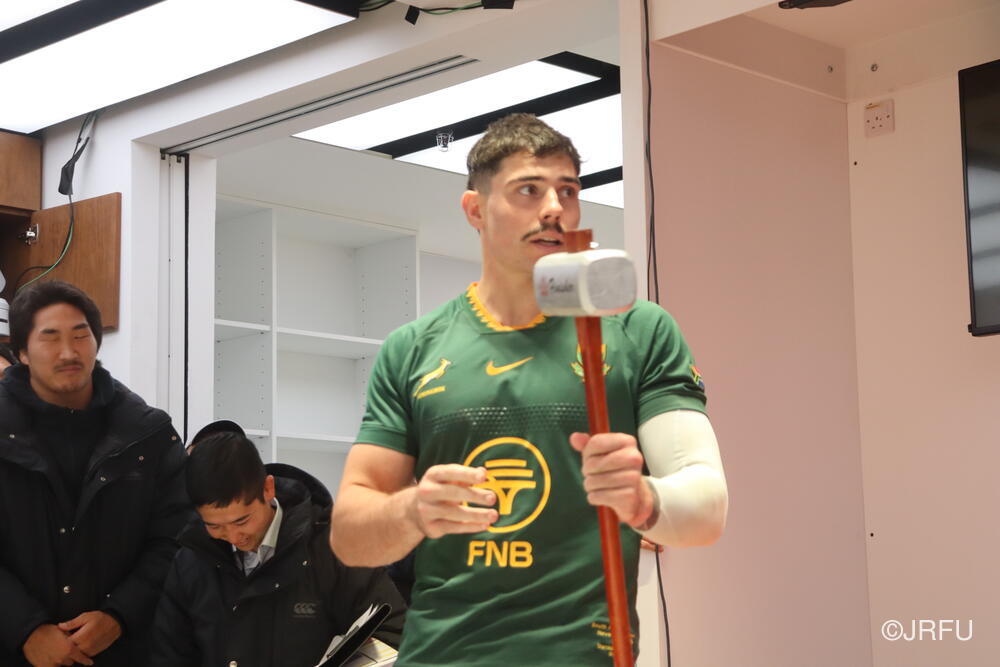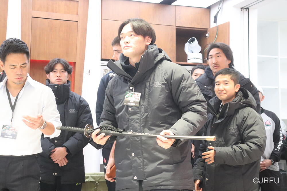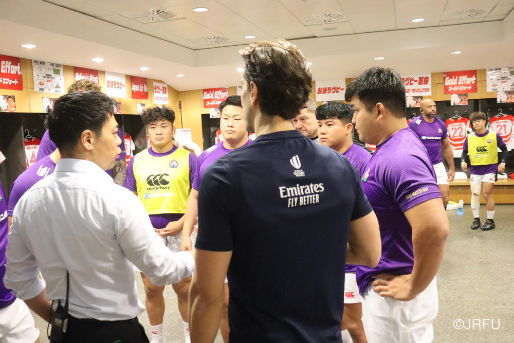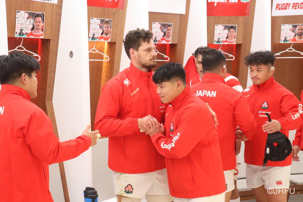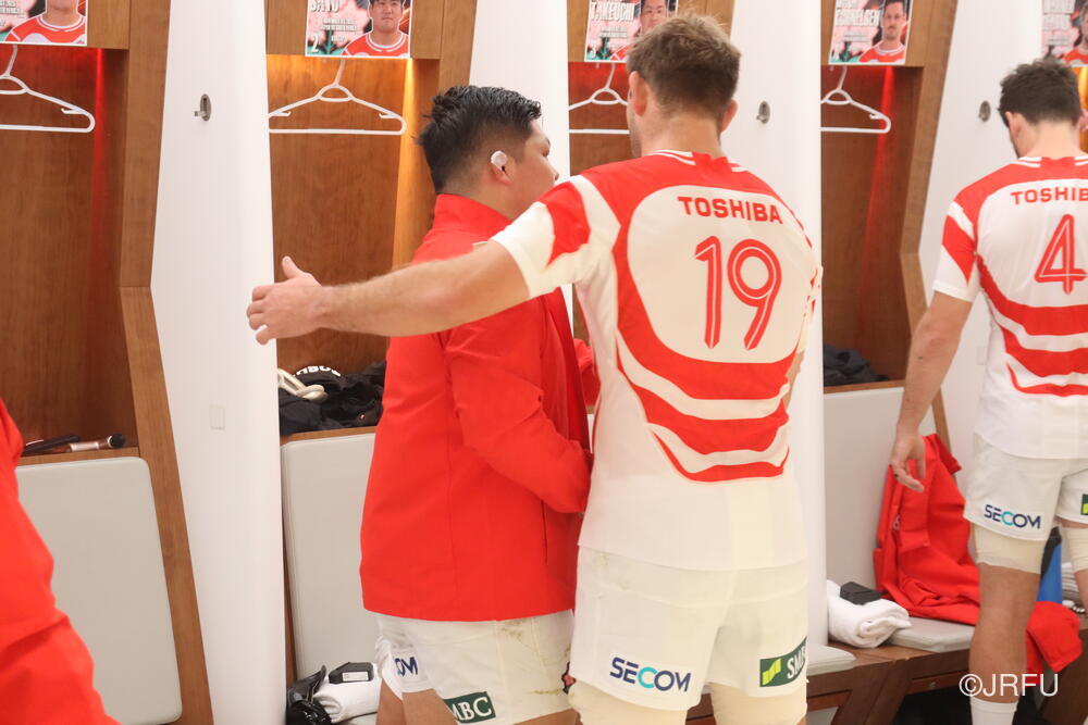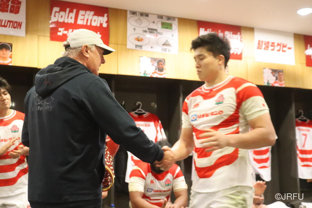「今ここにいられて光栄です。10年前は、みんなと同じようにこのジャージを受け取って、同じような緊張感を持っていました。世界の強豪と対決するということで、南アフリカと対戦するときに、チームの外では無理じゃないかと思われていましたが、チーム内では自分たちのやってきた準備を信じていたし、JAPANは勝てると信じていました。明日は同じようなチャンスがあります。世間はそう思っていないかもしれないけれど、自分たちはできる。誰がどう思おうが、大事なのは自分自身がどう思っているか。明日出たら、自分自身を代表するだけではなく、このジャージを着てきた人たちの思いや責任も果たさないといけない。信じてくれているファン、そして日本でラグビー選手になりたいと夢を持っている子供達のために。頑張ってください!」