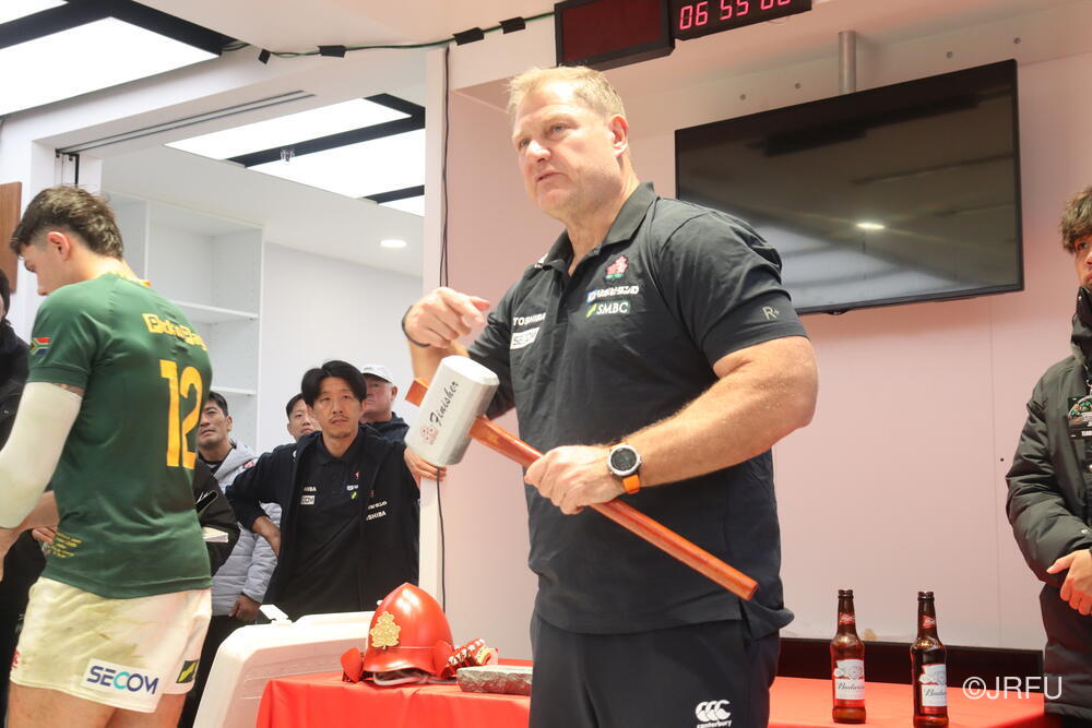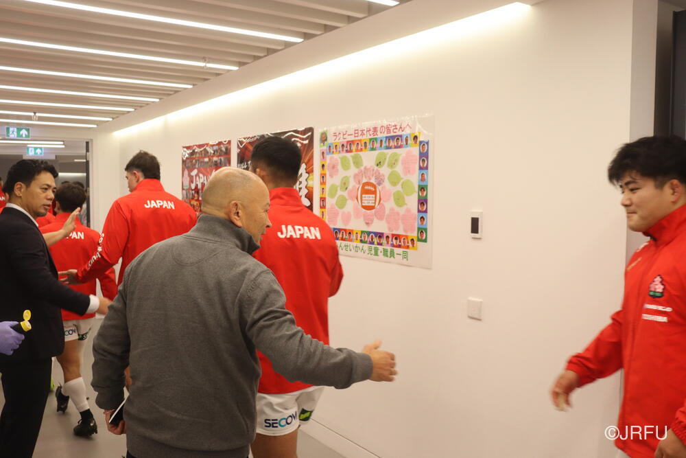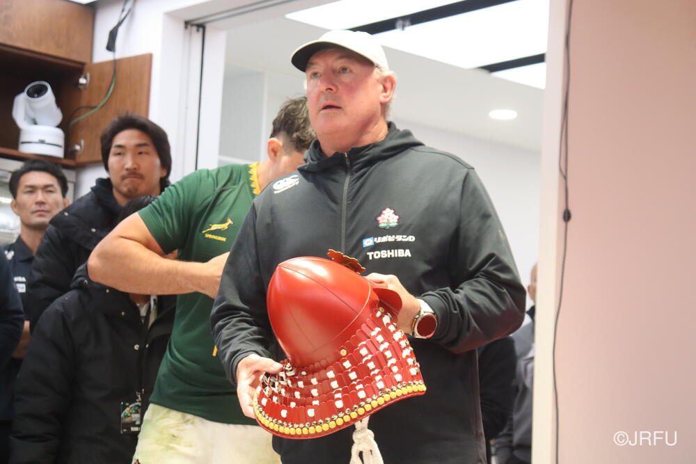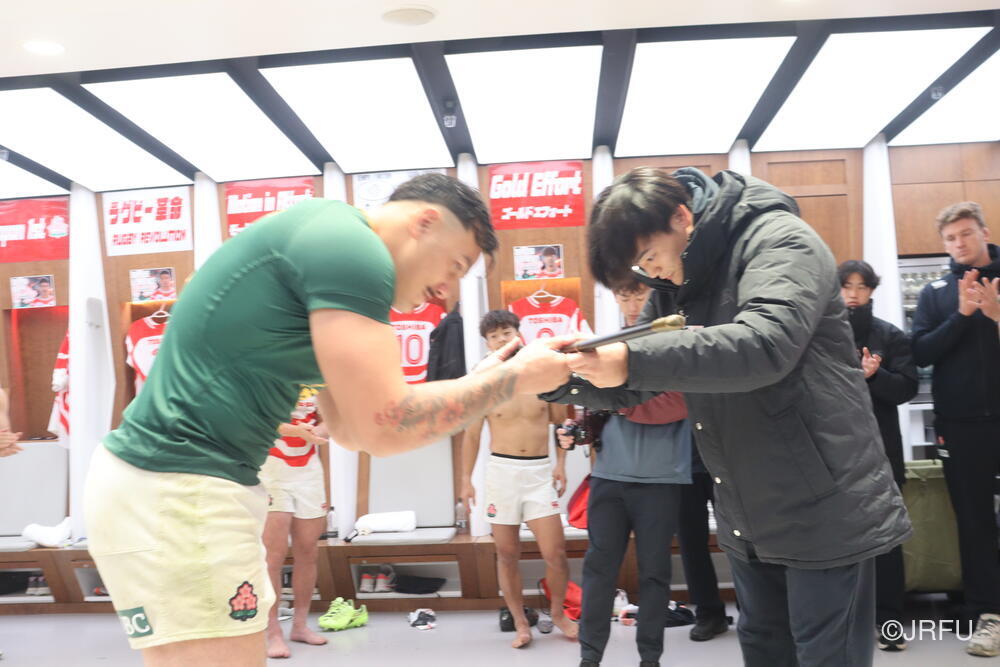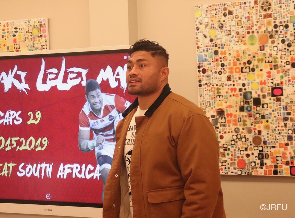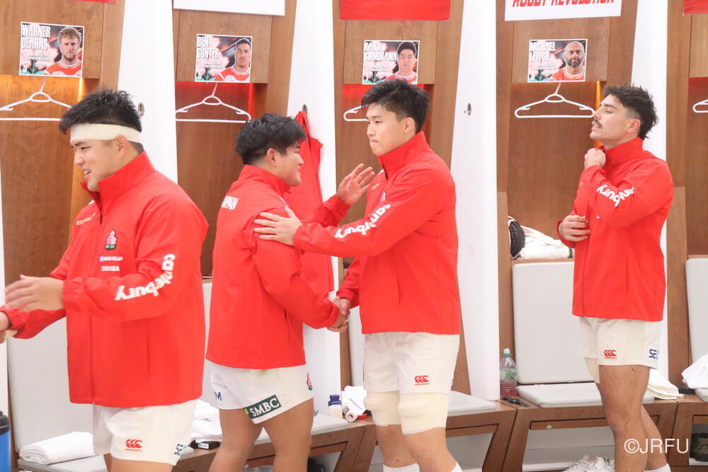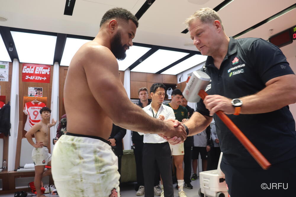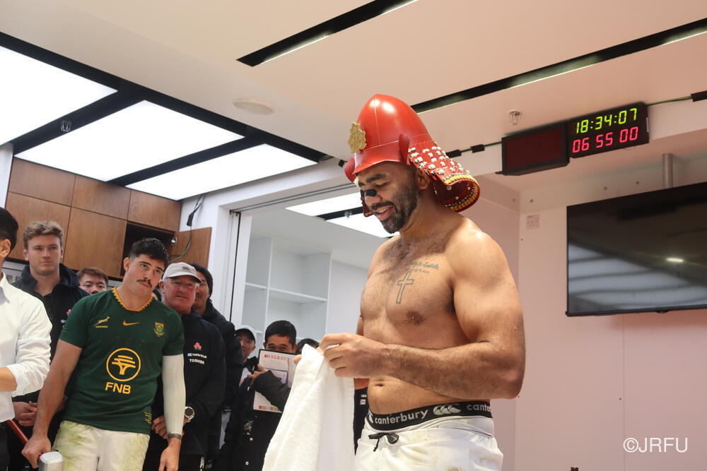 「今ここにいられて光栄です。10年前は、みんなと同じようにこのジャージを受け取って、同じような緊張感を持っていました。世界の強豪と対決するということで、南アフリカと対戦するときに、チームの外では無理じゃないかと思われていましたが、チーム内では自分たちのやってきた準備を信じていたし、JAPANは勝てると信じていました。明日は同じようなチャンスがあります。世間はそう思っていないかもしれないけれど、自分たちはできる。誰がどう思おうが、大事なのは自分自身がどう思っているか。明日出たら、自分自身を代表するだけではなく、このジャージを着てきた人たちの思いや責任も果たさないといけない。信じてくれているファン、そして日本でラグビー選手になりたいと夢を持っている子供達のために。頑張ってください!」