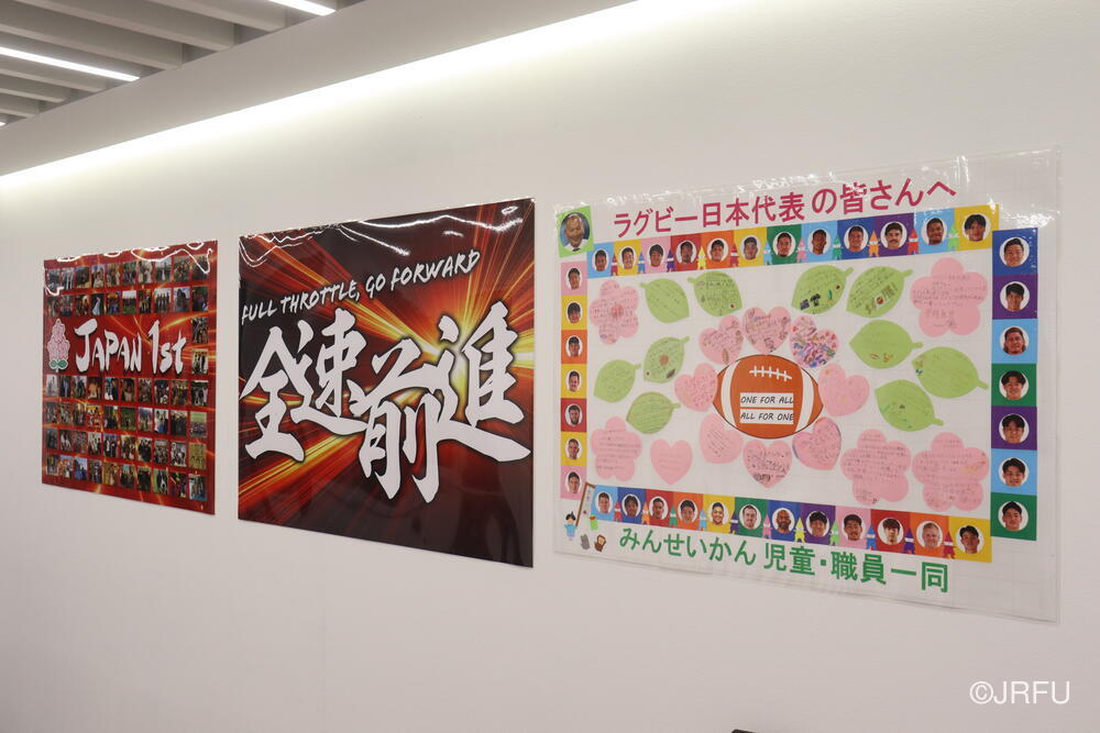 壁には、合宿地である児童養護施設の皆さんが書いてくれた寄せ書きも。