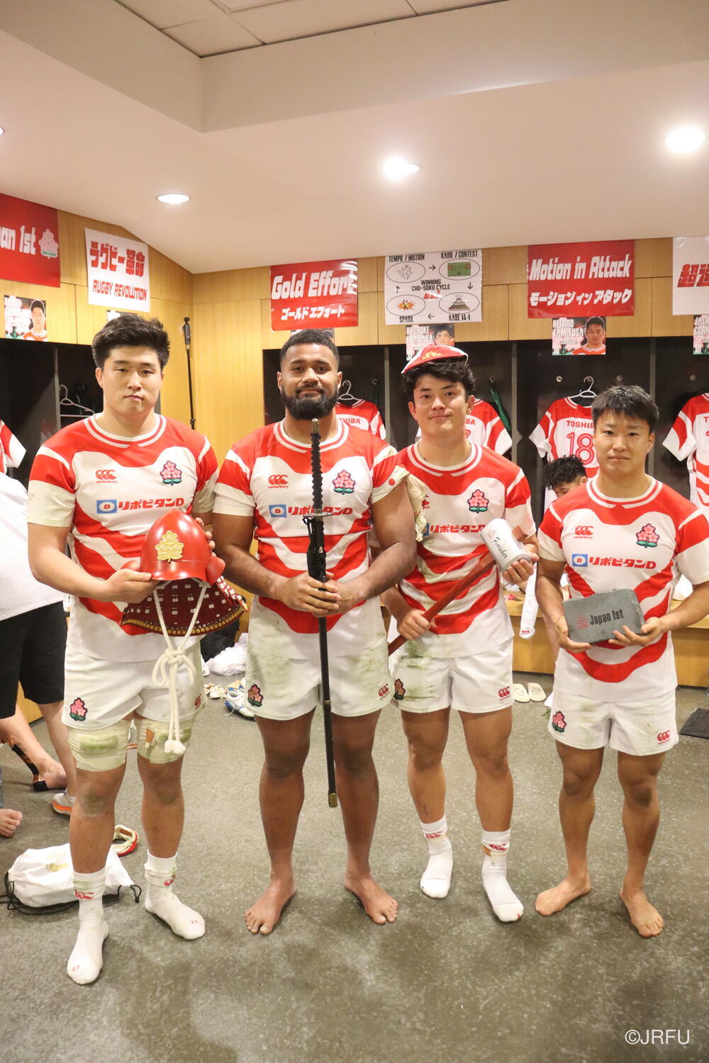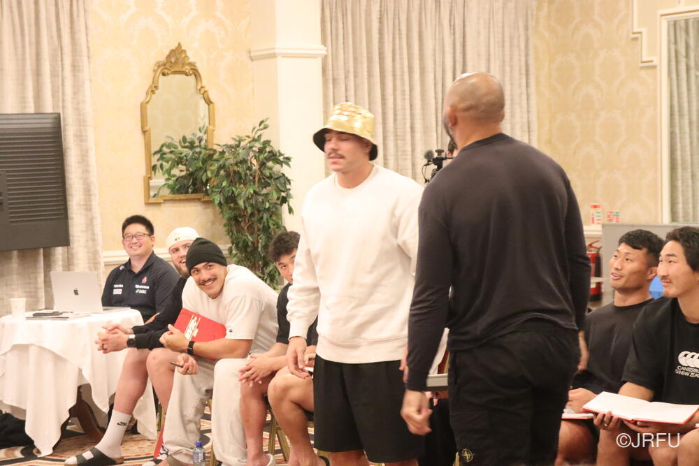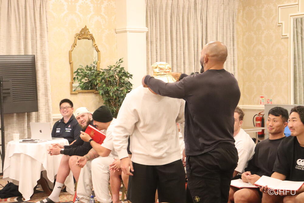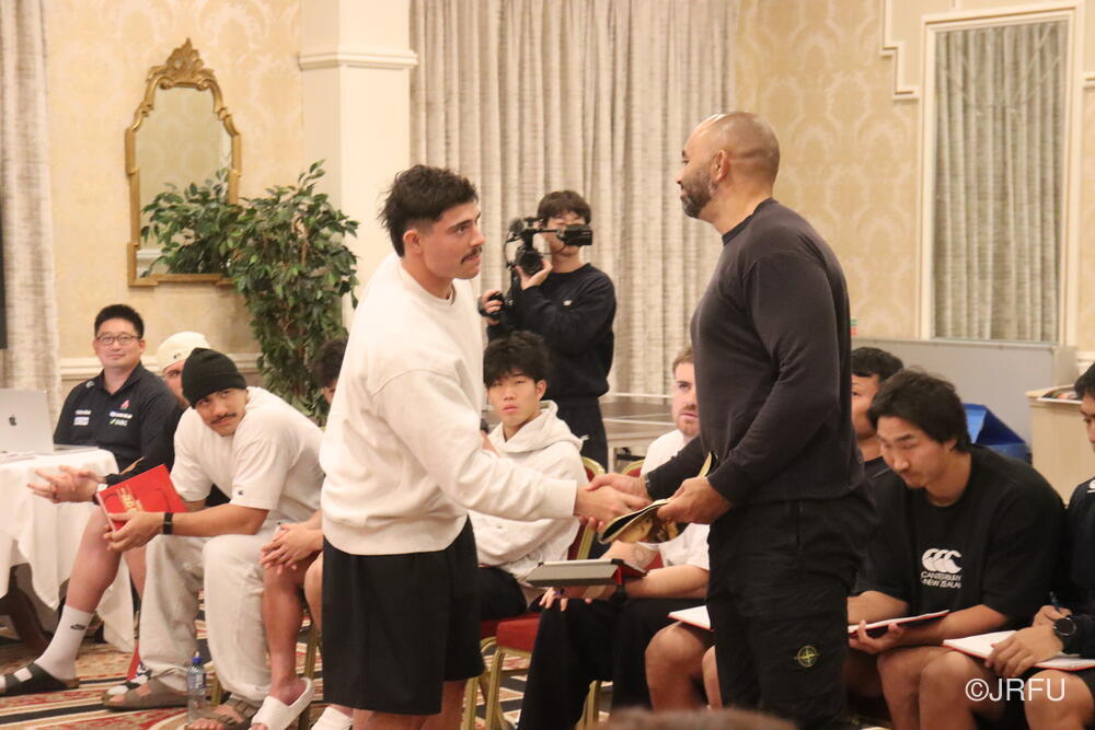 こちらは、先週のオーストラリア戦以降に始まったもので、「超速ラグビー」を体現すべくハードな努力をしている選手達の努力をチーム全体で評価していこう、そしてチームの新しい伝統を作っていこう、という思いからスタートしたものです。(初回の表彰式の様子は10月26日のレポートでご覧いただけます。)
