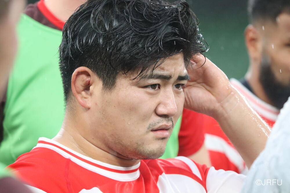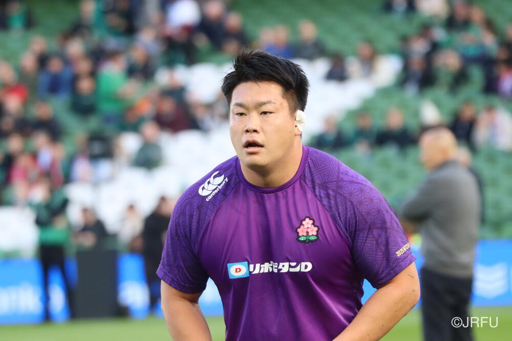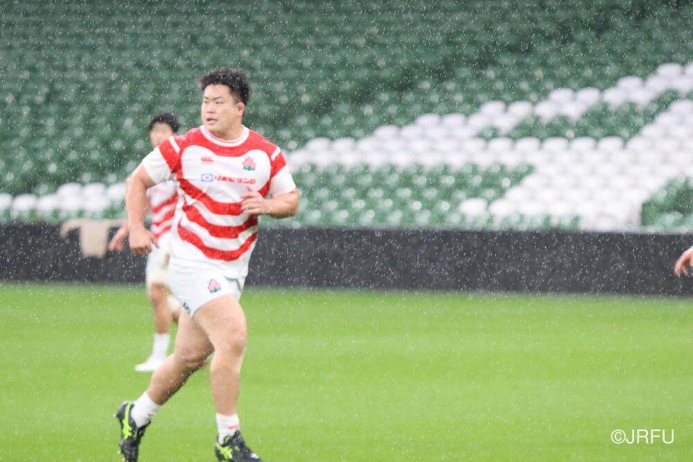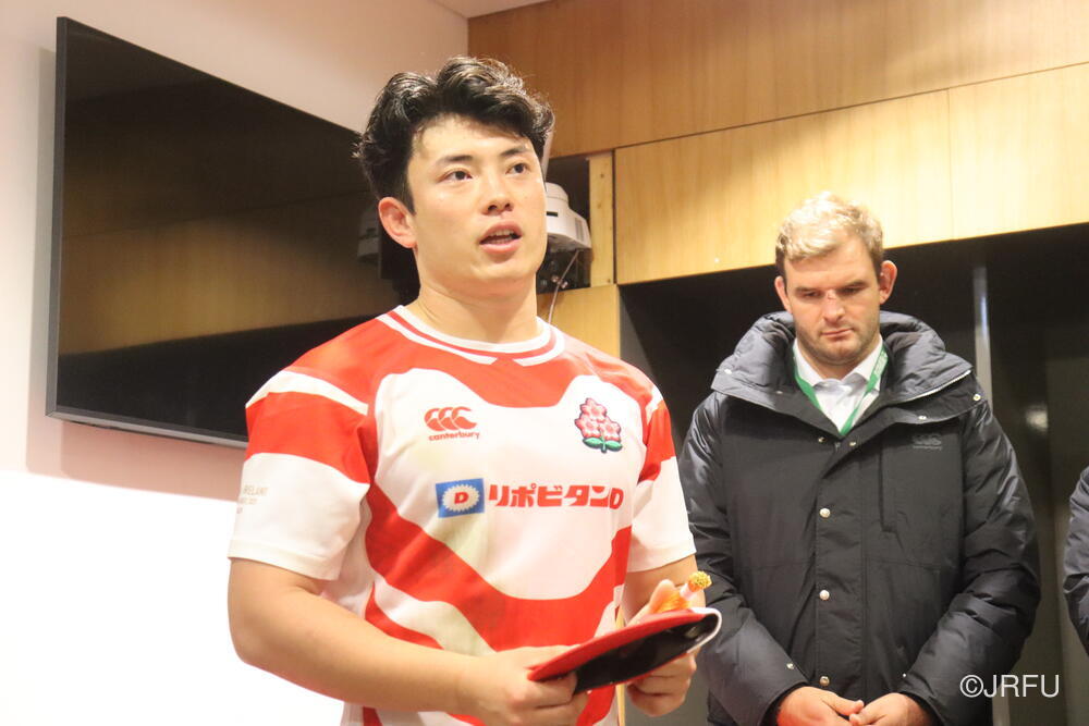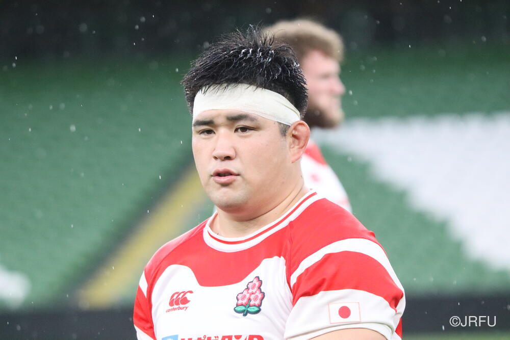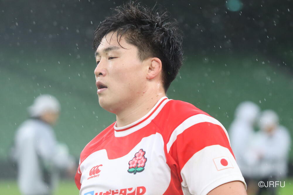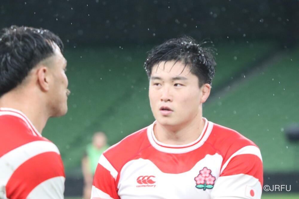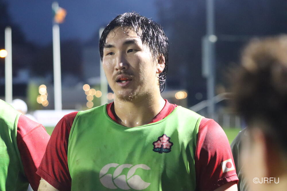 「南アフリカ戦で出たディフェンスの課題に1週間取り組んできて、練習中からいいイメージはついていました。(トライシーンについて)モールはFWみんなのトライです。僕自身は特にないですけど、先週南アフリカ相手に何本も(モールから)とられた中で今日アイルランド相手にとれたのは自信になりますし、周りのみんなに感謝したいと思います」
