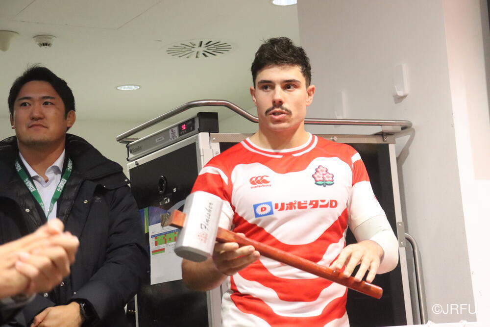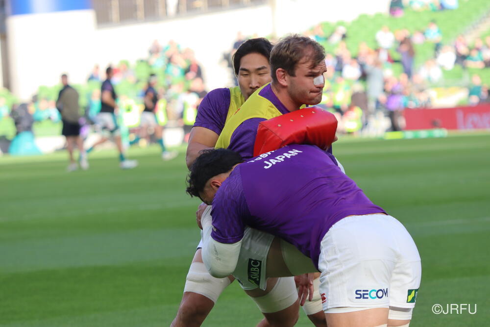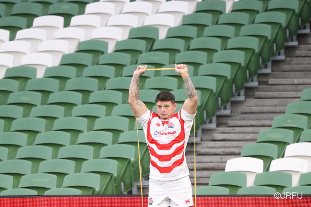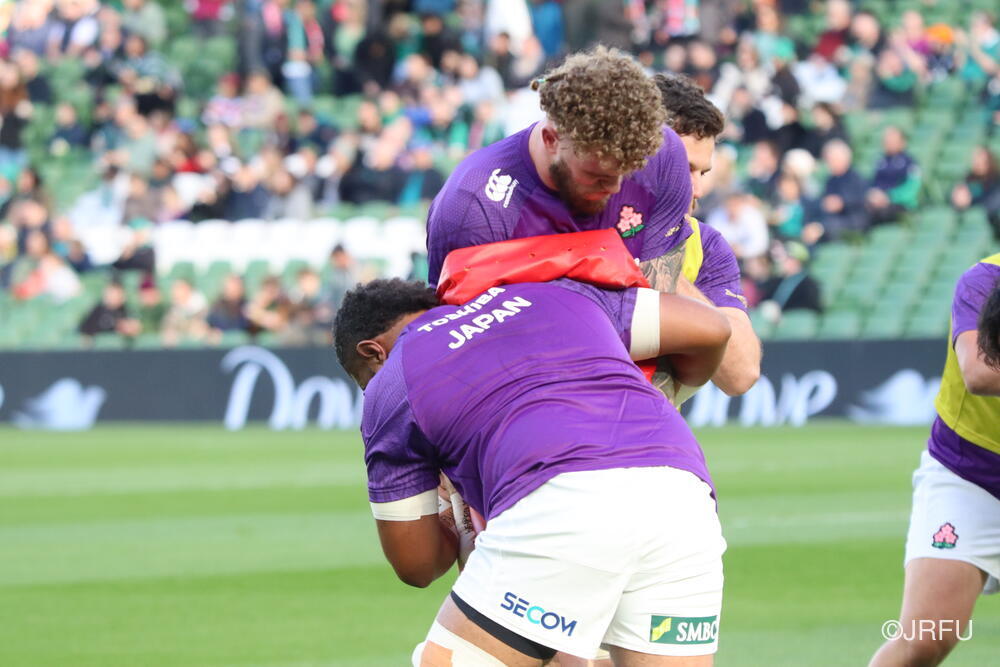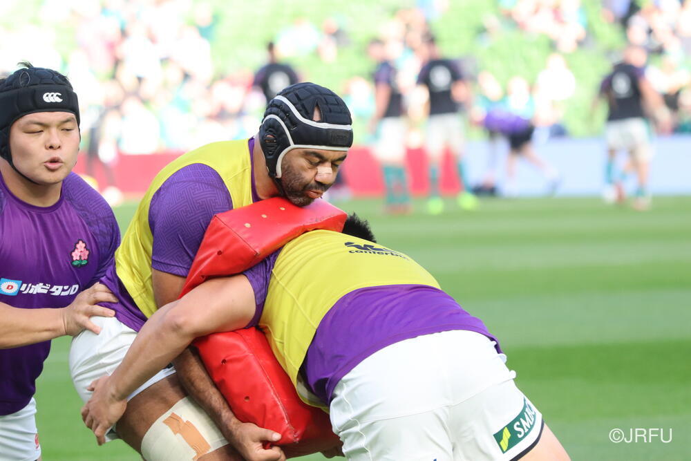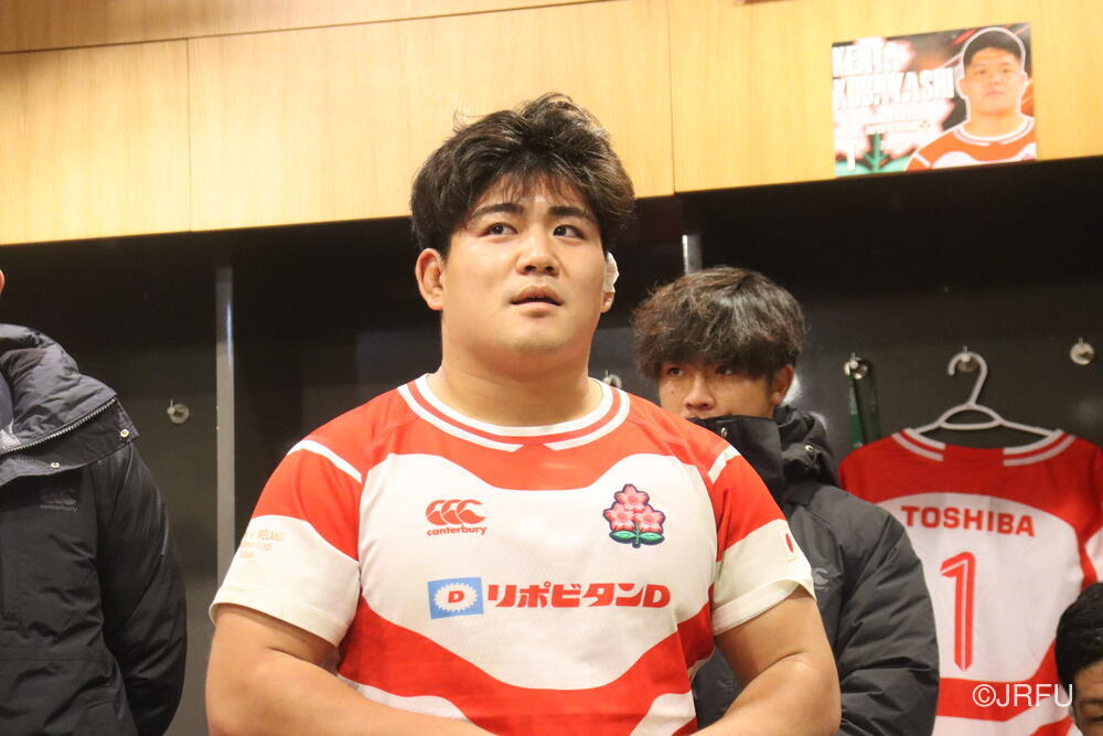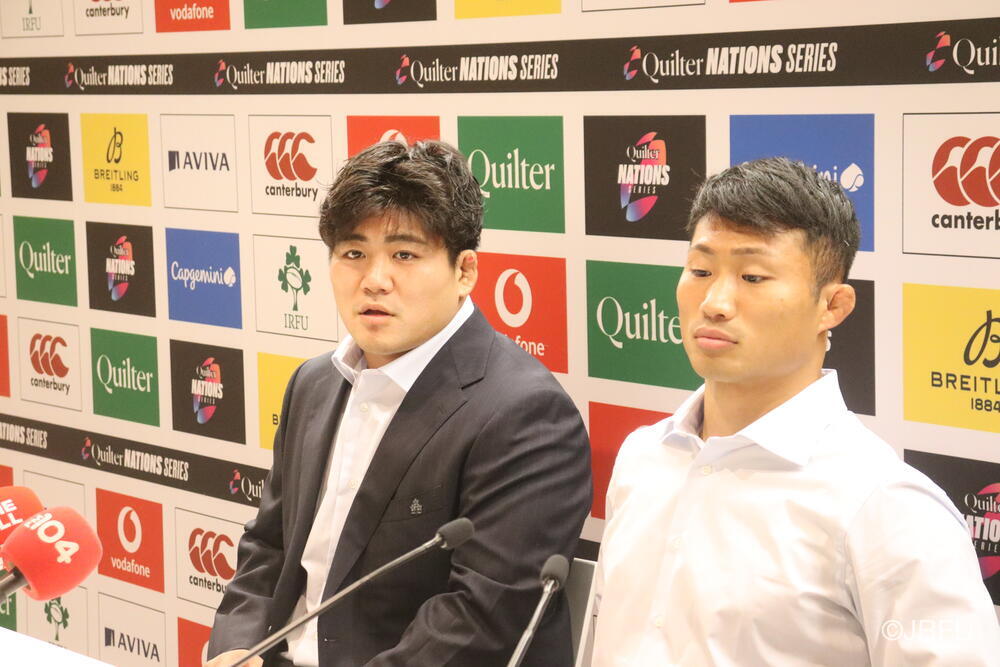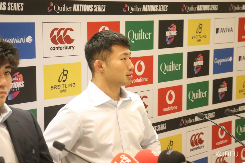 「南アフリカ戦で出たディフェンスの課題に1週間取り組んできて、練習中からいいイメージはついていました。(トライシーンについて)モールはFWみんなのトライです。僕自身は特にないですけど、先週南アフリカ相手に何本も(モールから)とられた中で今日アイルランド相手にとれたのは自信になりますし、周りのみんなに感謝したいと思います」