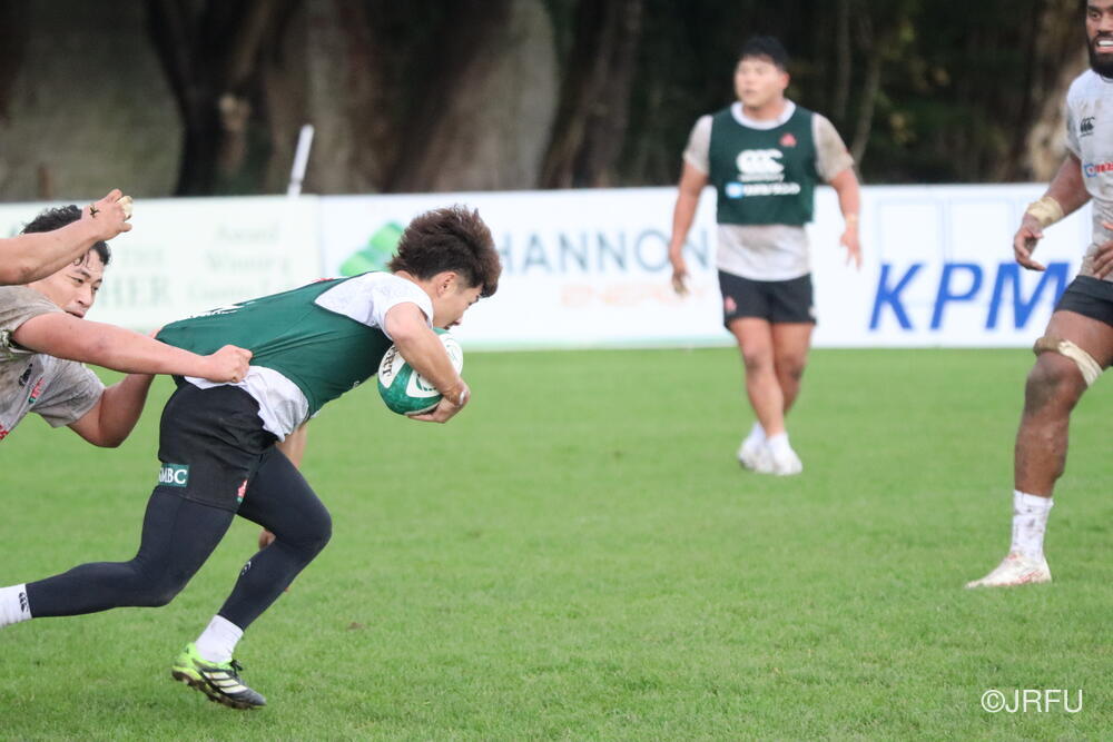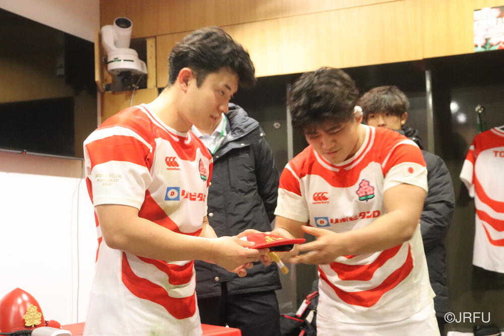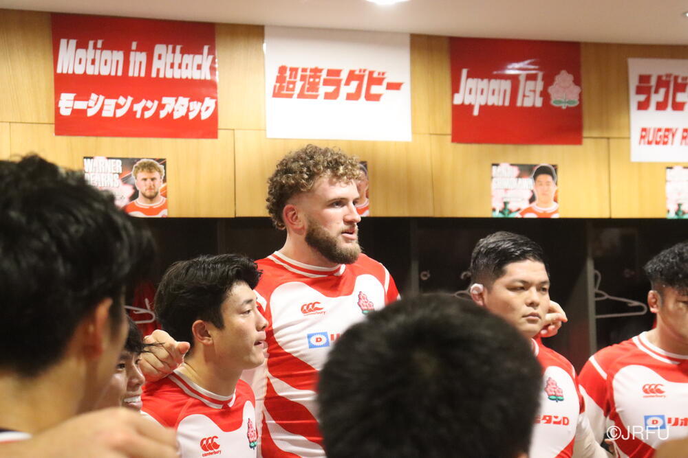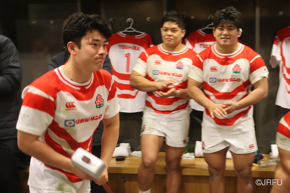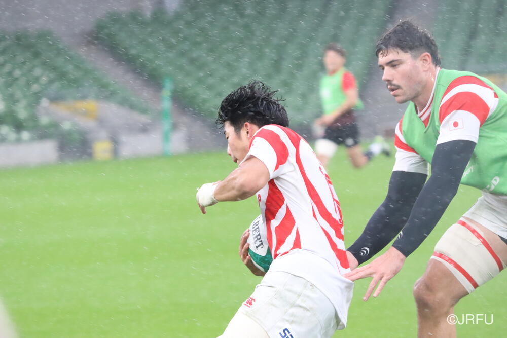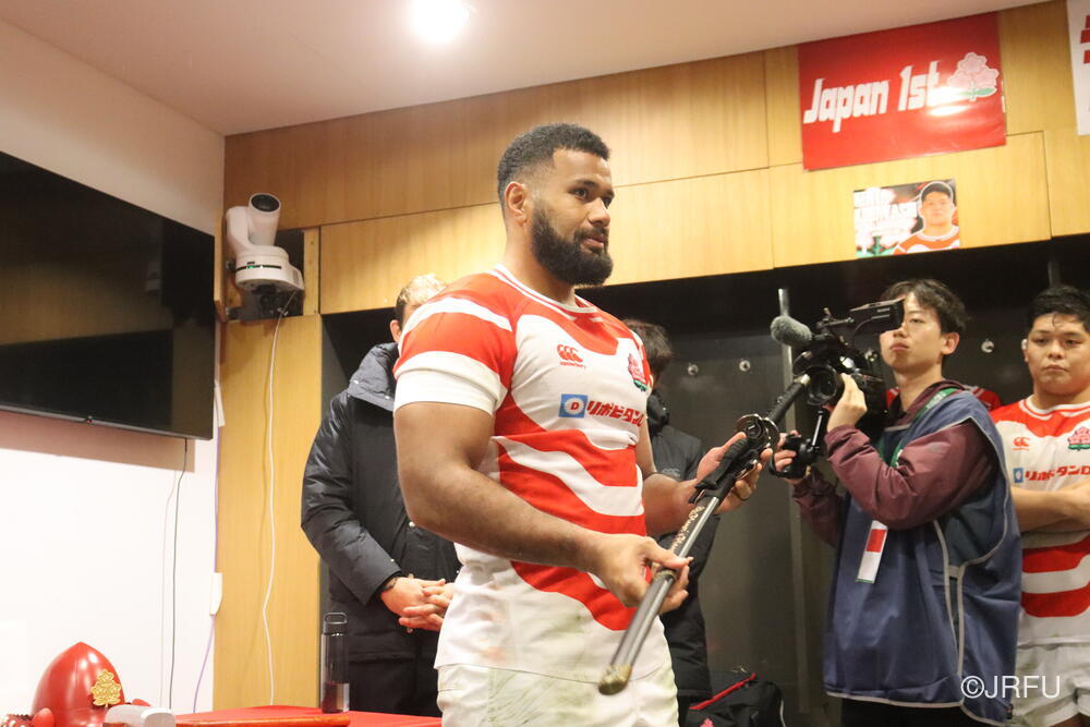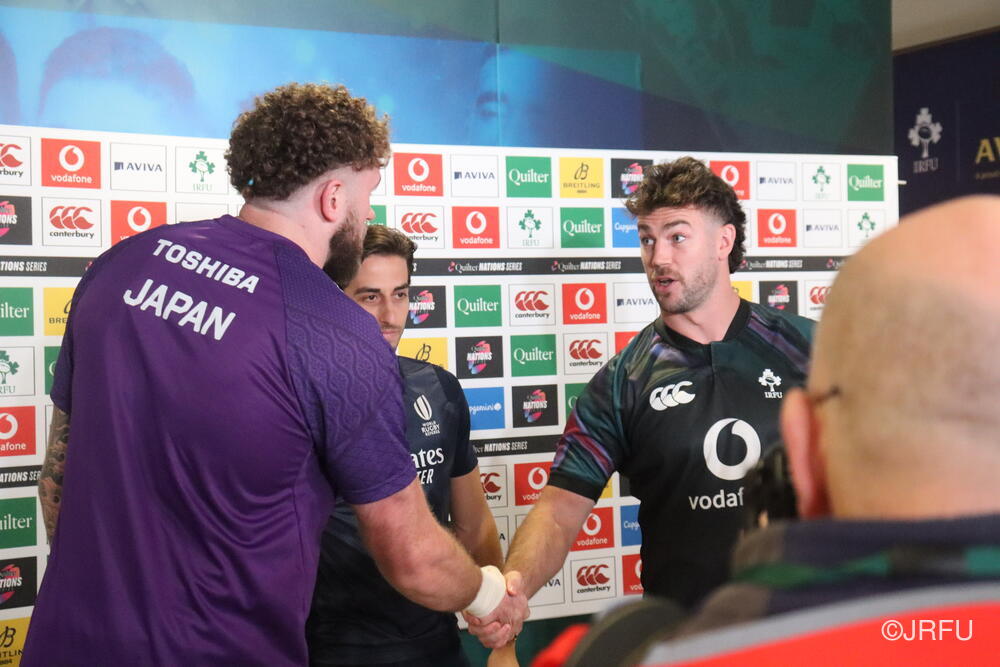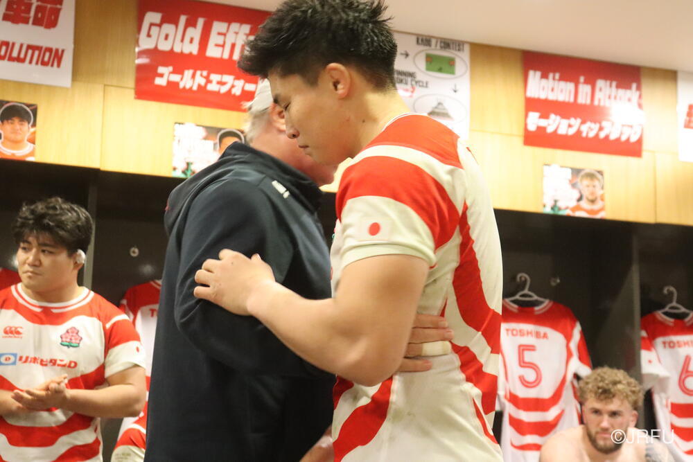 「南アフリカ戦で出たディフェンスの課題に1週間取り組んできて、練習中からいいイメージはついていました。(トライシーンについて)モールはFWみんなのトライです。僕自身は特にないですけど、先週南アフリカ相手に何本も(モールから)とられた中で今日アイルランド相手にとれたのは自信になりますし、周りのみんなに感謝したいと思います」