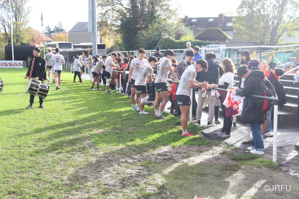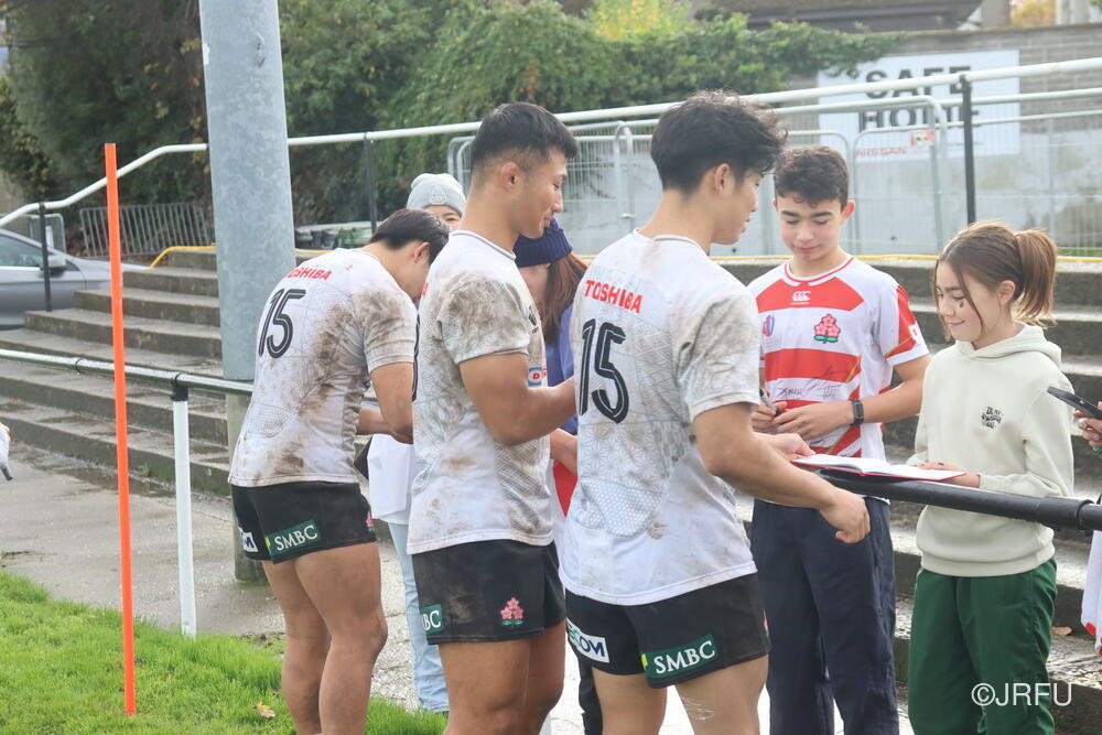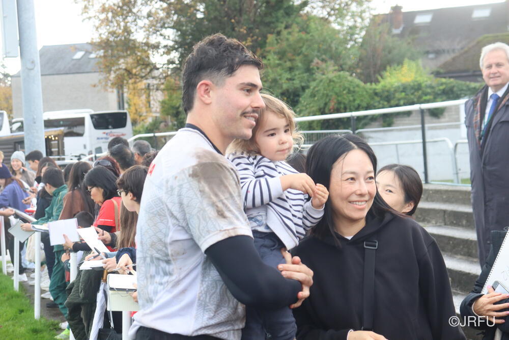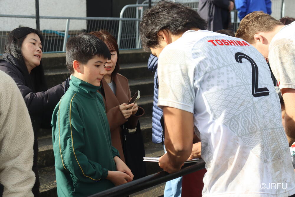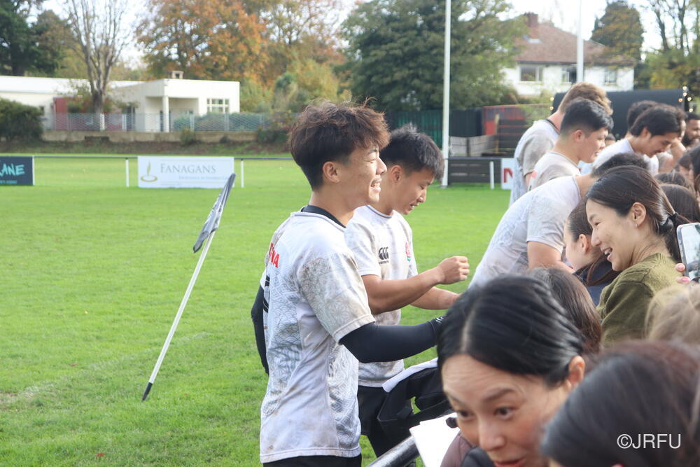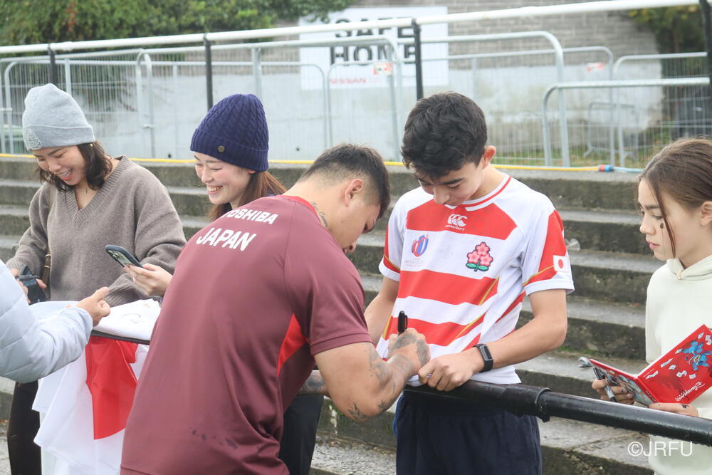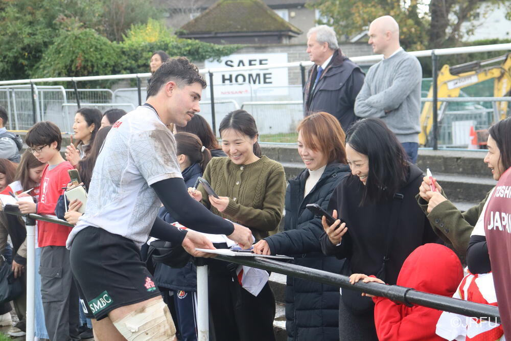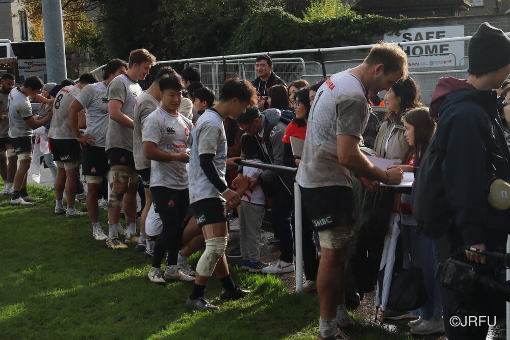 一方、一昨日の練習後には、ダブリン在住の日本人コミュニティの皆さんが応援に来てくれました。以下、練習後のファンサービスの様子です。
