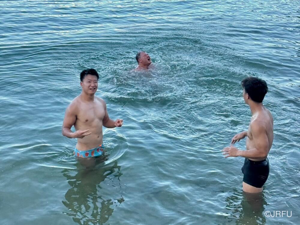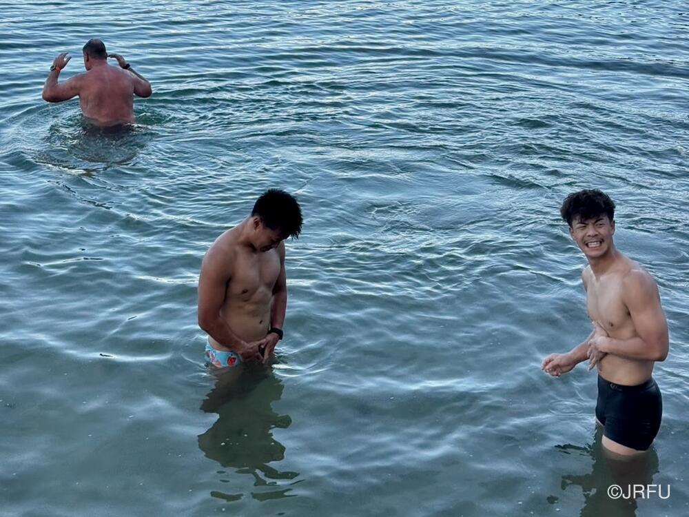 フォワードも同じように海辺でのリカバリーを行いました。こちらは記念写真です。