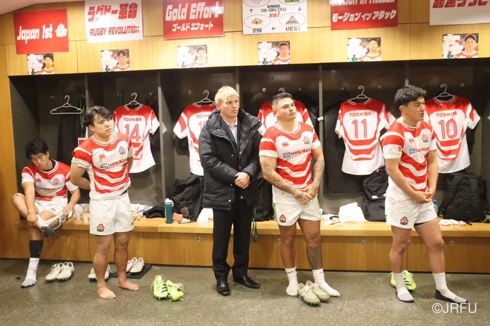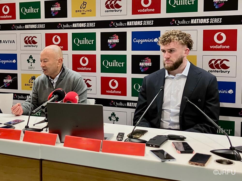 エディー・ジョーンズHC「アイルランドにシンビンが出ている中、優位性を生かせずに失速してしまいました。最後の30分のところでもいい状態でボールを持っているにも関わらず、相手に(ボールを)渡してしまい、トライチャンスも作りましたが、モノにできず、冷静さに欠けていた部分もあったと思います。もっと粘り強く戦って、接戦に持ち込む戦いができればよかったのですが、(今後に向けては)細かいところやシンプルなところを含めて、しっかりと修正していかなければいけないと思っています」