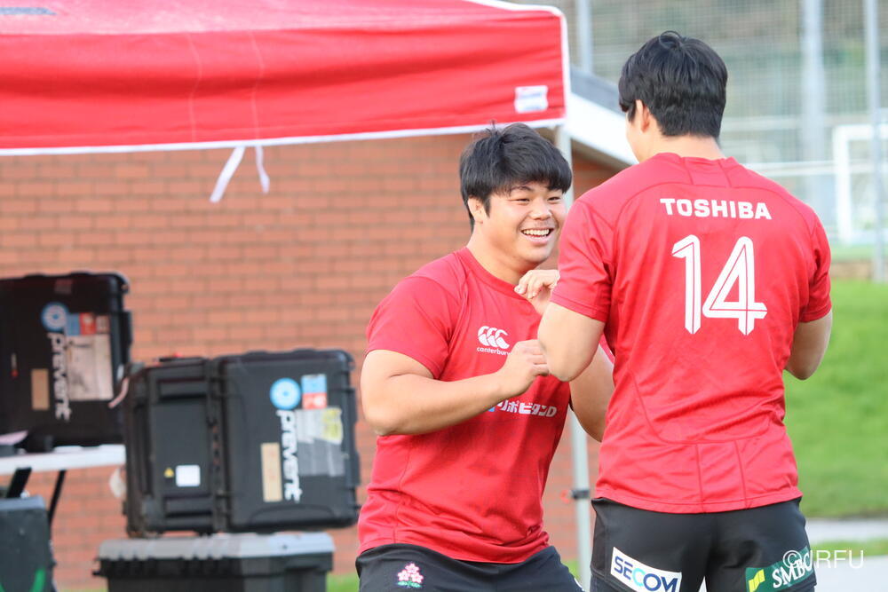 ちなみに藤原選手は、バックスですが、トレーニングメニューの関係で同じくスクラムハーフの土永選手と共にフォワードに混じっています。