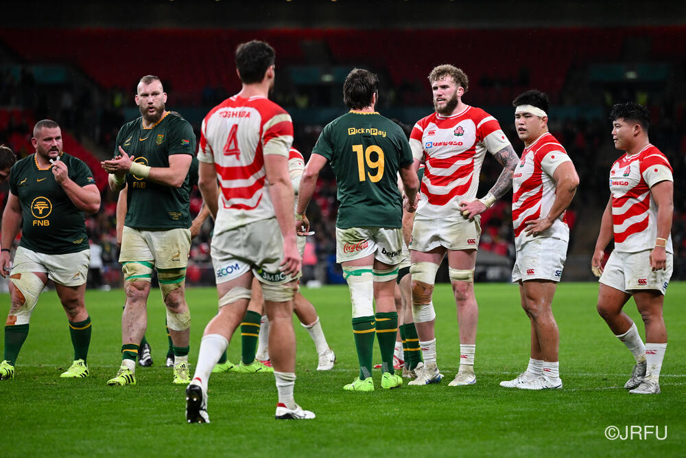 11月1日(土)に開催された「リポビタンDツアー2025」日本代表 vs 南アフリカ代表の試合結果をお知らせいたします。日本代表は世界ランキング現在1位の南アフリカ代表に7-61で敗れ、4度目の対戦にて2015年ブライトンでの勝利に続く2度目の勝利はなりませんでした。■試合結果日程:2025年11月1日(日)現地16:10キックオフ/日本時間11月2日(日)01:10キックオフ会場:Wembley Stadium / ロンドン(イングランド)日本代表 7-61 南アフリカ代表(前半0-26)試合記録はこちらフォトギャラリーはこちら