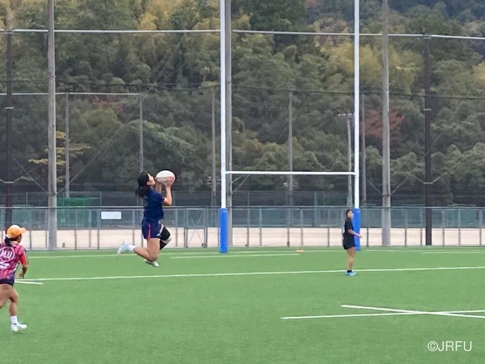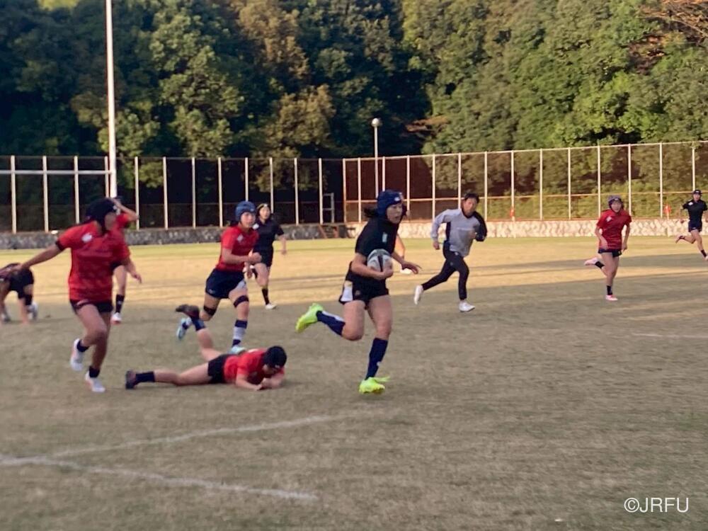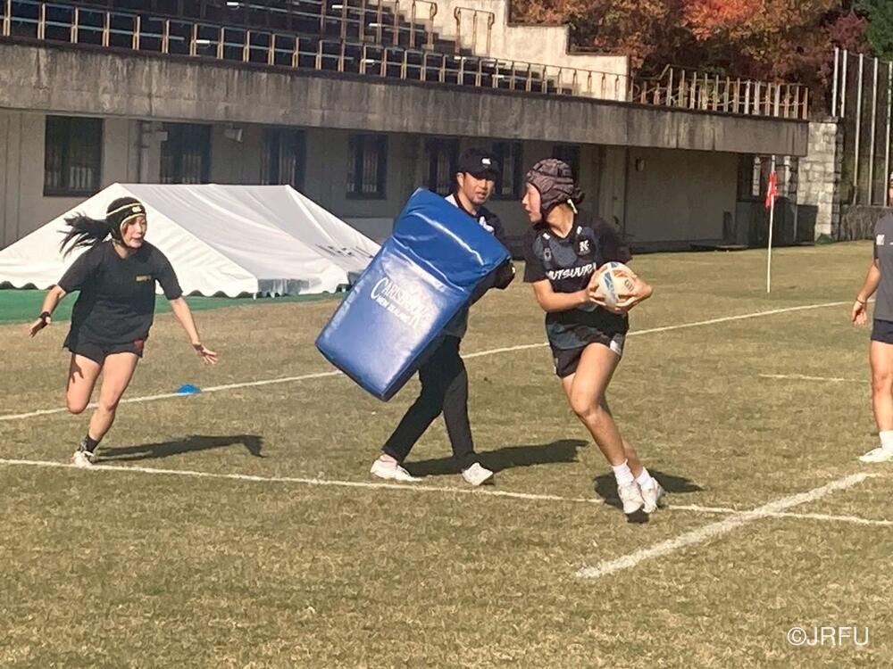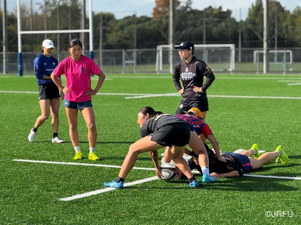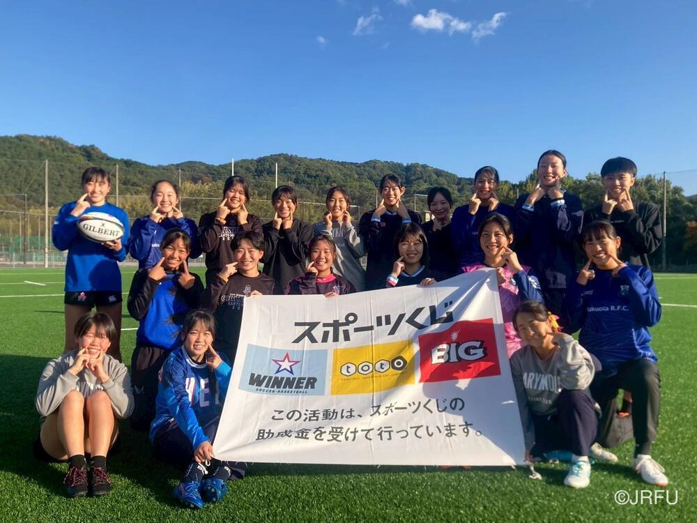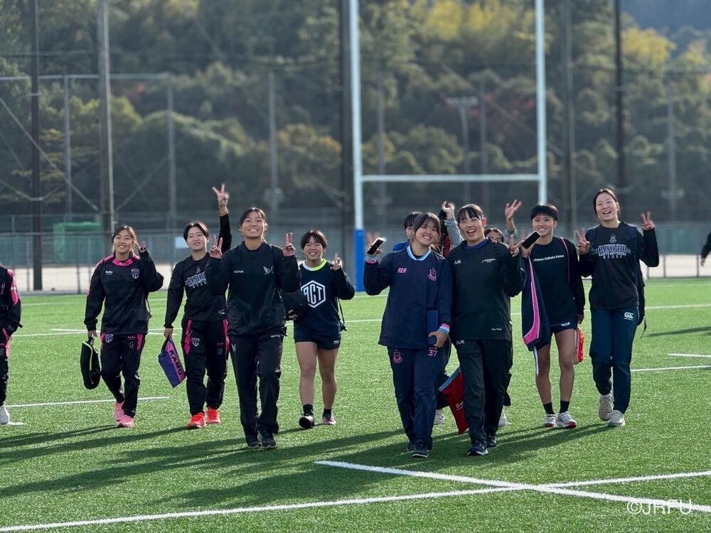 本日の試合には女子セブンズ日本代表チームの兼松由香ヘッドコーチが来てくださり、来月に向けて激励をいただきました。さらに、女子セブンズファミリーの証として、トップ代表選手も持つリボンを兼松ヘッドコーチから1人ひとりが受け取りました。