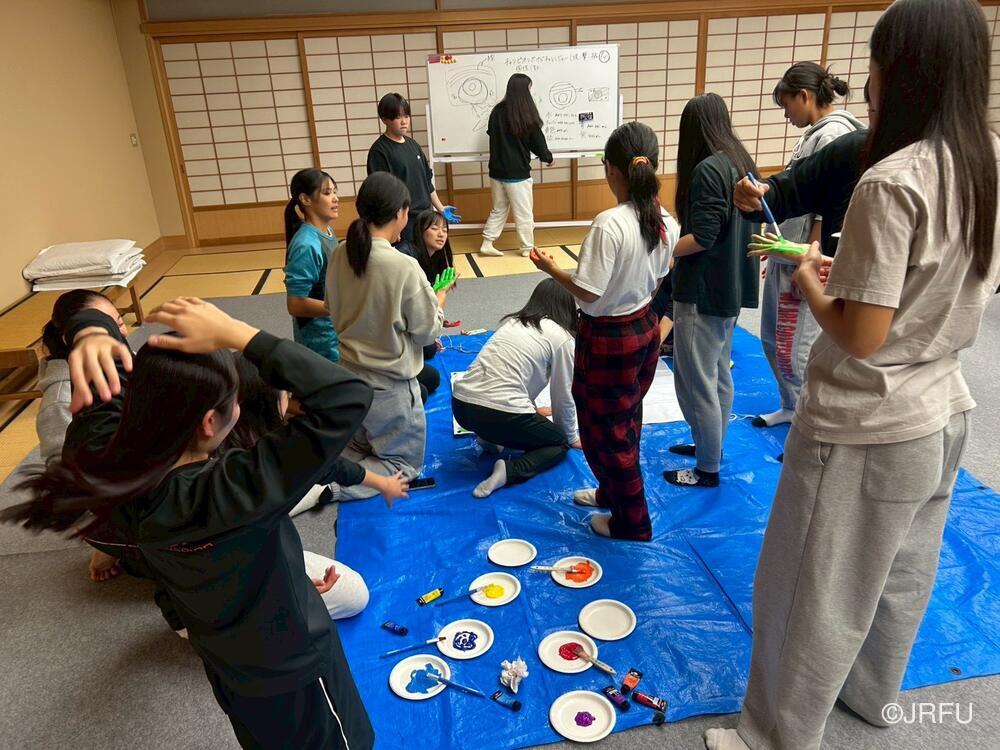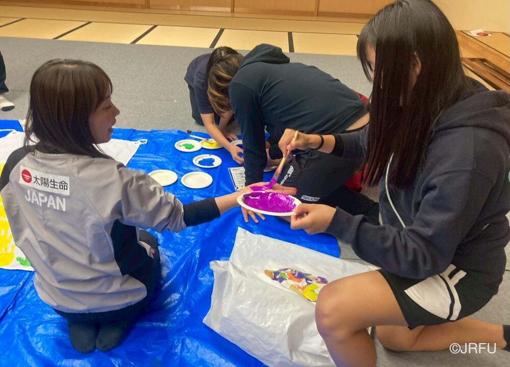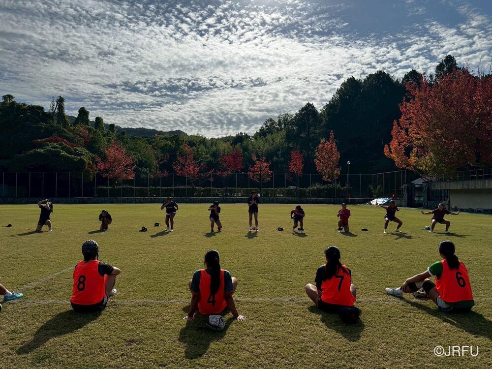 夕食後、夜のチームミーティングでは本日のおさらいと、U18女子SDSチームとして試合の組み立て方を確認しました。今回の合宿期間中に、12月のニュージーランド遠征(Global Youth Sevens出場)に向けて、アカデミーオリジナルの旗を選手達がデザインを考え、作成しています。一緒に作り、一緒に戦う ― そんな思いを込めた旗とともに、来月世界に挑みます。