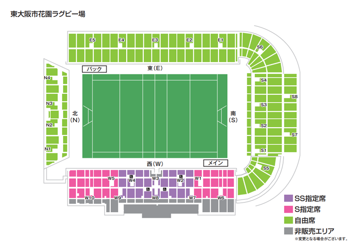 S指定席小中高 メイン(北・南) | ¥1,000 | ¥2,000 | |