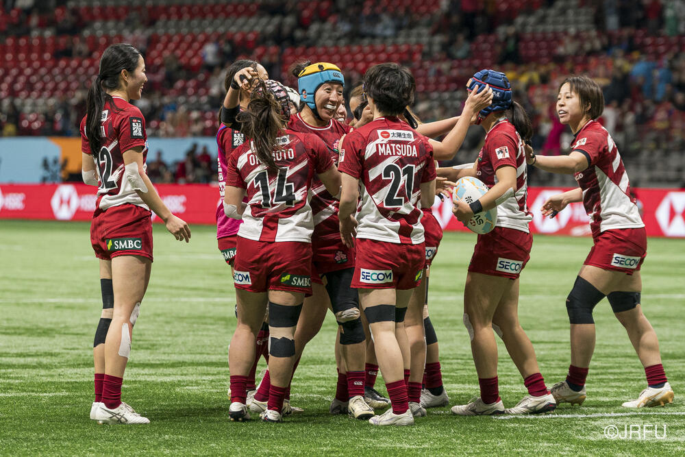 (ワールドシリーズで初の準決勝進出を決め、歓喜に沸くサクラセブンズ)