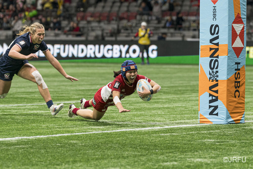 (HSBC SVNS 2025の「トライ・オブ・ザ・イヤー」に選ばれた谷山三菜子選手のトライ)