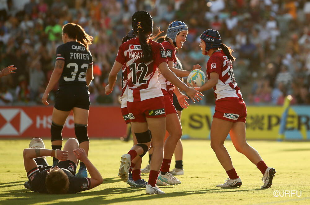 (パース大会の5位決定戦で女子アメリカ代表に勝利したサクラセブンズ)