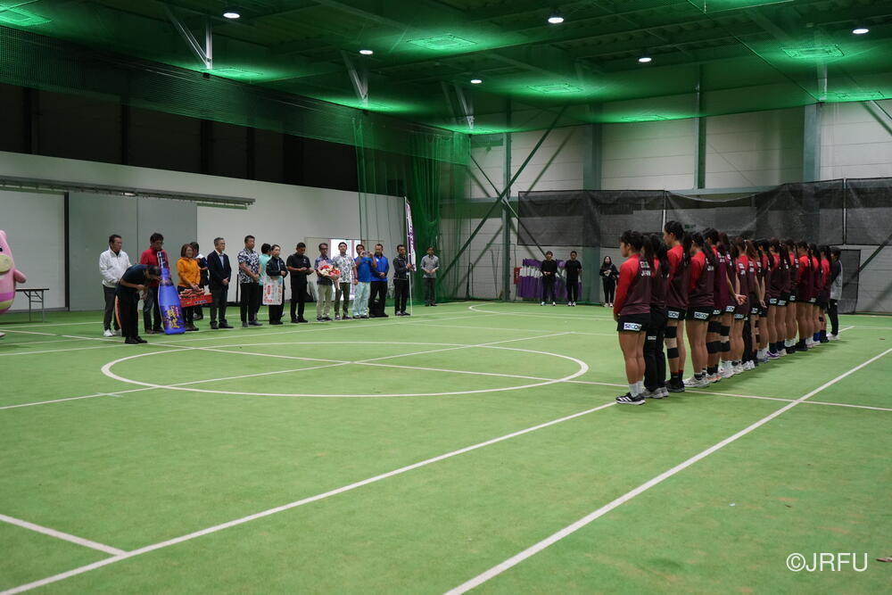 トレーニング前に室内練習場で歓迎セレモニーが行われました。読谷村の役場の方々をはじめ、メディアを含めた多くの方々にお集まりいただきました。