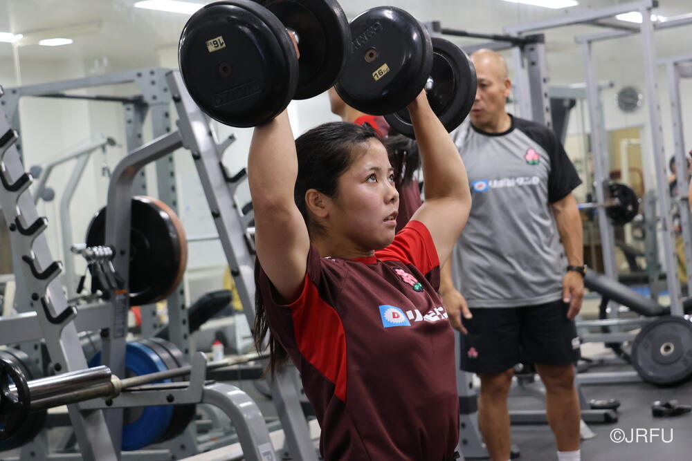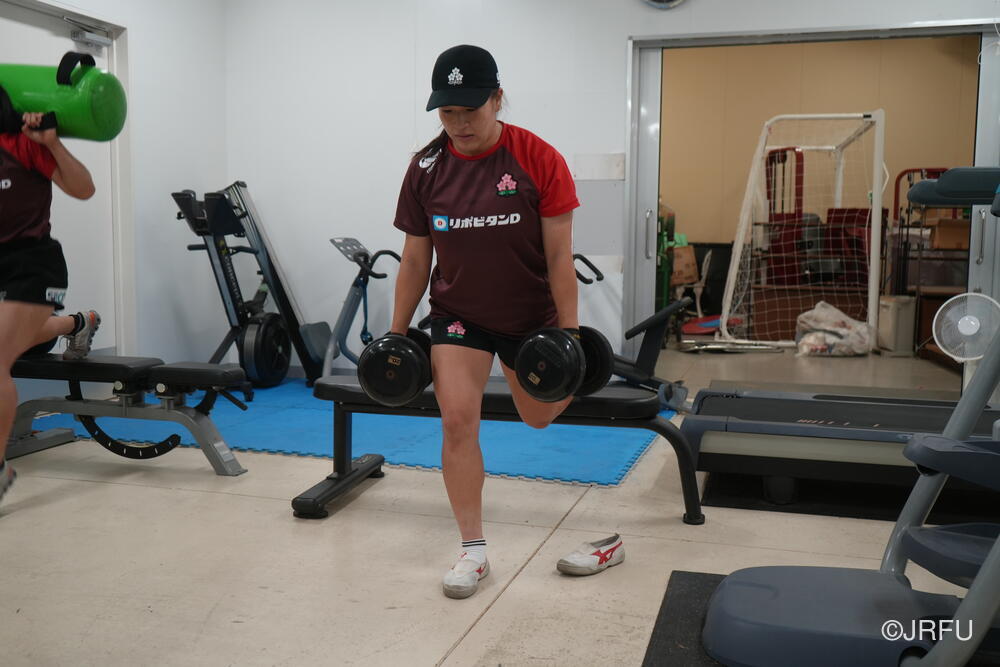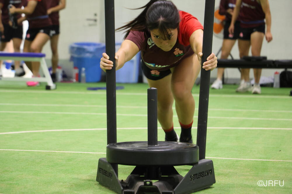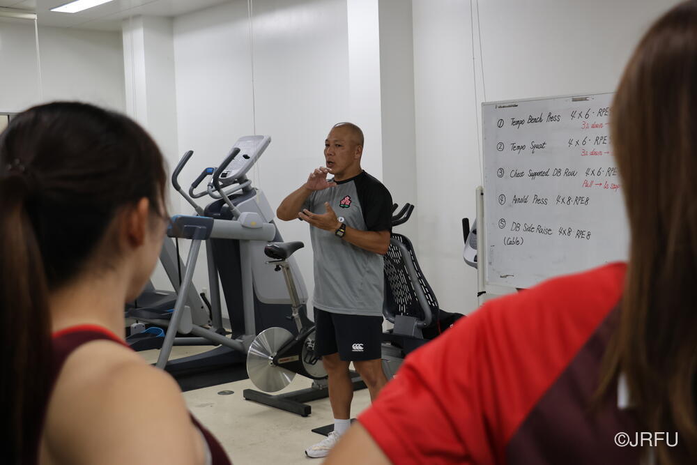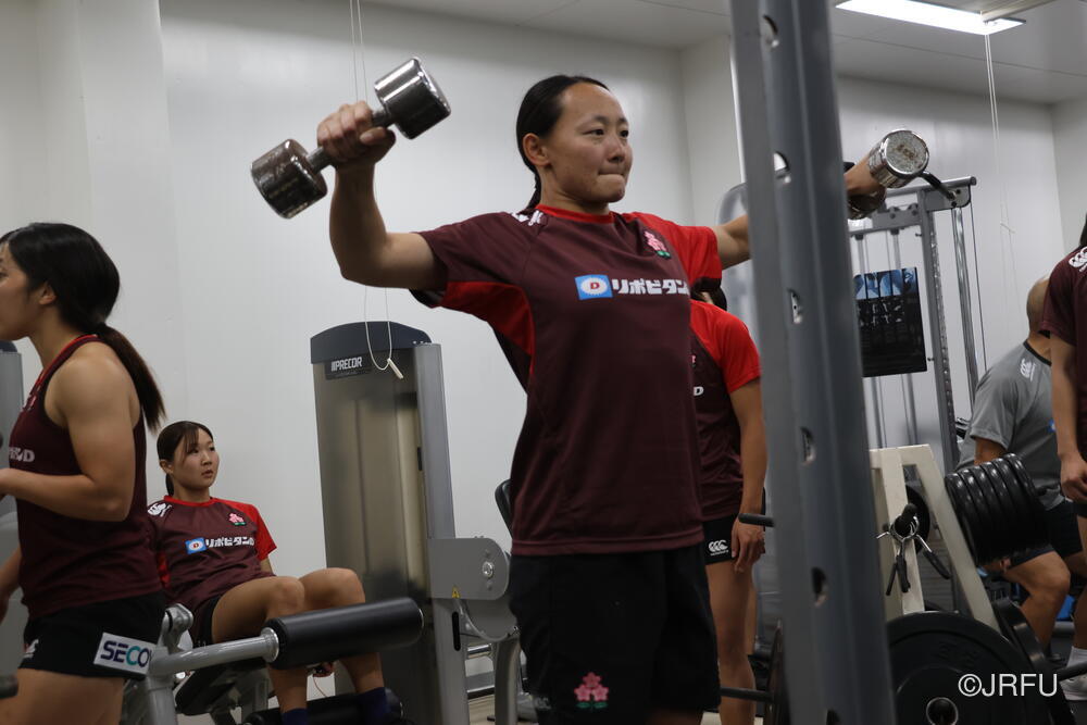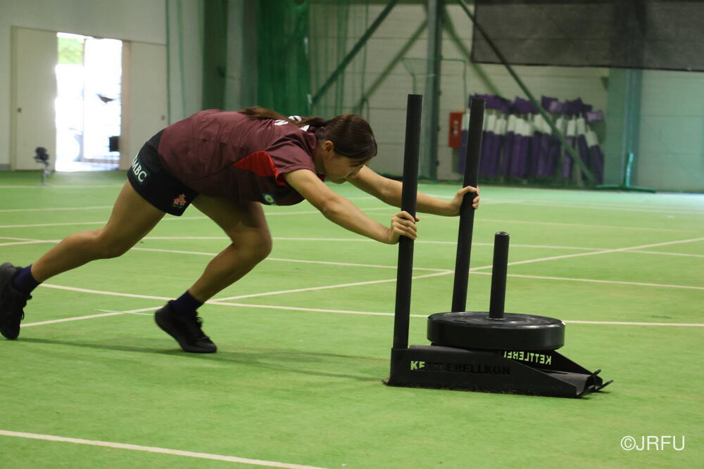 午後はジムセッションからスタートです。室内練習場も使いながら、ラグビーのプレーに繋がる動きに負荷をかけながら取り組みました。