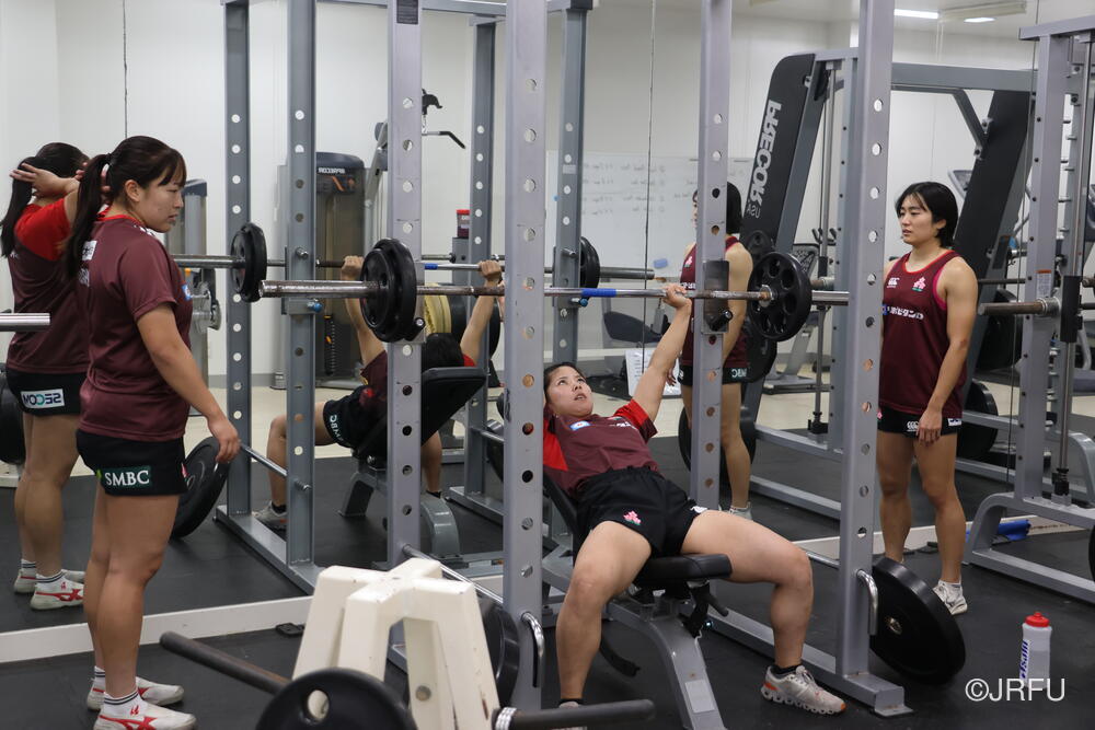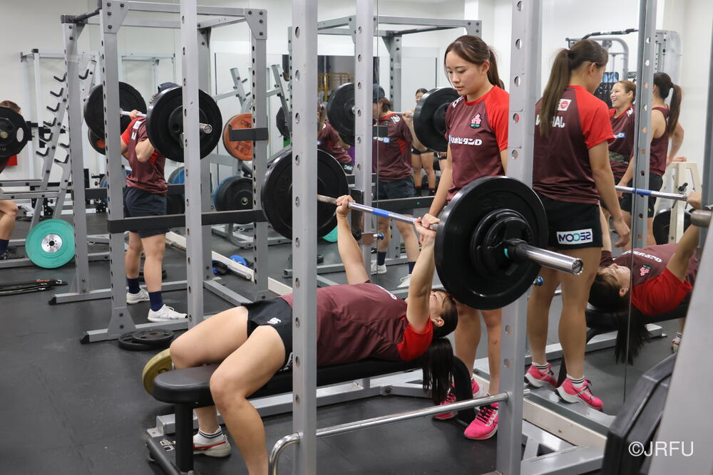 午後は合宿最後のジムセッションです。疲労が溜まっている中でも、最後まで真剣にトレーニングに励む様子がうかがえました。