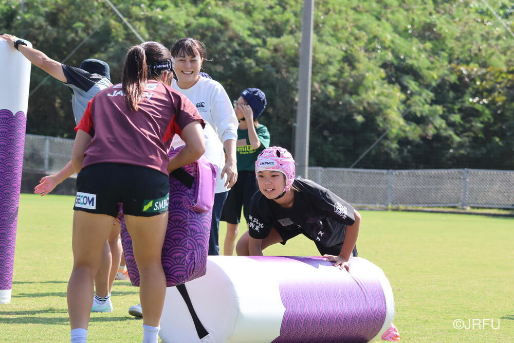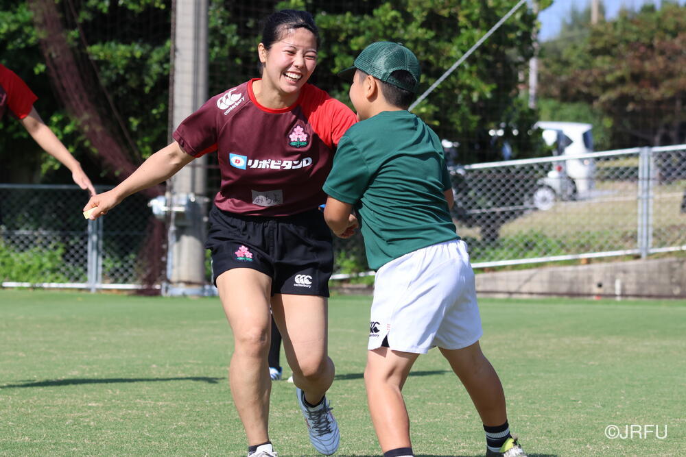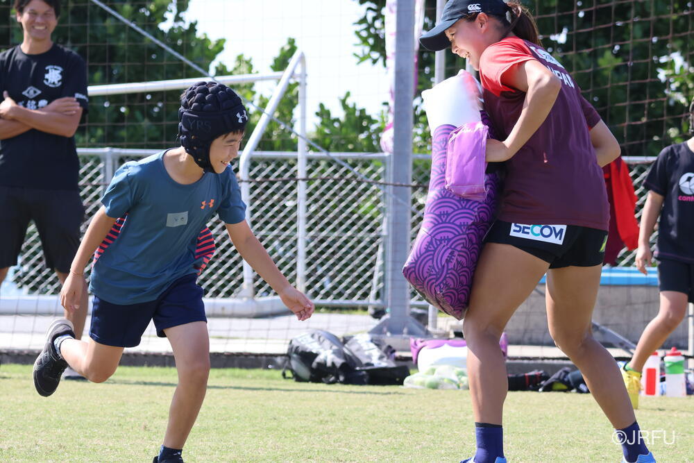 フィールドには読谷村のラグビースクールの子どもたちや琉球アイランドガールズの皆さんが集まり、SDSの練習を見学されていました。