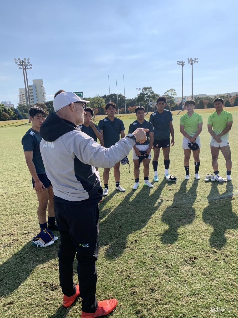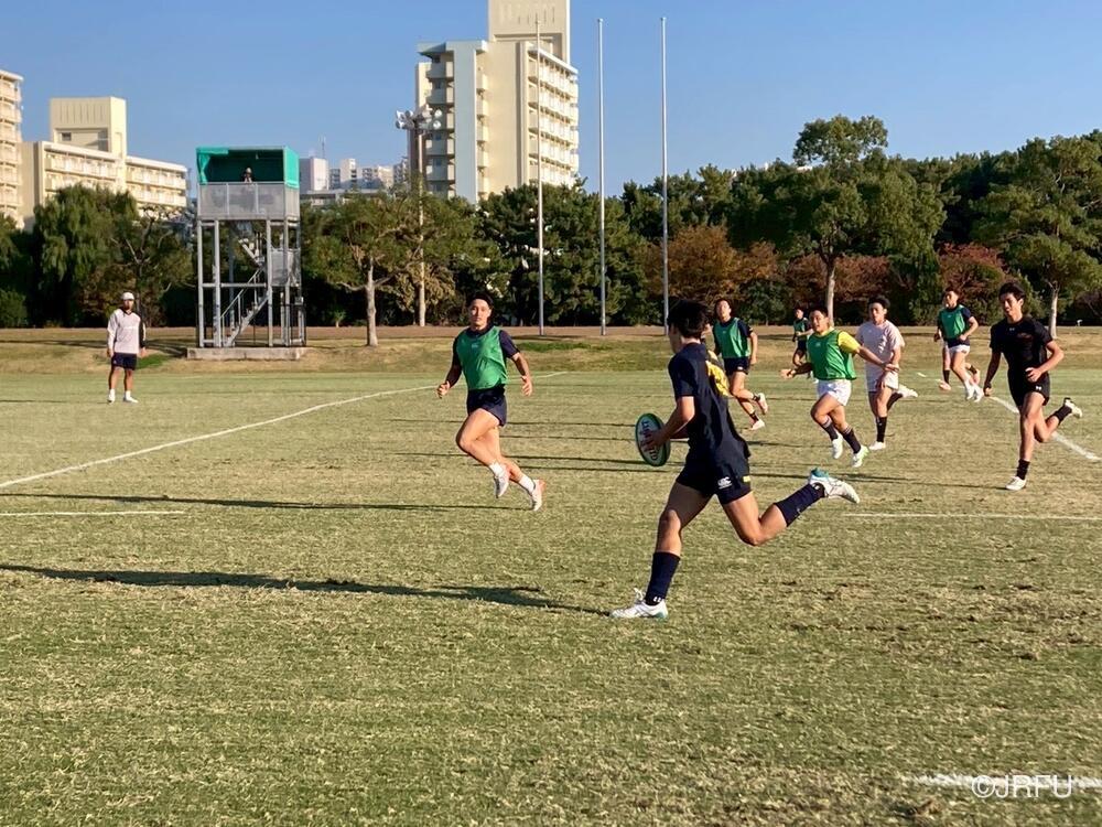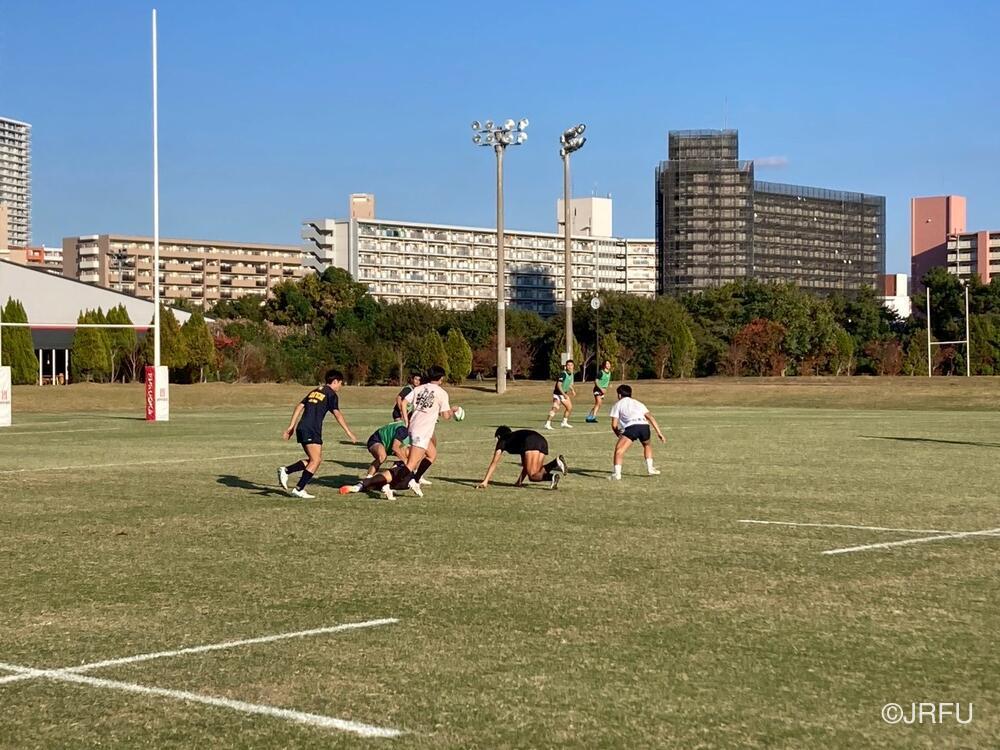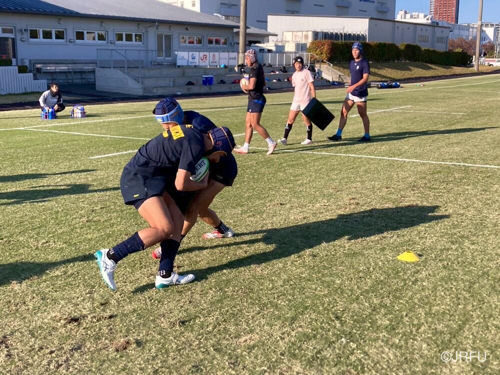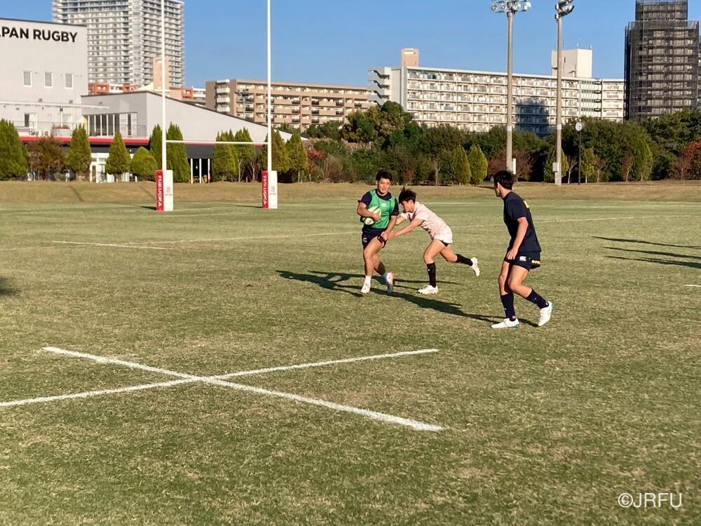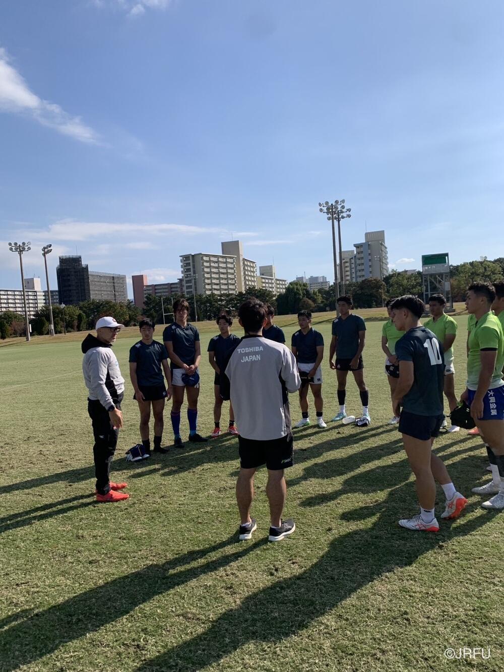 午後の練習では、コンタクトプレーにフォーカスしてブレイクダウン・タックルのセッションを行いました。コンタクト時の姿勢や頭の位置、目線を上げることなどコーチからだけでなく、選手間でも積極的に意見交換を行いました。