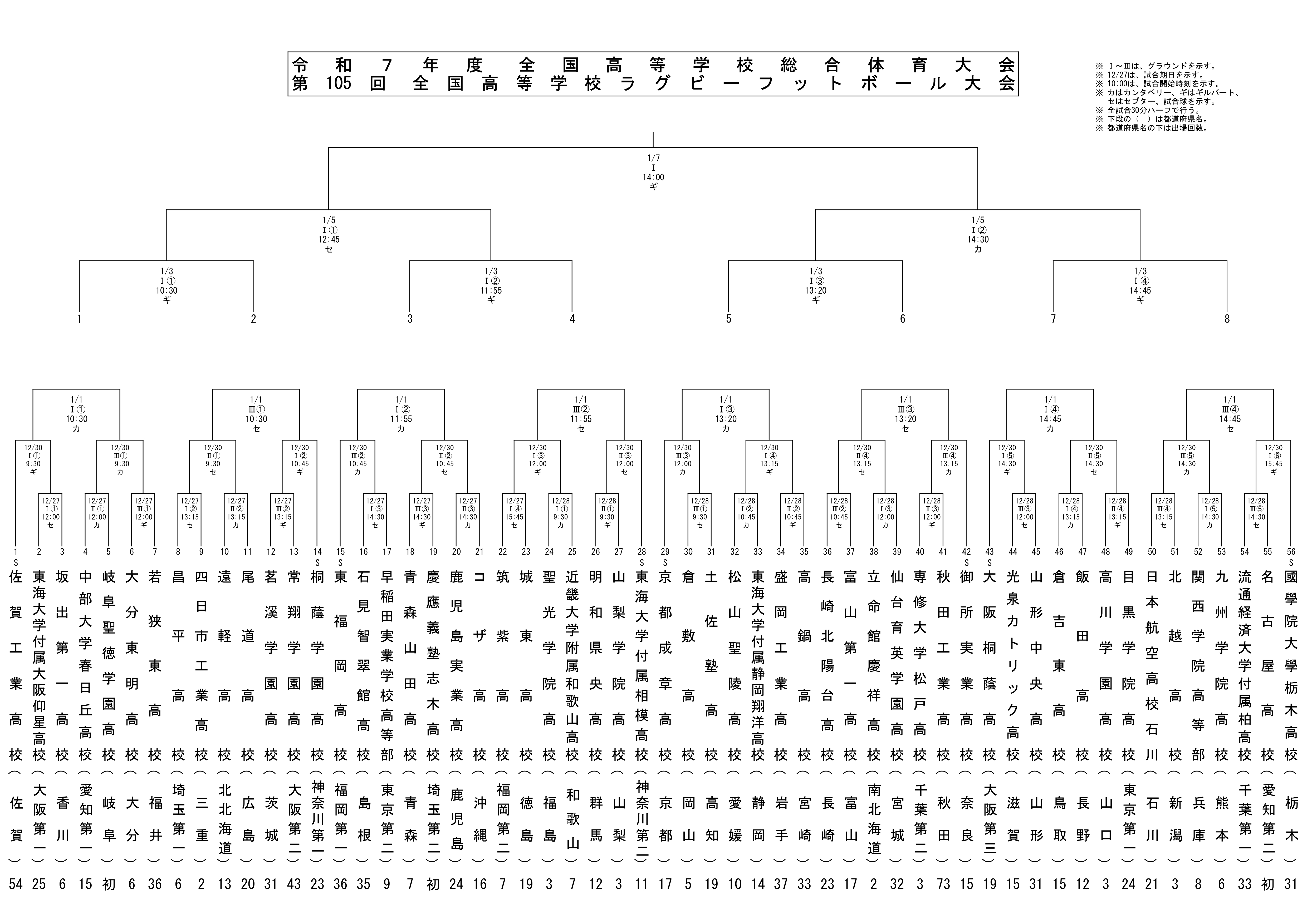 ■第105回全国高等学校ラグビーフットボール大会 出場校一覧(56校)