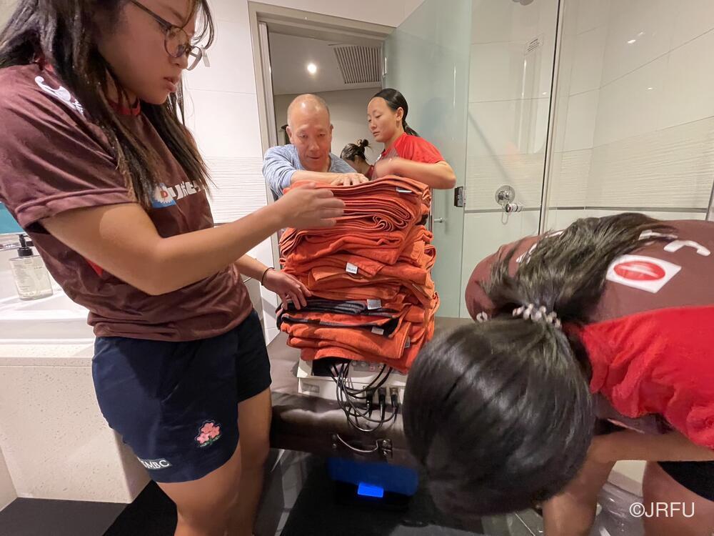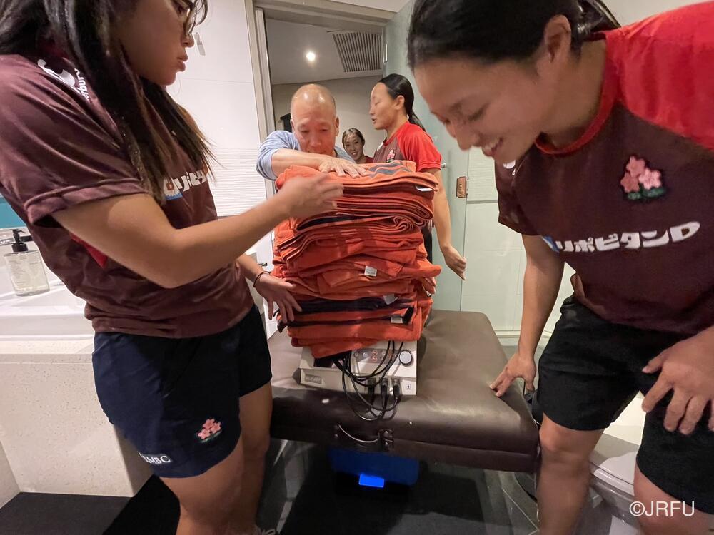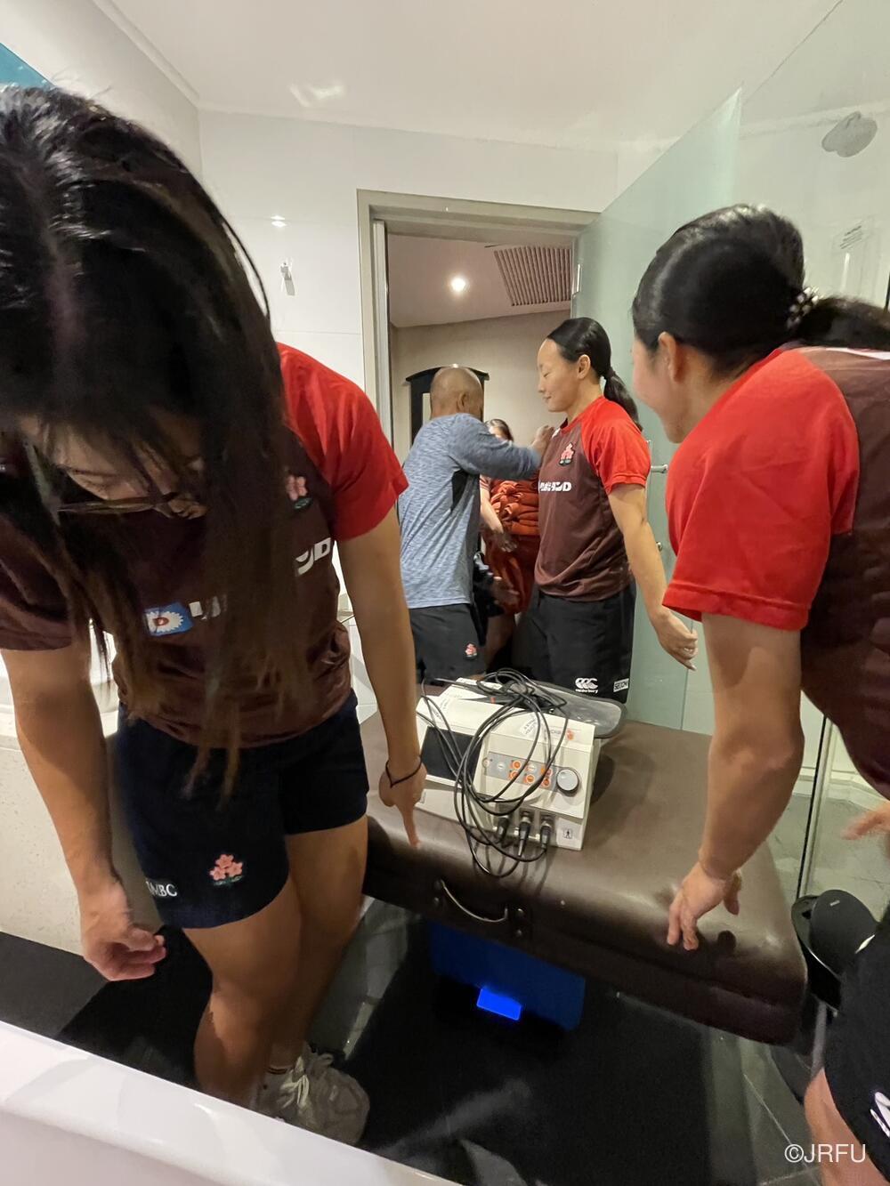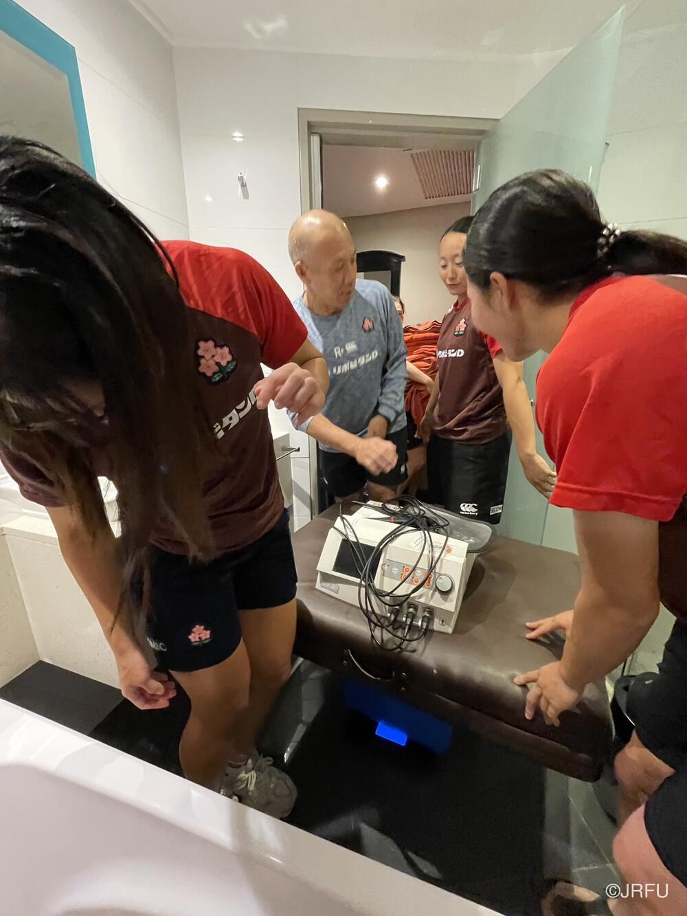 ホテルに到着後、午後から大会が用意してくださったマッサージを受けました。1人30分ずつプロのマッサージ師の方に、疲れた身体をほぐしていただき、選手たちはとてもリラックスした表情でした。