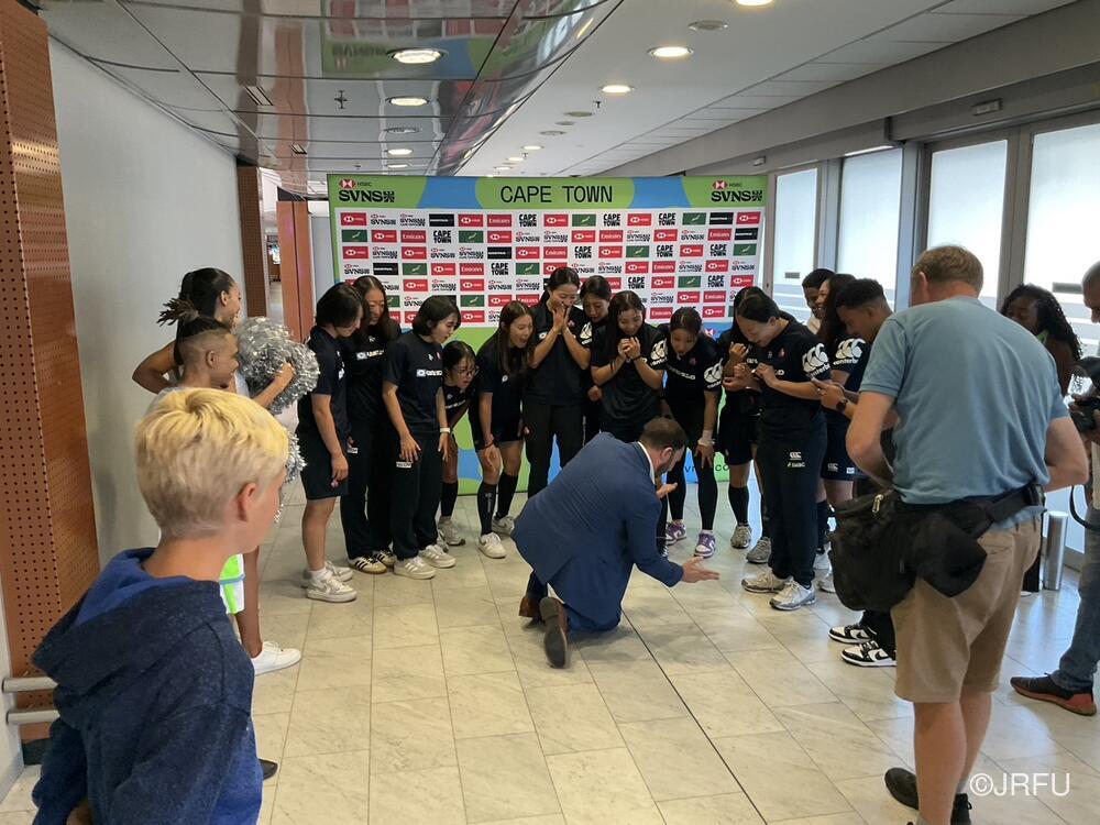 ドバイ大会の喜びの余韻に浸る間もなく、深夜にケープタウンを発ち、昼前にケープタウンに到着しました。空港では、昨年と同じように歓迎のダンスで迎えられ、手品も披露していただきました。眠そうな顔をしていた選手たちは驚いて目が真ん丸になっていました!